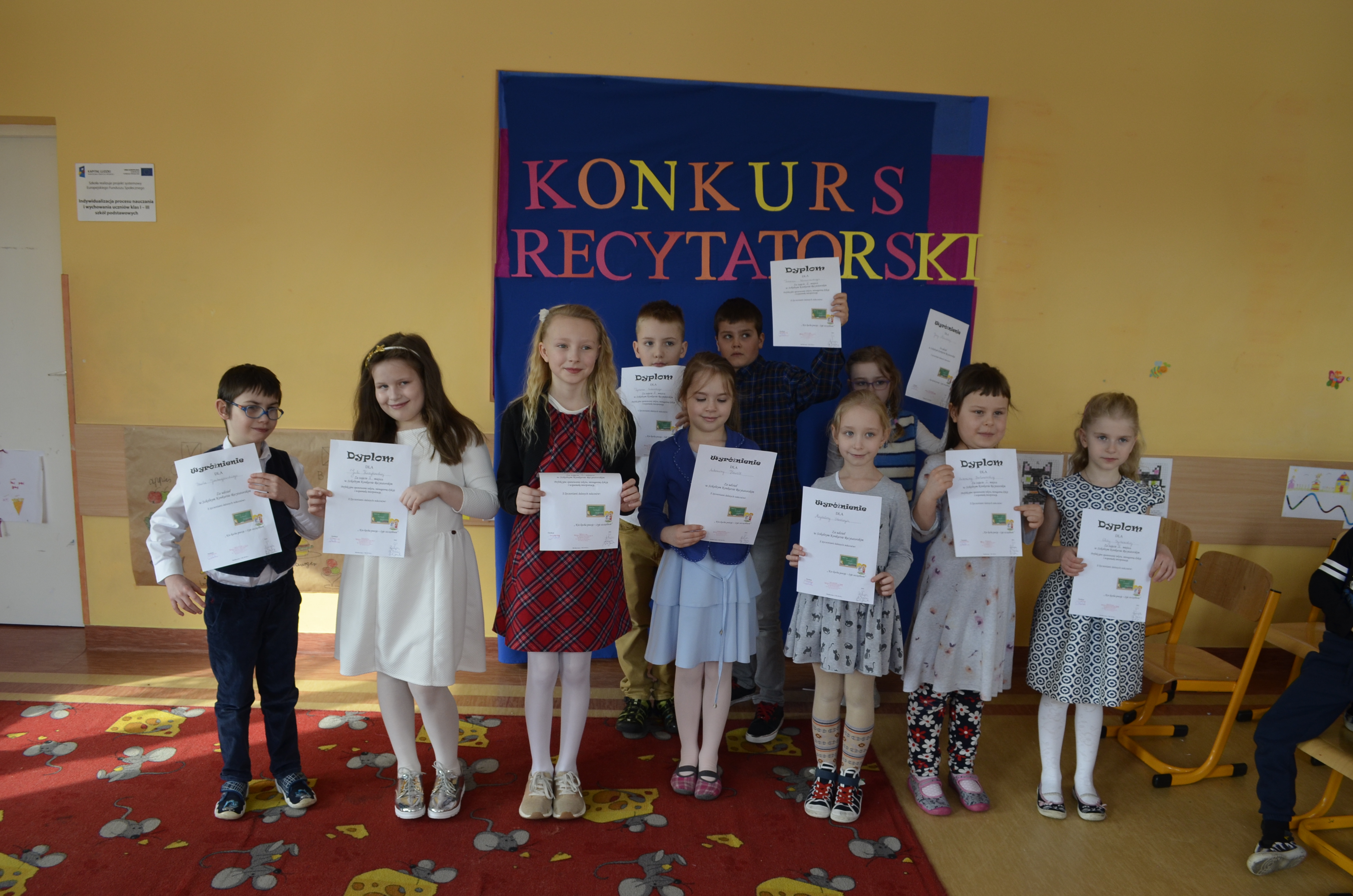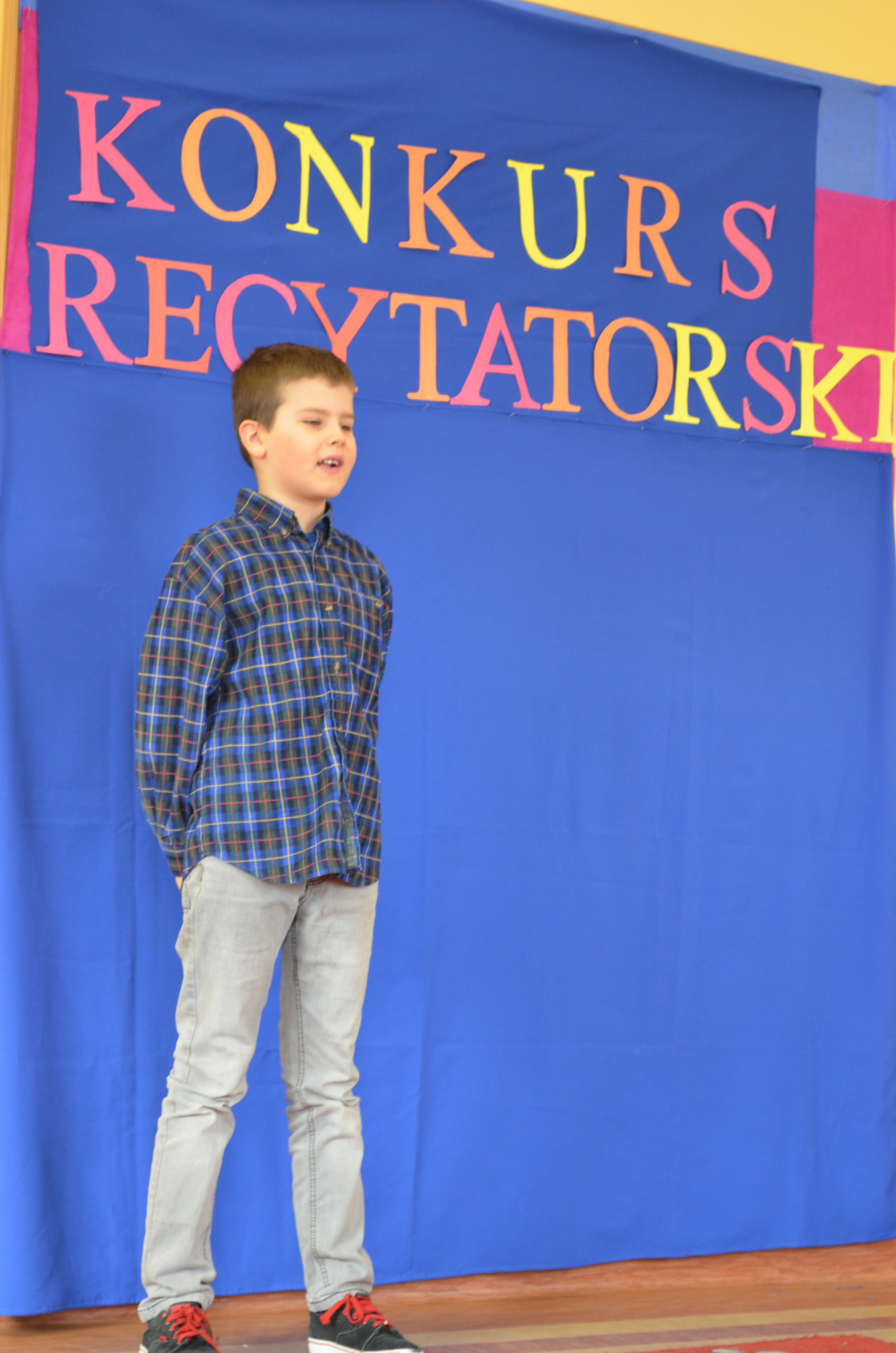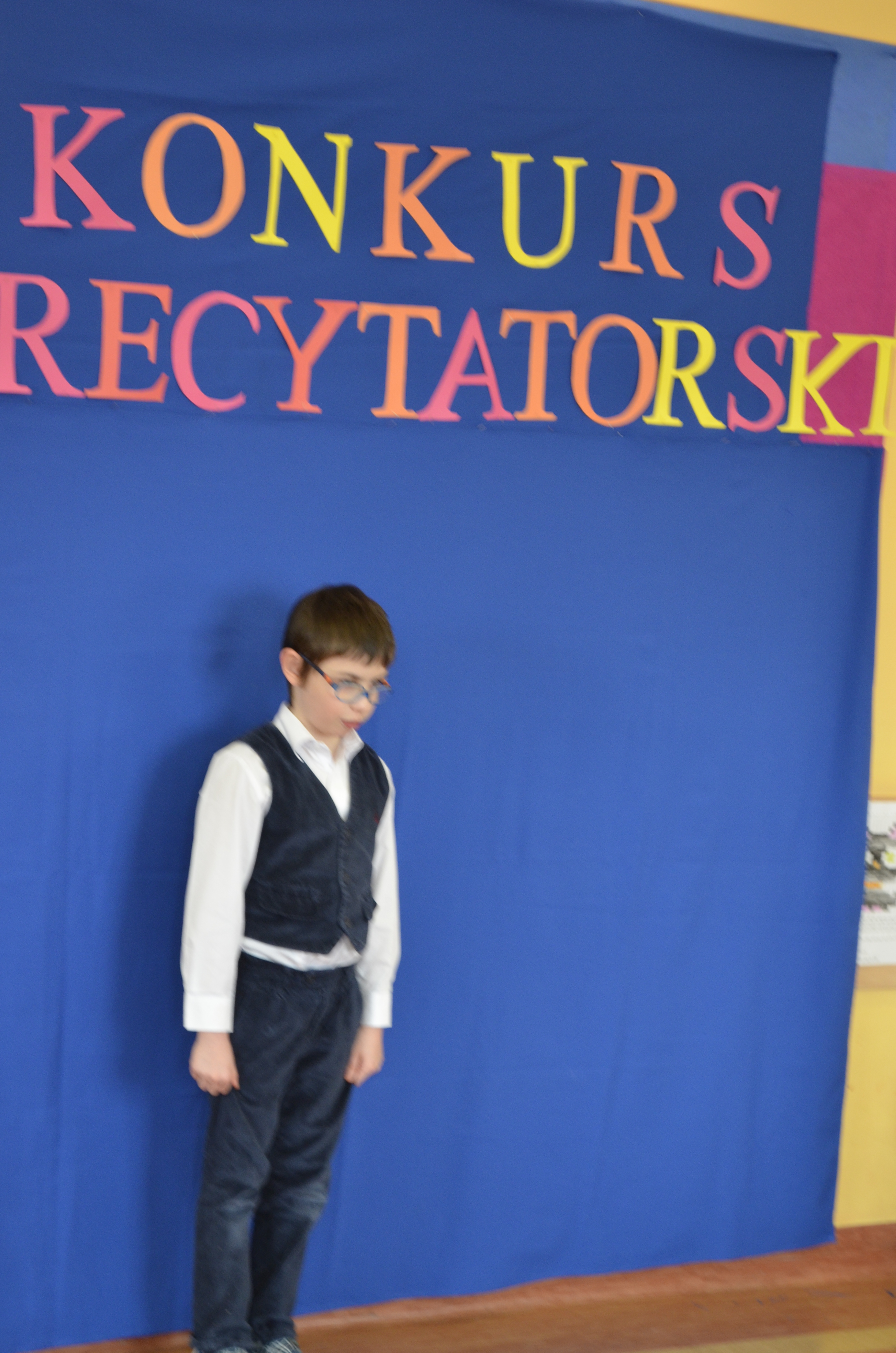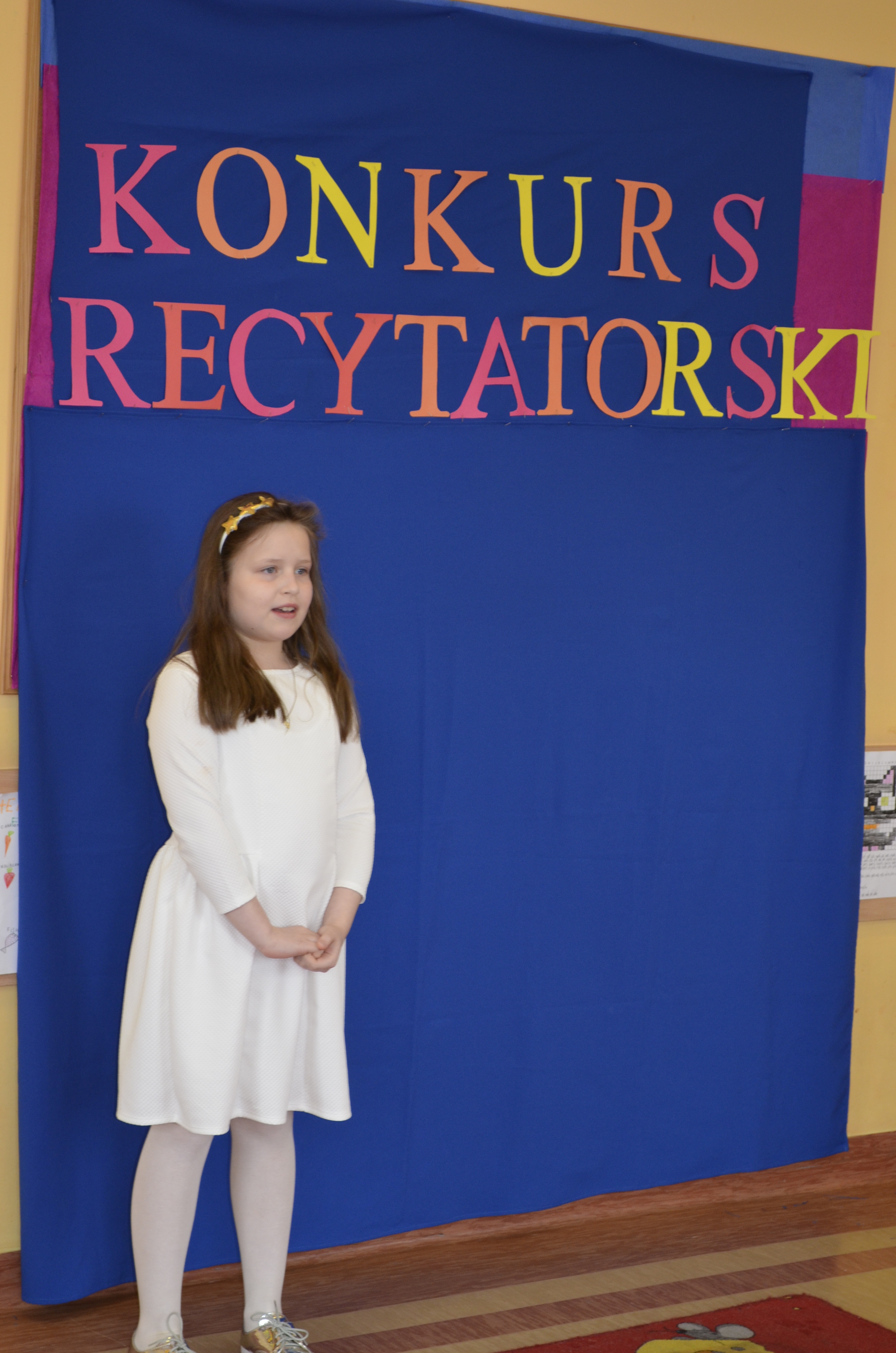 Dnia 9 marca odbył się Szkolny Konkurs Recytatorski klas I – III. Dwa dni wcześniej odbyły się klasowe eliminacje, z których każdy wychowawca wyłonił dwie osoby. Wszystkie dzieci pięknie recytowały wiersze polskich poetów. Jury długo zastanawiało się, komu przyznać miejsca na podium. Po dyskusji podjęto decyzję: