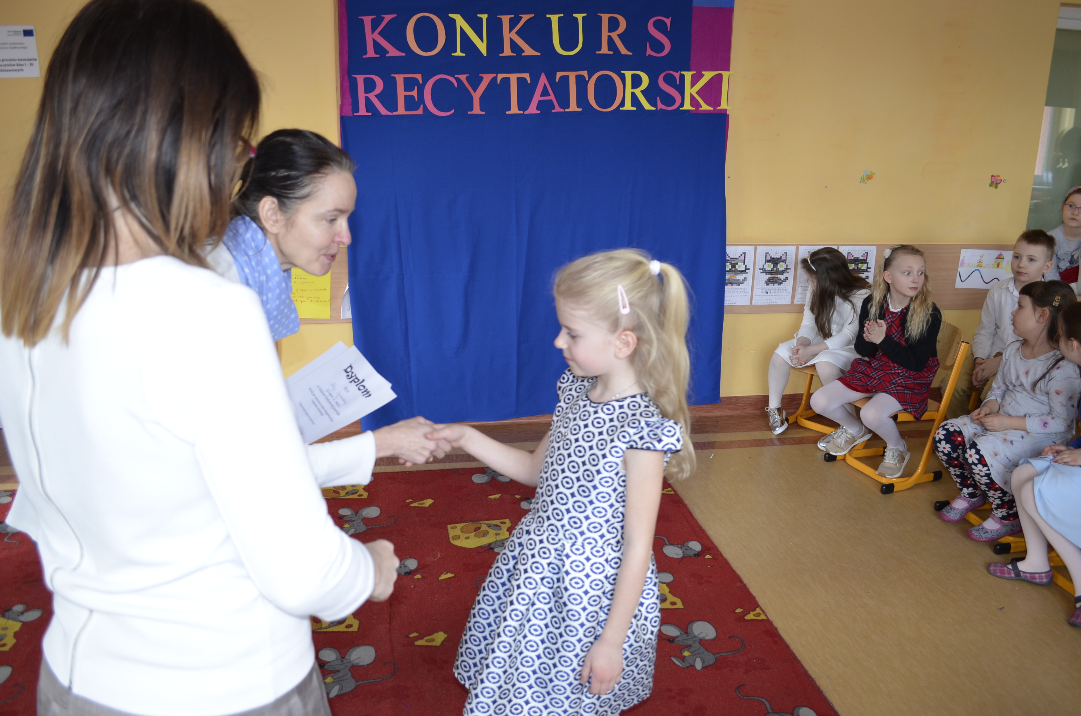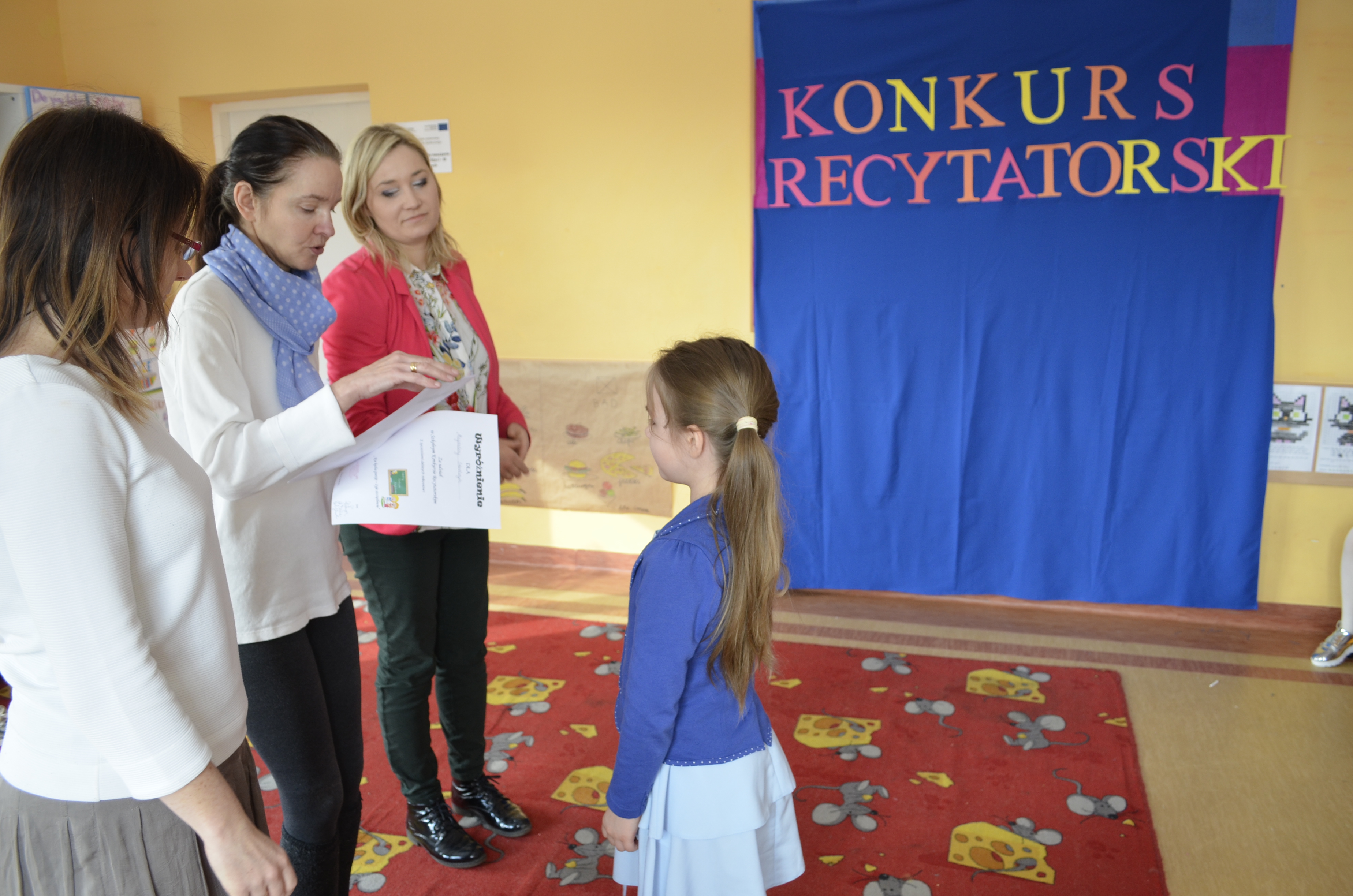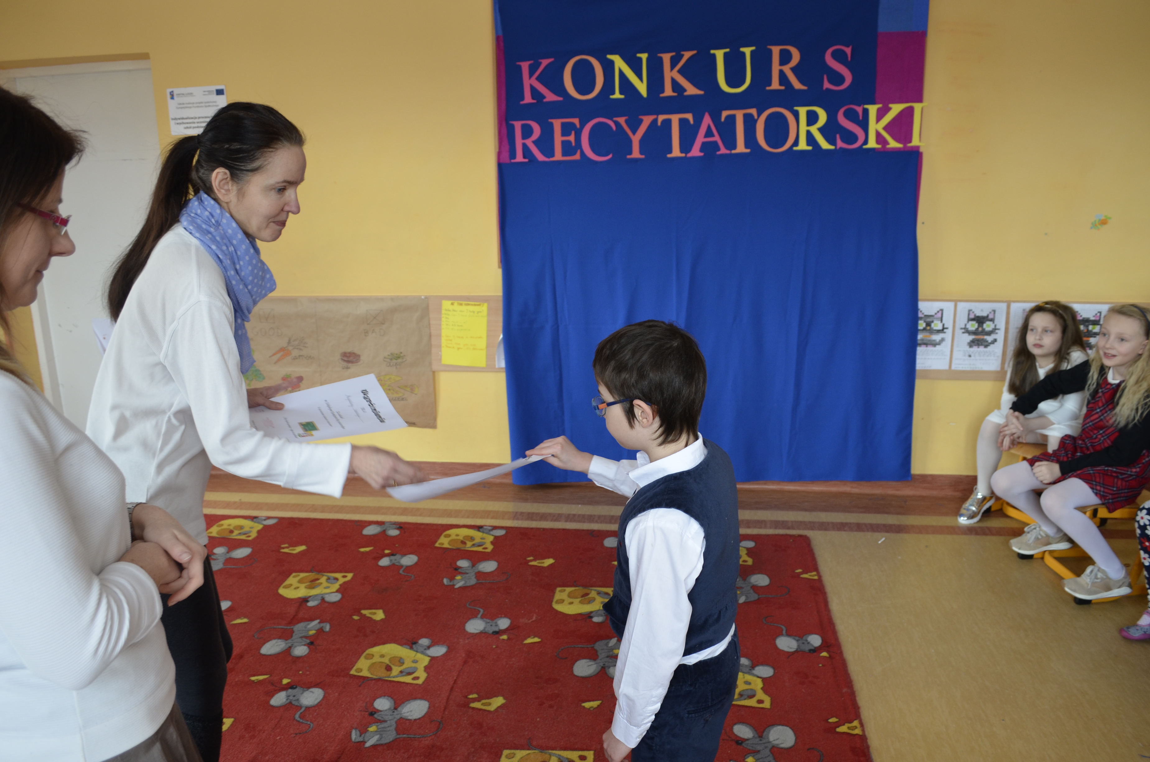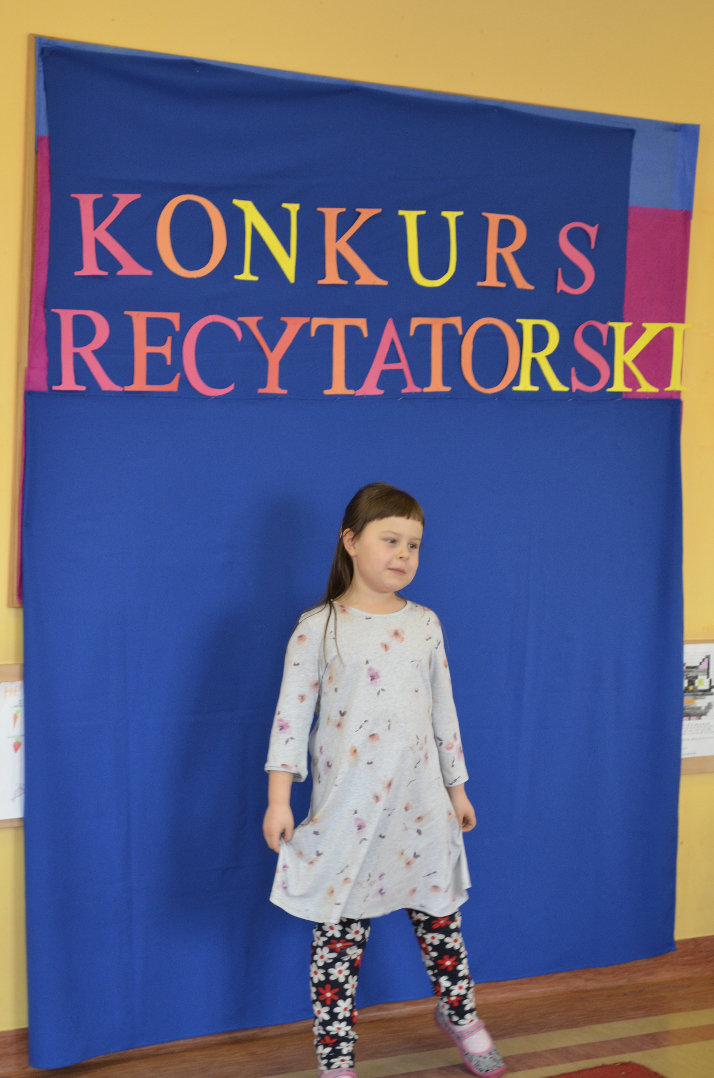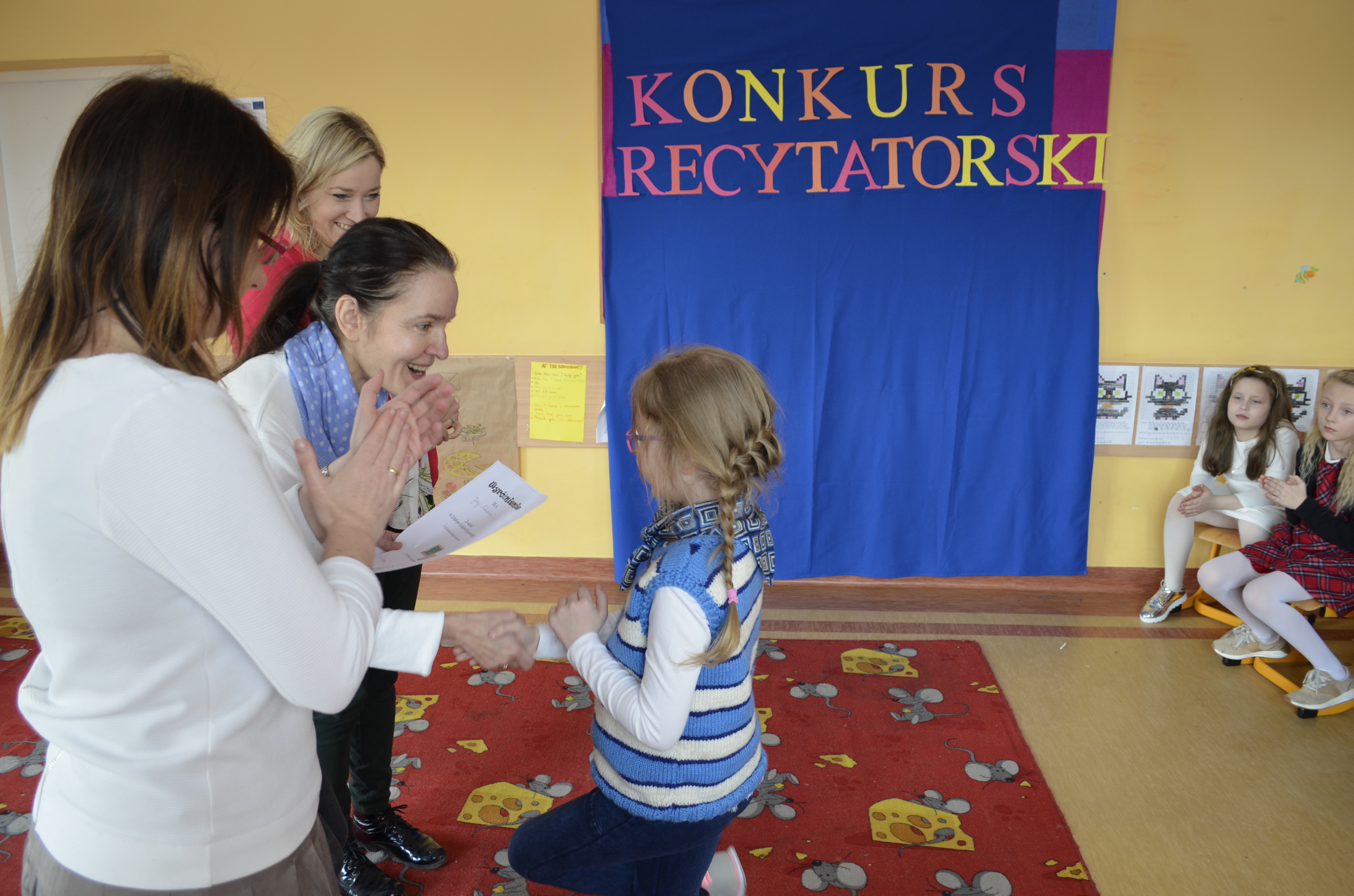 Dnia 9 marca odbył się Szkolny Konkurs Recytatorski klas I – III. Dwa dni wcześniej odbyły się klasowe eliminacje, z których każdy wychowawca wyłonił dwie osoby. Wszystkie dzieci pięknie recytowały wiersze polskich poetów. Jury długo zastanawiało się, komu przyznać miejsca na podium. Po dyskusji podjęto decyzję: