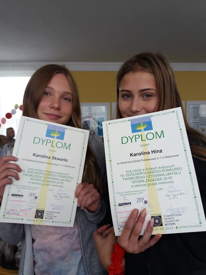 Kiedy jedni bawili się w najlepsze na „Pieczonym Ziemniaku”, drudzy ciężko pracowali! Karolina Hinz i Karolina Skwarło wytężały głowy w finale 19 Ogólnopolskiego Konkursu Twórczego Używania Umysłu „Wyspa zagadek”. Z nadzieją czekamy na wyniki i…..wycieczkę do Szwecji?
