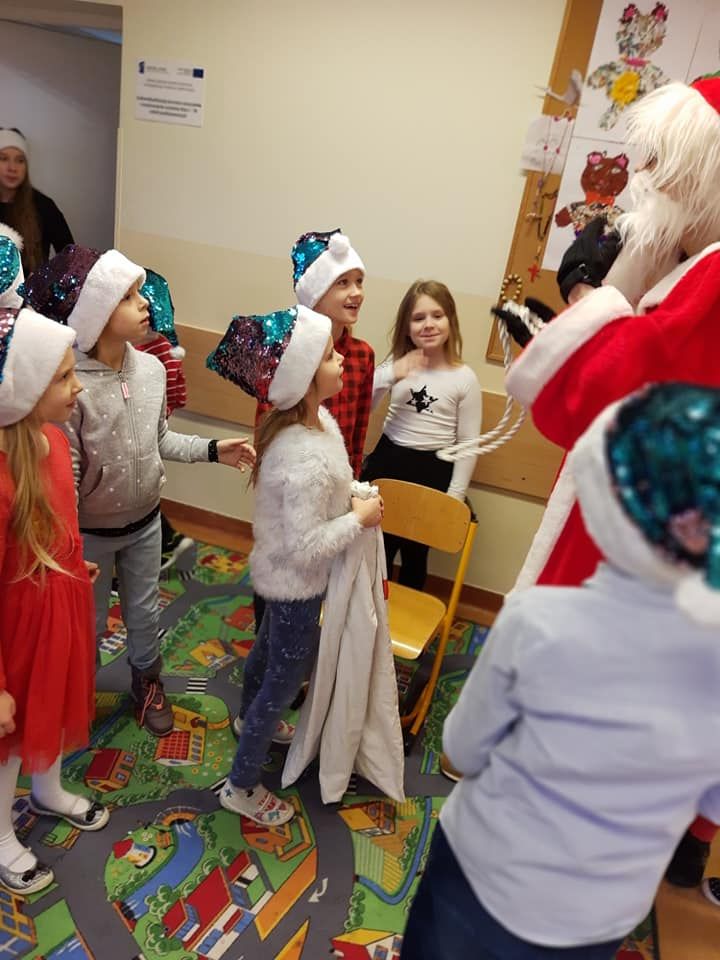 Mikołajkowy dzień w kl. I. Najpierw Mikołaj i szukanie upominków, potem wspólny wyjazd kl. 0-ll kolejką SKM do teatru i zajęcia warsztatowe. Na koniec super atrakcja – powrót kolejką elektryczną z Gdyni do Wejherowa.