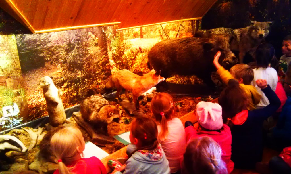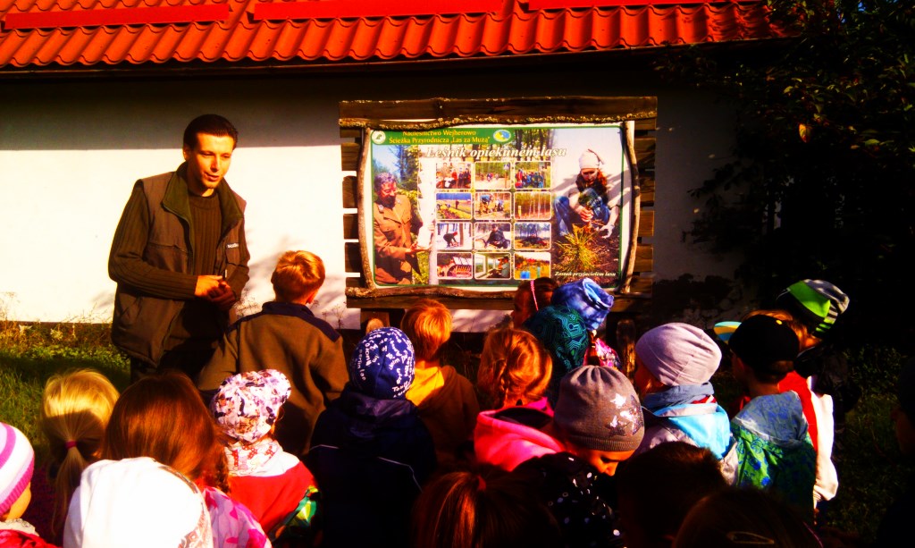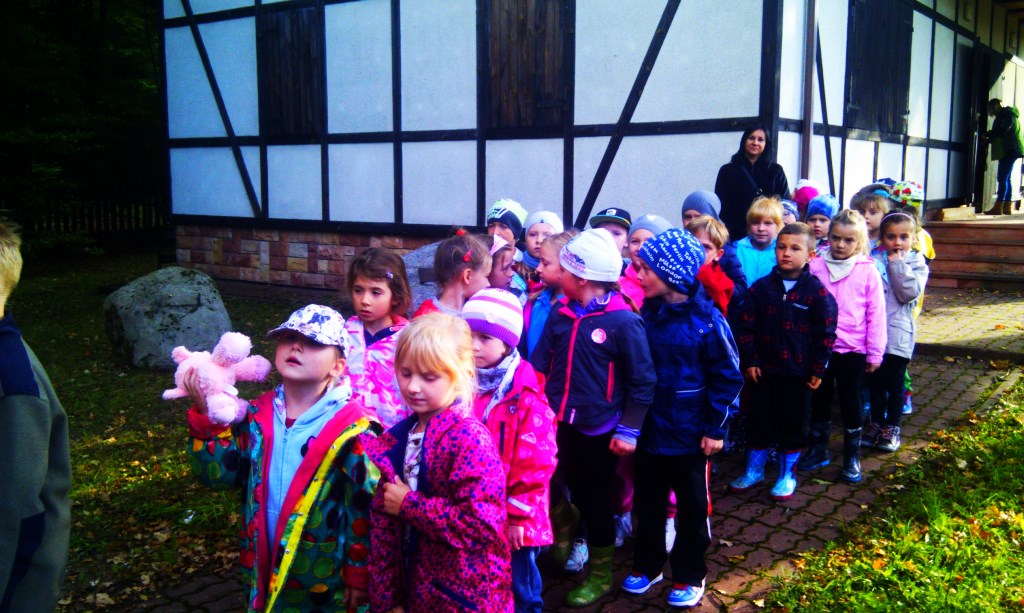 Las jesienią zaczyna mienić się paletą ciepłych barw, wśród szeleszczących liści zauważyliśmy kapelusze grzybów, najpiękniejsze były dostojne muchomory. Po powrocie do leśniczówki, zwiedziliśmy izbę przyrodniczo-leśną, bogatą w mnóstwo wspaniałych eksponatów.