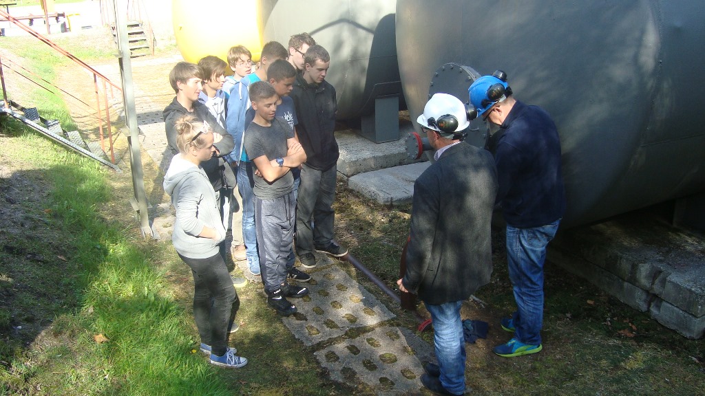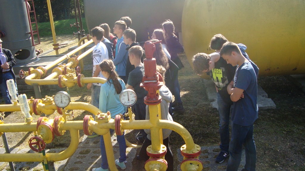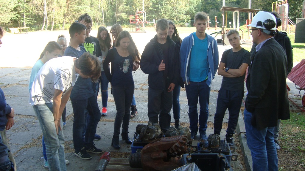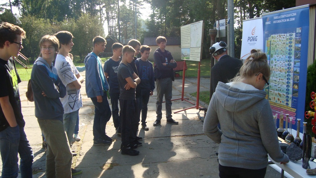 Dnia 29 września 2014 roku uczniowie z III klasy gimnazjum wybrali się do Kopalni Ropy Naftowej i Gazu Ziemnego w Żarnowcu. Tematem tej ciekawej lekcji chemii, której prowadzącym był pan Jacek Słowakiewicz szef kopalni PGNiG na Pomorzu była „Eksploatacja ropy naftowej i gazu ziemnego w Żarnowcu”. Gimnazjaliści odwiedzili dwa odwierty – w Dębkach i Żarnowcu. Wyjazd zorganizowała pani Grażyna Budnik. Z tej ciekawej lekcji uczniowie dowiedzieli się na czym polega regulacja ciśnienia w trakcie wydobywania ropy naftowej i gazu zimnego z głębokości ok. 3000m, o czynniku wynoszącym ropę z tej głębokości czyli gazie ziemnym, którego głównym składnikiem jest metan, oraz poznali etapy rozdzielenia ropy naftowej od gazu ziemnego.
