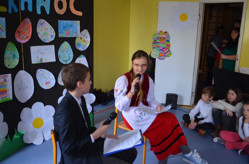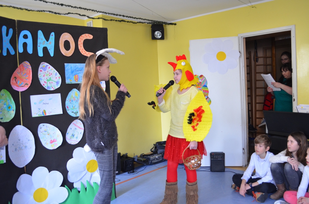 Pierwsze wiosenne promienie nieśmiało przebiły się przez zimowe chmury. W tym radosnym czasie, w którym przyroda budzi się do życia, odbywa się najważniejsze dla chrześcijan święto- Wielkanoc. Klasa piąta postanowiła wprowadzić nas w ten świąteczny nastrój i przygotowała apel wielkanocny pod przewodnictwem p. A. Styn, który swoim śpiewem ubogaciły dzieci z kółek muzycznych pod kierunkiem p. A. Kotłowskiej.
