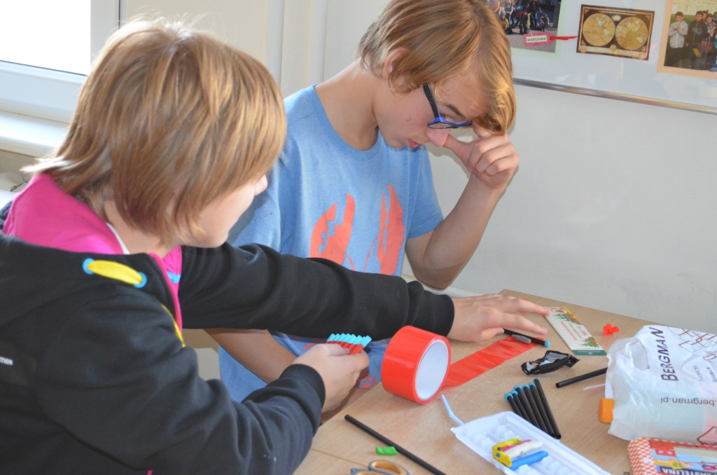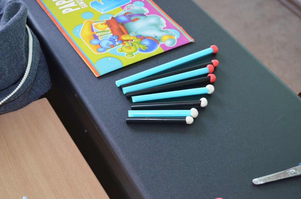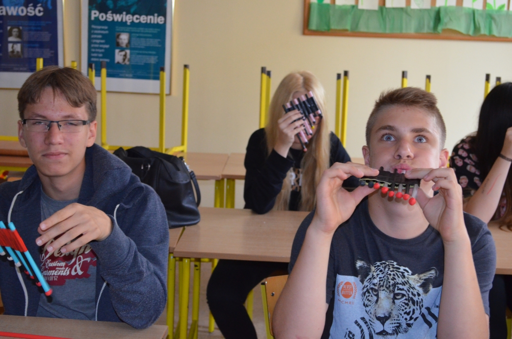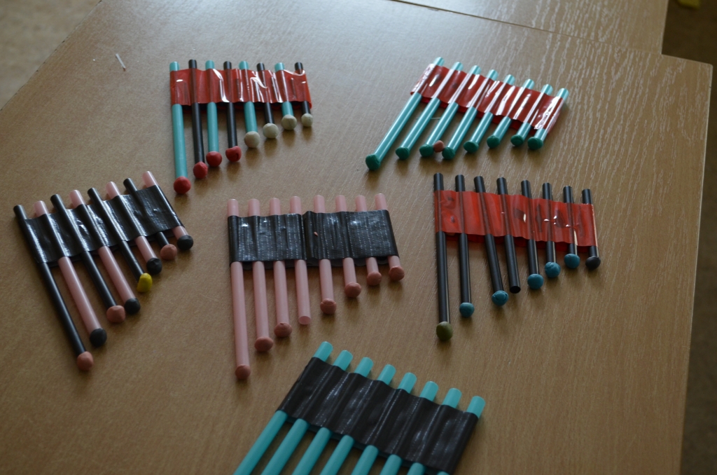 Uczniowie przynieśli tego dnia do szkoły nie trzcinę, ale kolorowe słomki do napojów, plastelinę, nożyczki i taśmę. Dowiedzieli się, jakie długości powinny mieć słomki by powstała gama C-dur i że każdy milimetr jest ważny bo zmienia wysokość dźwięku. Gratulacje dla tych którzy samodzielnie wykonali ten instrument, niektórym docinanie słomek sprawiało trudność. Na koniec zajęć wspólnie zagraliśmy z akompaniamentem pianina melodię „Wlazł Kotek”.