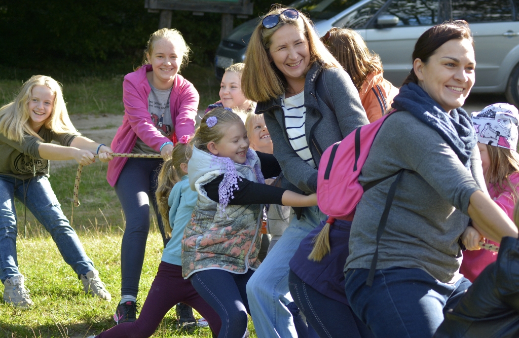 Zarówno nauczycielom, jak i uczniom i ich rodzicom dopisały humory. Nie zabrakło dobrej zabawy przy ognisku i przepysznym jedzeniu. Wielu emocji dostarczyło wspólne przeciąganie liny – konkurencja, w której wygrali uczniowie, pokonując niestety kadrę pedagogiczną :).