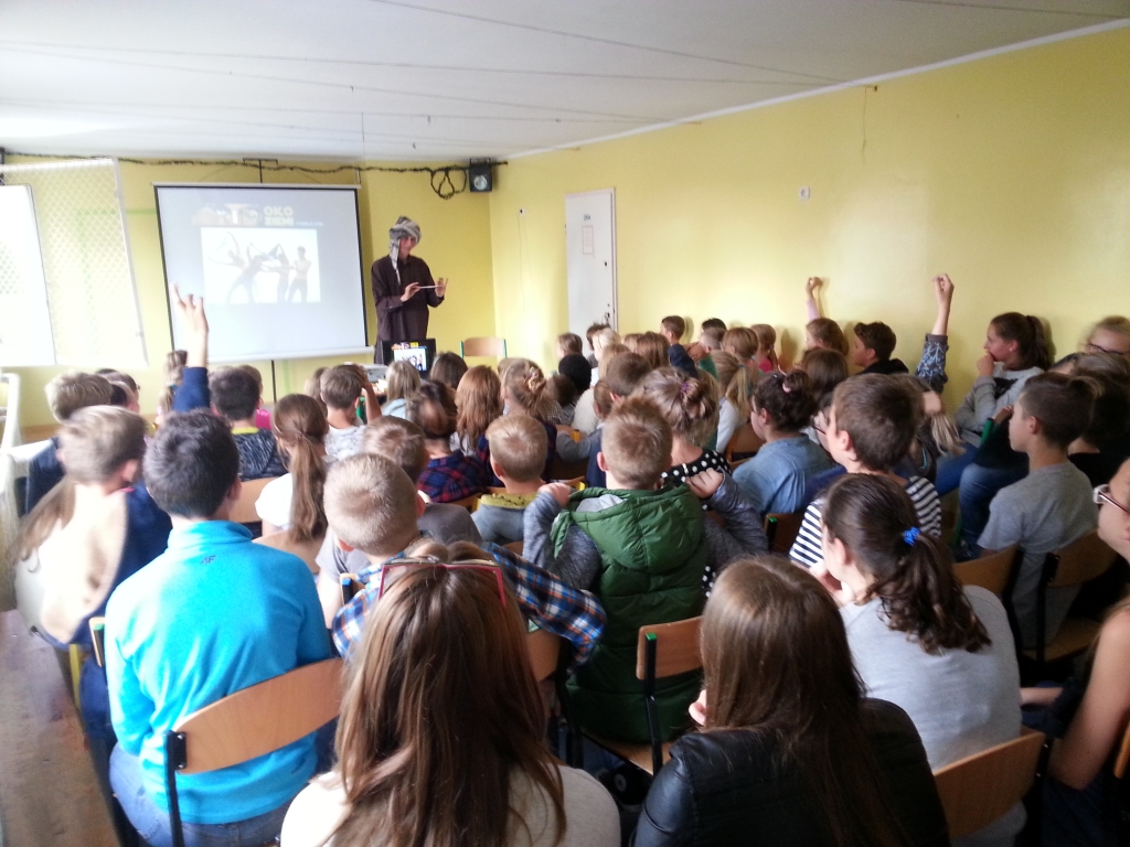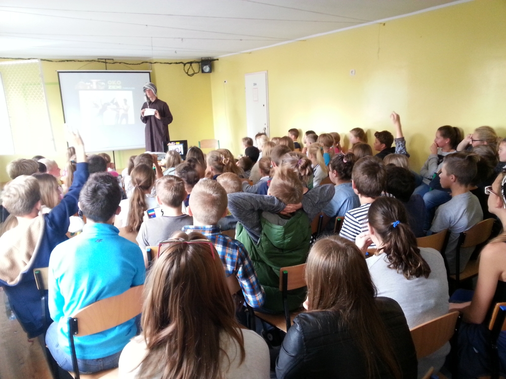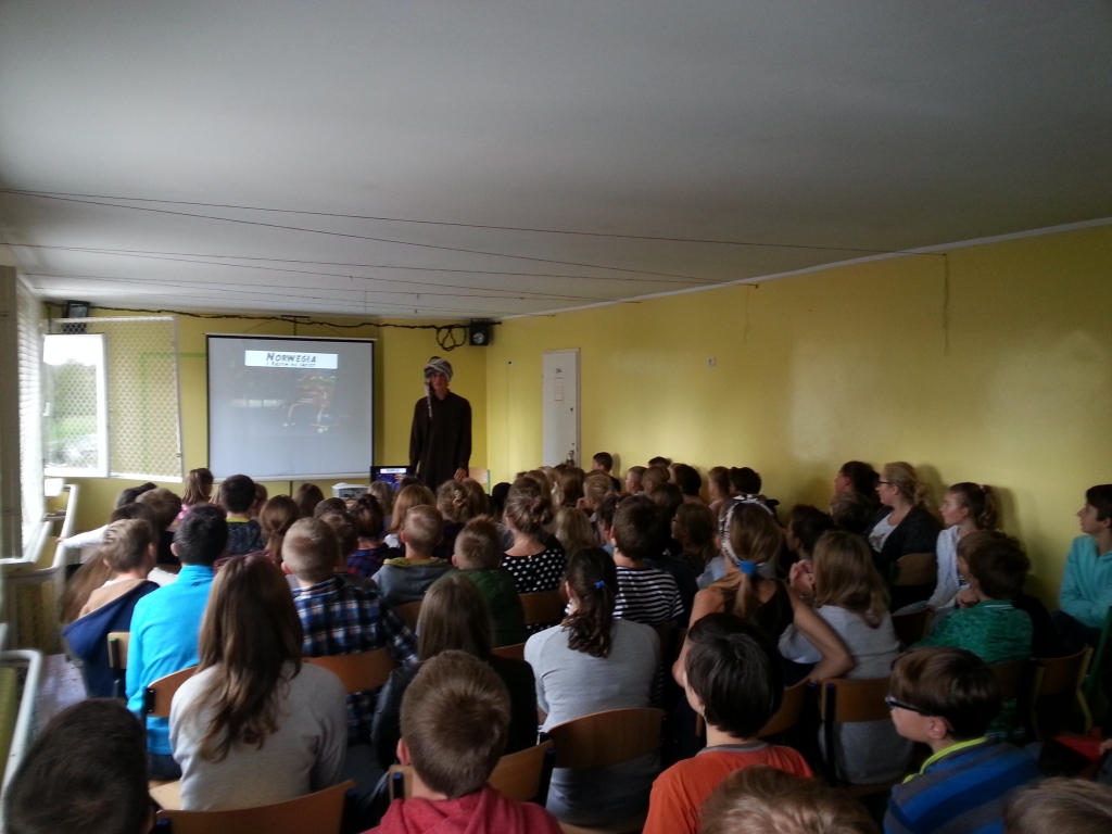 W poniedziałek (28.09.) mieliśmy okazję odbyć niesamowitą podróż, której przewodniczył niezwykły podróżnik – p. Michał Miziarski. Nasz gość zabrał nas m.in. do Turcji, Gruzji, Iranu, Maroka. W barwny sposób opowiadał o samotnej wyprawie autostopem po najdalszych zakątkach Europy i świata. Poznaliśmy historię młodzieńca, który w wieku 19 lat rozpoczął swoją niezwykłą podróż. Pan Michał dzielił się z nami swoimi doświadczeniami, pięknie mówił o napotkanych ludziach, o ich życzliwości, zaufaniu i chęci niesienia pomocy bez względu na barierę językową i odmienność kulturową czy obyczajową. W tę opowieść wplecione zostały slajdy ze zdjęciami, które komentowały to, o czym opowiadał nasz gość.