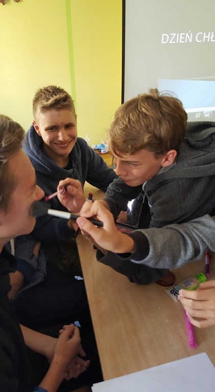 Świętowaliśmy pełną parą. Z okazji Dnia Chłopaka mężczyźni naszej szkoły mieli okazję zapoznać się ze specyfiką……… kobiecego świata. Zarówno uczniowie podstawówki jak i gimnazjum – pod czujnym okiem swoich koleżanek z Samorządu Szkolnego – rywalizowali o pierwsze miejsce w konkursach na najpiękniejszy makijaż czy też na najlepszą stylizację :):):) Wszyscy bardzo dobrze się bawili. Było mnóstwo zabawnych sytuacji, które podkreślały charakter naszego spotkania :):)