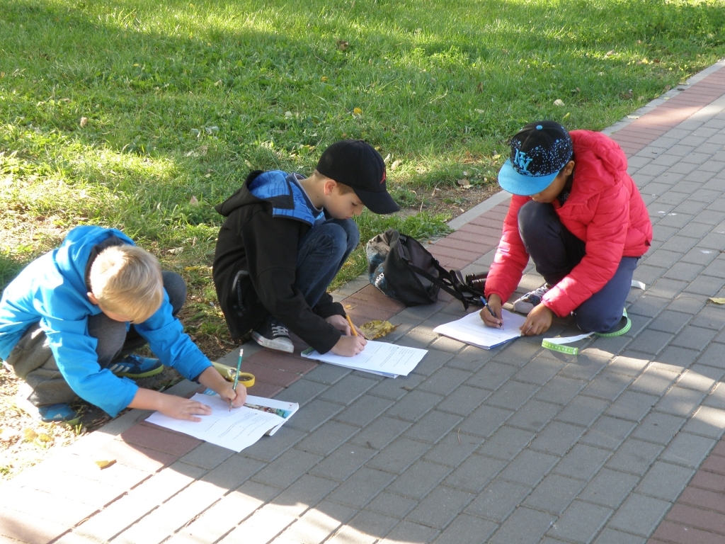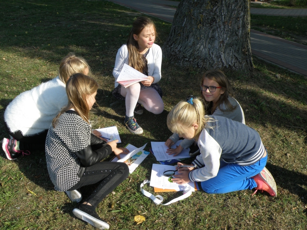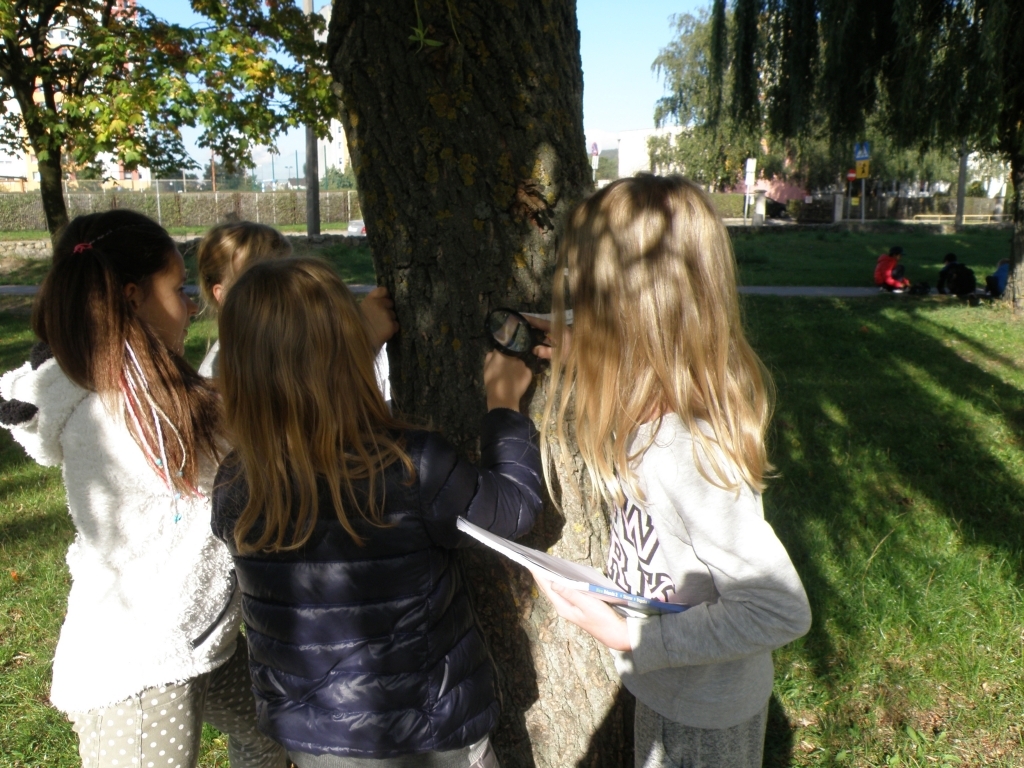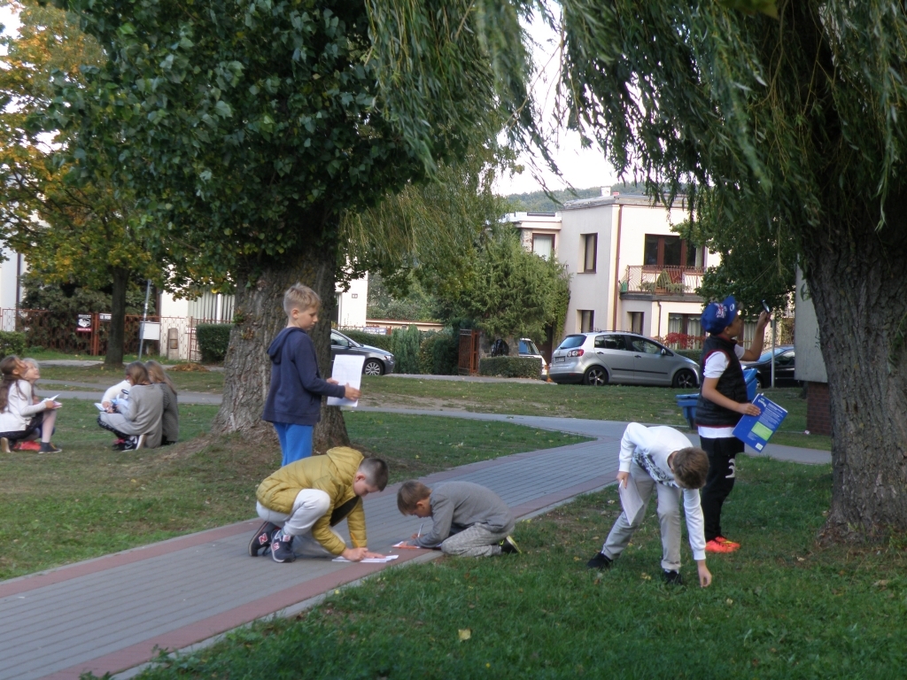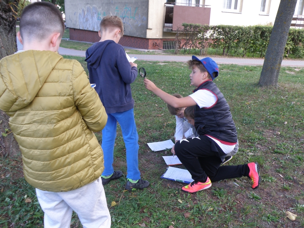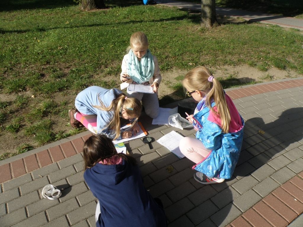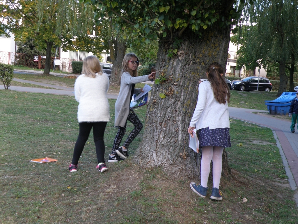30 września i 1 października uczniowie klas czwartych uczestniczyli w terenowych lekcjach przyrody. Głównym celem lekcji było przeprowadzenie obserwacji wybranych drzew liściastych. Uczniowie zaopatrzeni w lupy i miary mierzyli obwody drzew, określali ich wygląd i pokrój, rodzaj kory, kształt liści, ich barwę oraz wielkość. Swoje spostrzeżenia i rysunki zamieścili w kartach pracy.