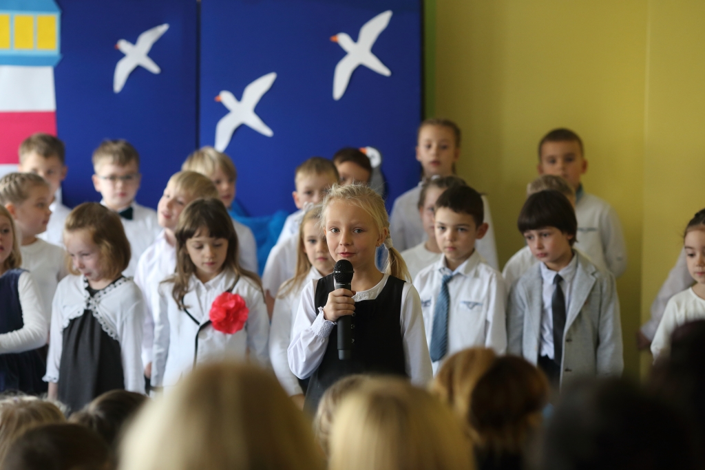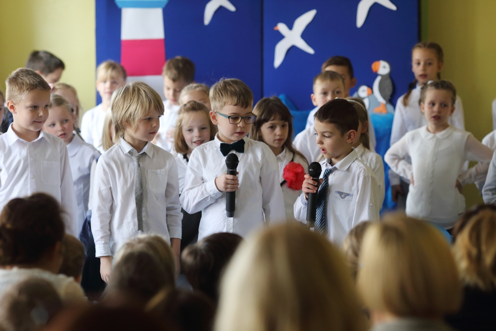 To właśnie 29 października 2015r. pierwszaki z klasy 1a i 1b ubrani w galowe stroje rozpoczęli uroczystość inscenizacją o długim rejsie przez niebezpieczne i zagadkowe wyspy. Dzieci musiały pokonać wiele przeciwności losu, aby dopłynąć do przystani przy Społecznej Szkole Podstawowej w Wejherowie. Ta niezwykła podróż nie mogła odbyć się bez kapitana –naszej Pani Dyrektor Danuty Ornal. Dzieci wspaniale występowały, ale przede wszystkim pokazały jak wiele już potrafią.