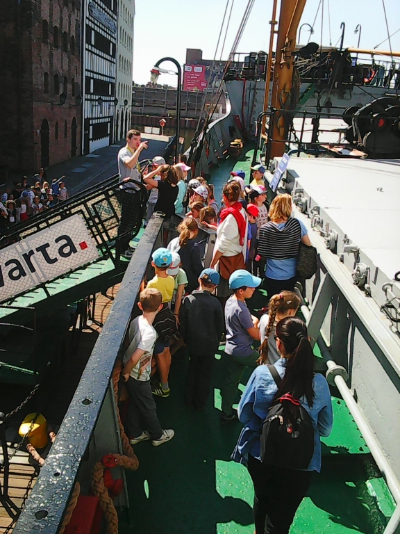 Kończy się drugi rok Akademii Gdańskich Lwiątek. W ramach tego programu Klasy II a i II b udały się w kolejną wycieczkę. Dzieci zwiedziły pierwszy polski statek handlowy "Sołdek". oraz słynnego gdańskiego "Żurawia". Na statku zobaczyły ogromne piece węglowe, które napędzały jeszcze większy silnik, ładownie, kajuty marynarzy, kapitański mostek. Wszędzie mogliśmy wejść i wszystkiego dotknąć. Pan przewodnik odpowiadał nam na wszystkie pytania. W Żurawiu czekała na nas pani przewodnik, która opowiedziała nam legendę o holenderskiej wdowie, a przy okazji dowiedzieliśmy się jak odbywał się handel w gdańskim porcie. Gdańsk to piękne stare miasto, chętnie do niego jeszcze wrócimy.