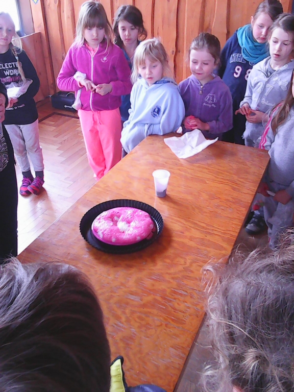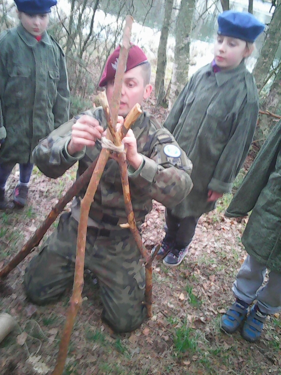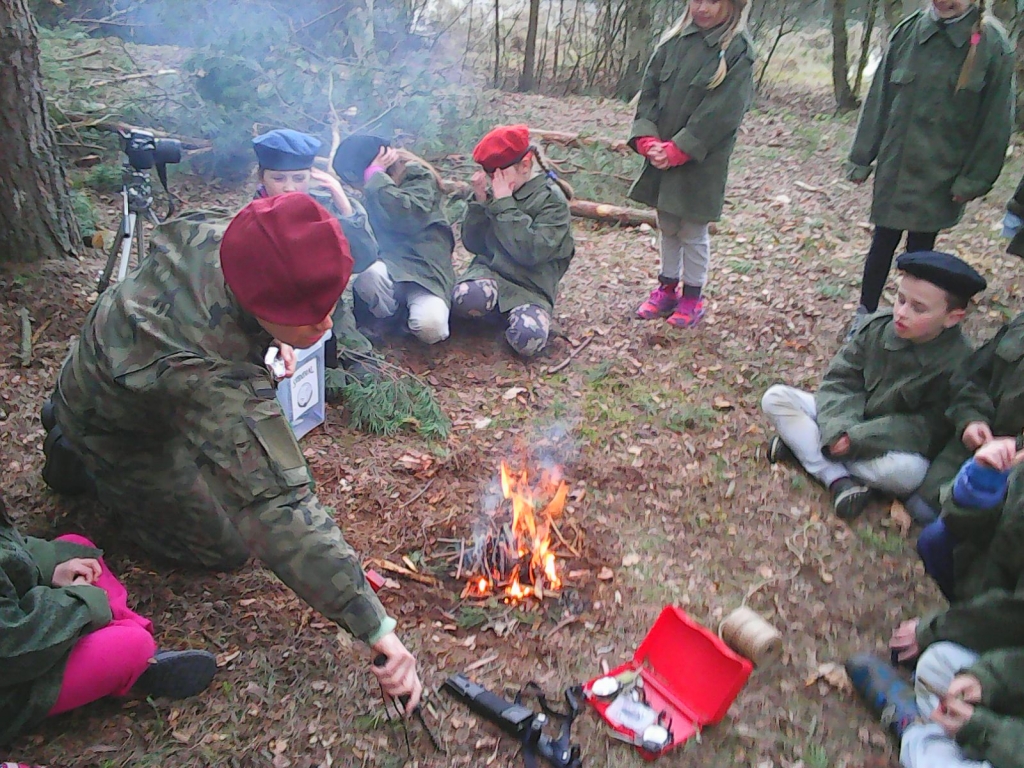 Tym razem opuścili rodziców na 3 dni, aby przeżyć wspaniałą przygodę. Choć pogoda ich nie rozpieszczała ,nie mieli czasu na nudę . Było mnóstwo zabawy, ciekawych zajęć i atrakcji. Już pierwszego dnia dostali mundury i berety z orzełkiem –byli plutonem. Uczyli się jak przetrwać w lesie, zbudować szałas, rozpalić ognisko czy przefiltrować wodę. Wieczorem wyruszyli na poszukiwanie skarbu. Musieli wykazać się nie lada sprawnością podczas pokonywania toru przeszkód, czołgania się pod siatką czy przejścia po linie. Oprócz zajęć survivalowych były również inne: wykonanie maski swojej twarzy, samodzielne wyrabianie plasteliny oraz warsztaty pt. ,,Naukowy zawrót głowy” . Była również dyskoteka. Jednym słowem dla każdego było coś miłego.