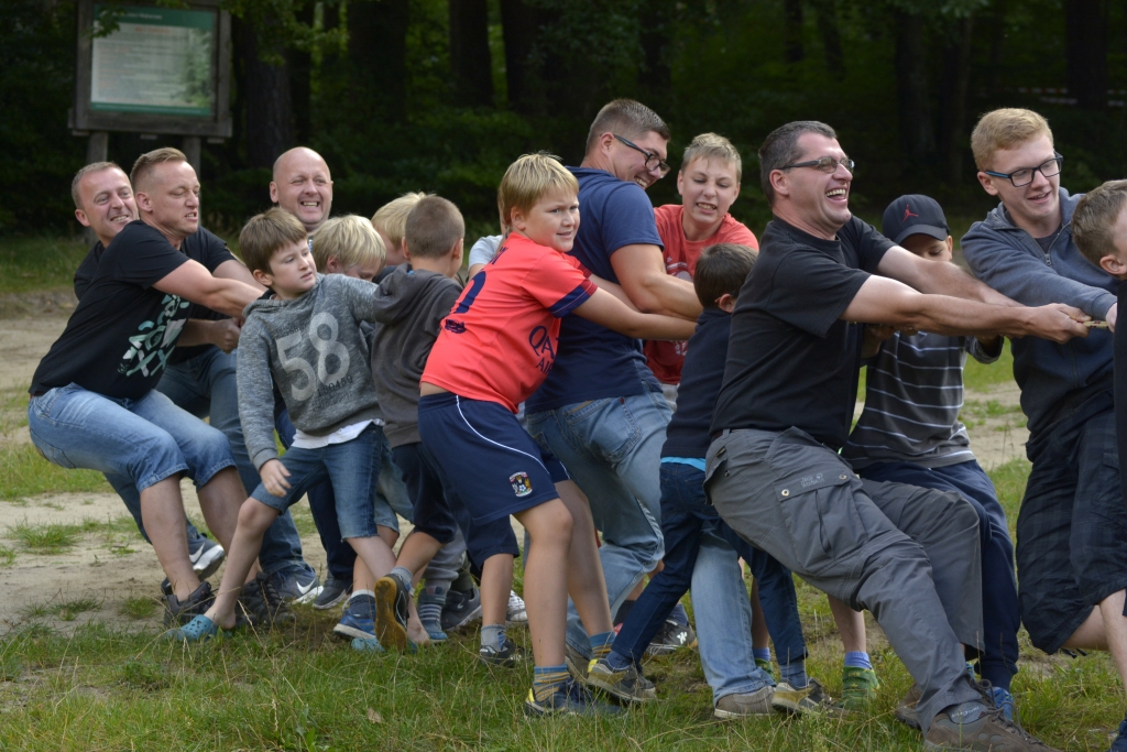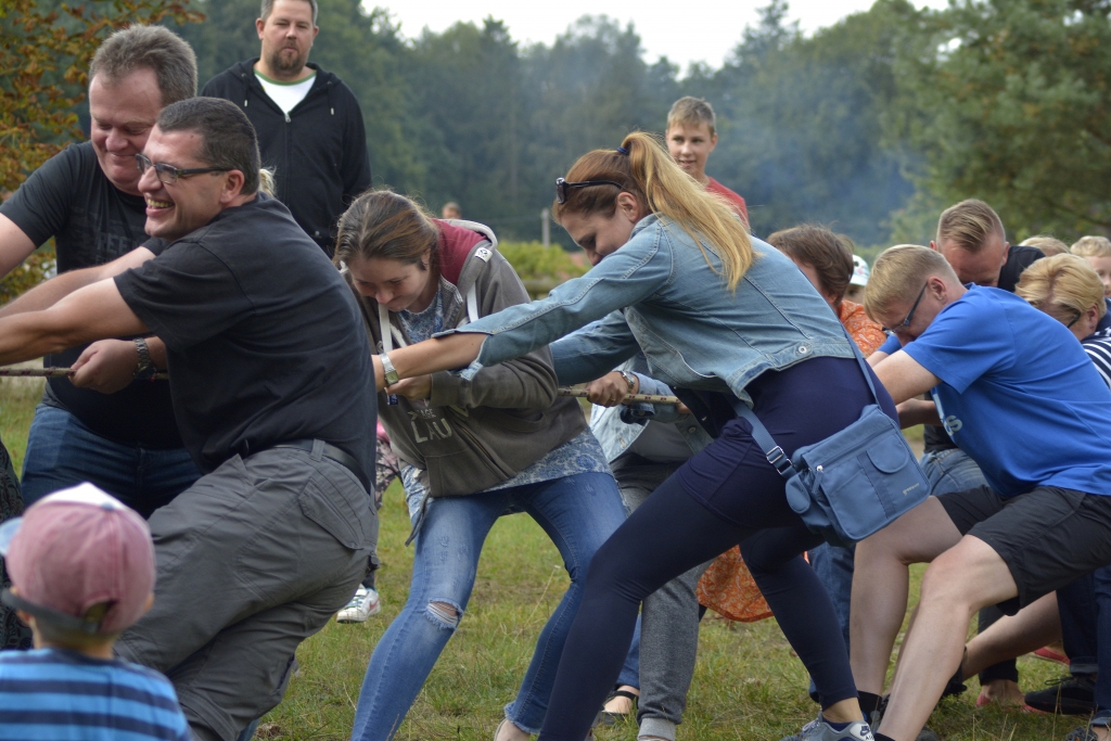 Piękna pogoda, dobre humory, ciekawe gry, zabawy i konkursy gwarantowały udaną zabawę na Święcie Pieczonego Ziemniaka, które zorganizowaliśmy 17 września w Kępinie. Zaczęliśmy tradycyjnie: poszukiwaniem chrustu potrzebnego do rozpalenia ogniska. Tym razem nie zabrakło podpałki i siekierki do porąbania co większych okazów – konarów przytaszczonych z lasu. Dla łasuchów mamy przygotowały chleb ze smalcem, paszteciki, ciasta, babeczki i inne pyszności. Kolejki ustawiały się również do pieczenia kiełbasek i pysznej domowej grochówki. Dużo śmiechu zapewniły rodzinne konkursy sportowe oraz nieodzowne przeciąganie liny w różnych wariantach. Aura sprzyjała rozmowom. Szkoda tylko, że zabrakło……. pieczenia ziemniaków. Może uda się w przyszłym roku! Filmowe wspomnienia z tego dnia znajdziecie na naszym facebooku.