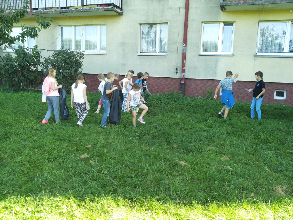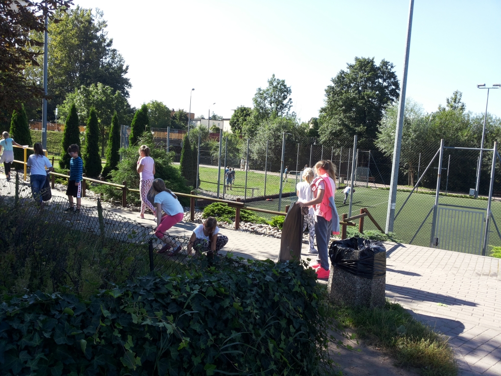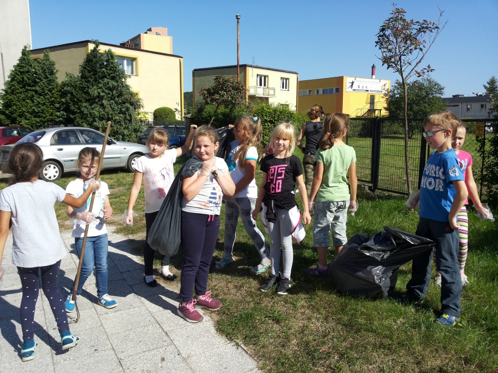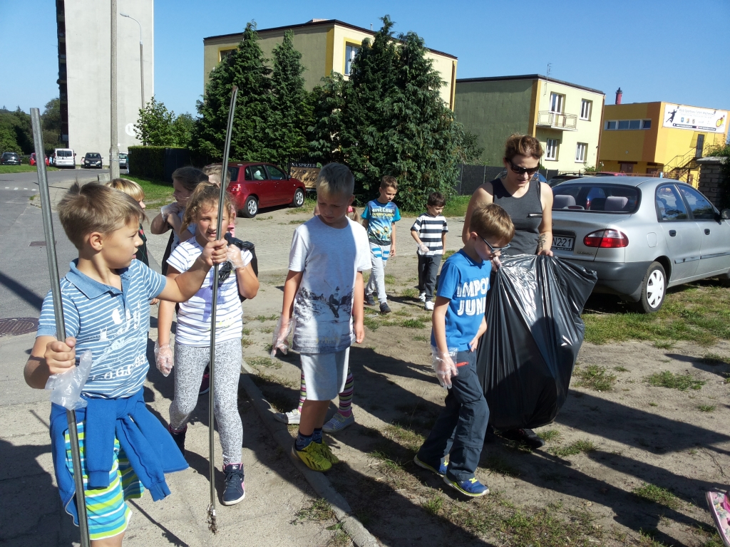 Na piątej godzinie lekcyjnej, wszyscy uczestnicy zaopatrzeni w worki i rękawice wyruszyli posprzątać najbliższą okolicę. Maluchy sprzątały teren przyszkolny, a klasy starsze zadbały o bardziej oddalone ulice. Śmieci było sporo, ale w porównaniu do lat ubiegłych jest ich coraz mniej. Cieszymy się, że nasze działania przyczyniają się do tego, że możemy pochwalić się ładniejszym otoczeniem.