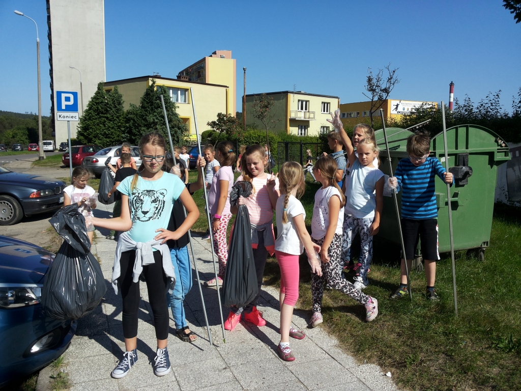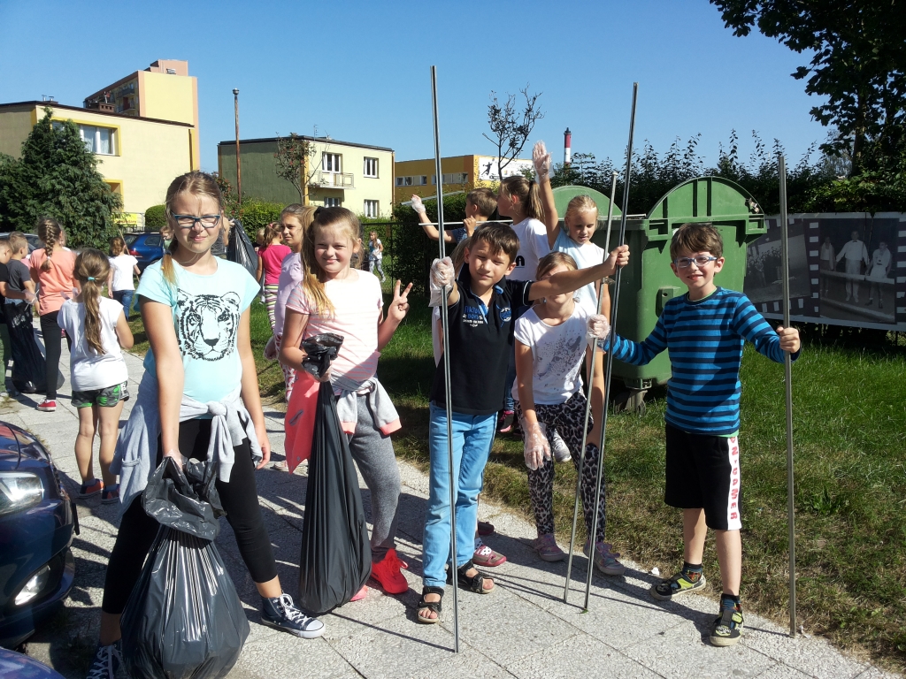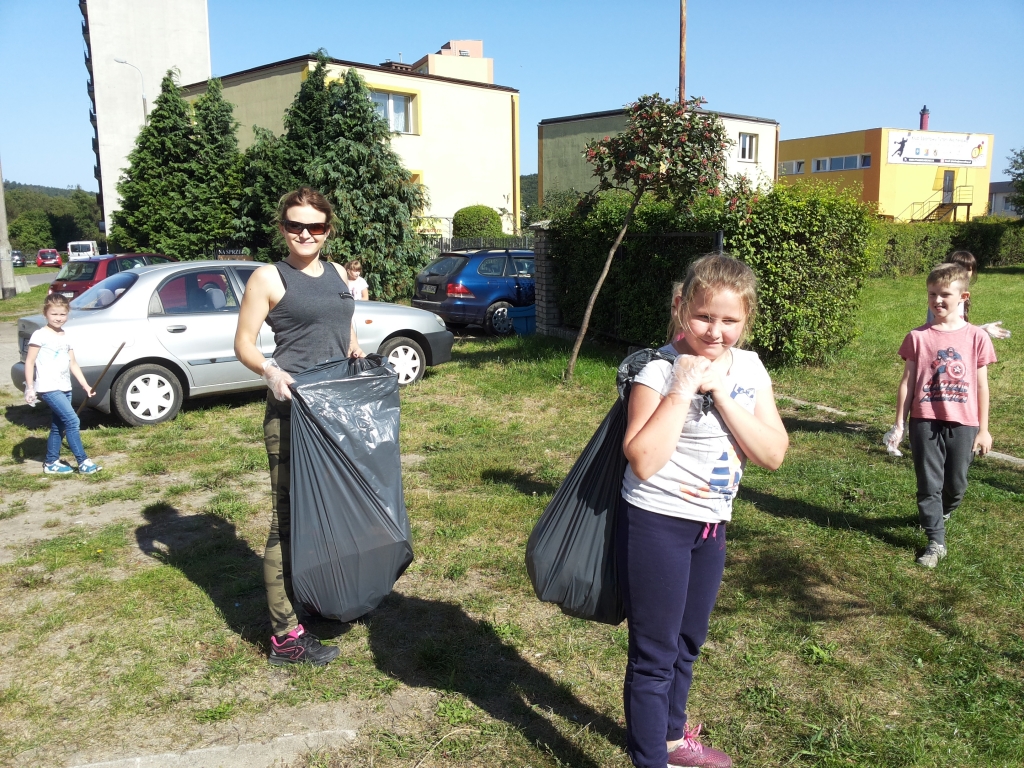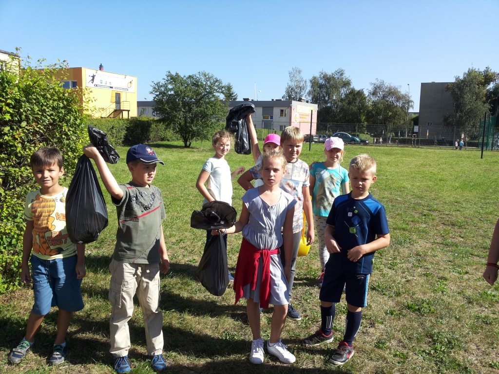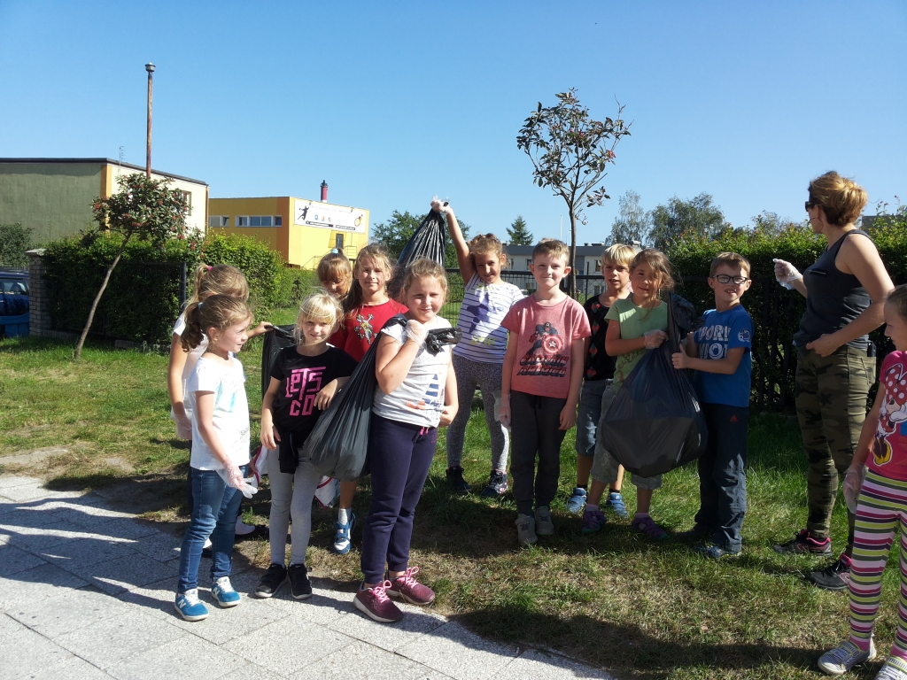 Na piątej godzinie lekcyjnej, wszyscy uczestnicy zaopatrzeni w worki i rękawice wyruszyli posprzątać najbliższą okolicę. Maluchy sprzątały teren przyszkolny, a klasy starsze zadbały o bardziej oddalone ulice. Śmieci było sporo, ale w porównaniu do lat ubiegłych jest ich coraz mniej. Cieszymy się, że nasze działania przyczyniają się do tego, że możemy pochwalić się ładniejszym otoczeniem.