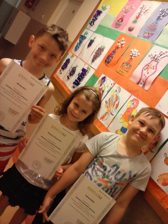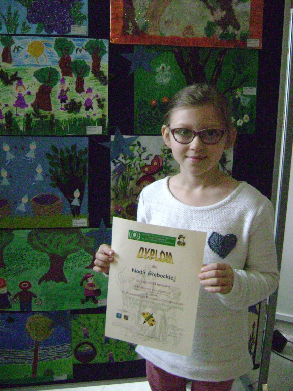 W tym roku już po raz dziewiąty odbył się Powiatowy Konkurs Czytelniczy zorganizowany przez Miejską Bibliotekę Publiczną w Wejherowie. Tym razem dzieci musiały się wykazać znajomością życia i twórczości Marii Konopnickiej. Cały konkurs podzielono na trzy składowe: ilustracja do książki „Na jagody”, gra planszowa oraz wywiad. Na konkurs plastyczny wpłynęło ponad 300 prac. Uczennica naszej szkoły Nadia Głębocka z klasy III zajęła II miejsce! W tworzeniu gry planszowej znakomicie sprawdziła się Katarzyna Adamowicz z klasy IV A również zajmując II miejsce. Dziewczynkom bardzo gratulujemy!