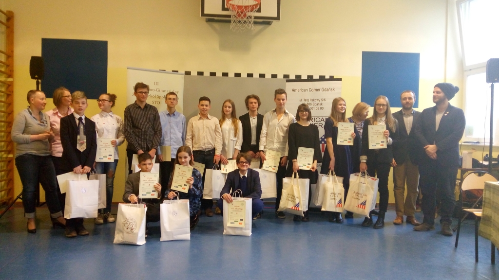 Uczniowie klasy trzeciej 22 kwietnia wzięli udział w finale Wojewódzkiego Konkursu  Wiedzy „ Postaw na milion”, który już po raz trzeci zorganizował przez Zespół Szkół Społeczych „STO” w Gdańsku. Nasz reprezentacja w składzie: Nadia Głębocka, Lidka Malińska i Tobiasz Roda zdobyła V miejsce. Gratulujemy odwagi oraz wiedzy w zmaganiach konkursowych!