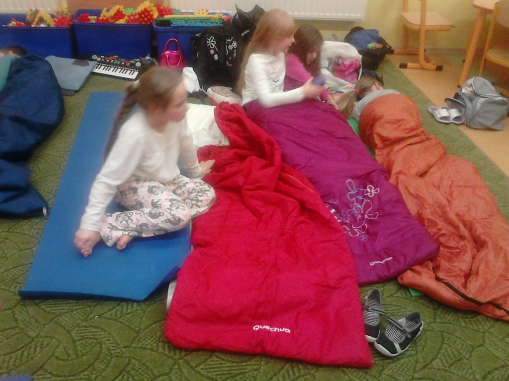 22 kwietnia 2016r. uczniowie klas pierwszych, uczęszczających na zajęcia z języka kaszubskiego, wzięli udział w nocowaniu pod opieką p. Ani Hebel i Magdy Fąferek. Śmiechu i dobrej zabawy było co niemiara! Kaszubskie muzykowanie, tworzenie kartonowych stworków i pyszna pizza sprawiły, że na długo zapamiętamy tę noc! Dziękujemy!!!