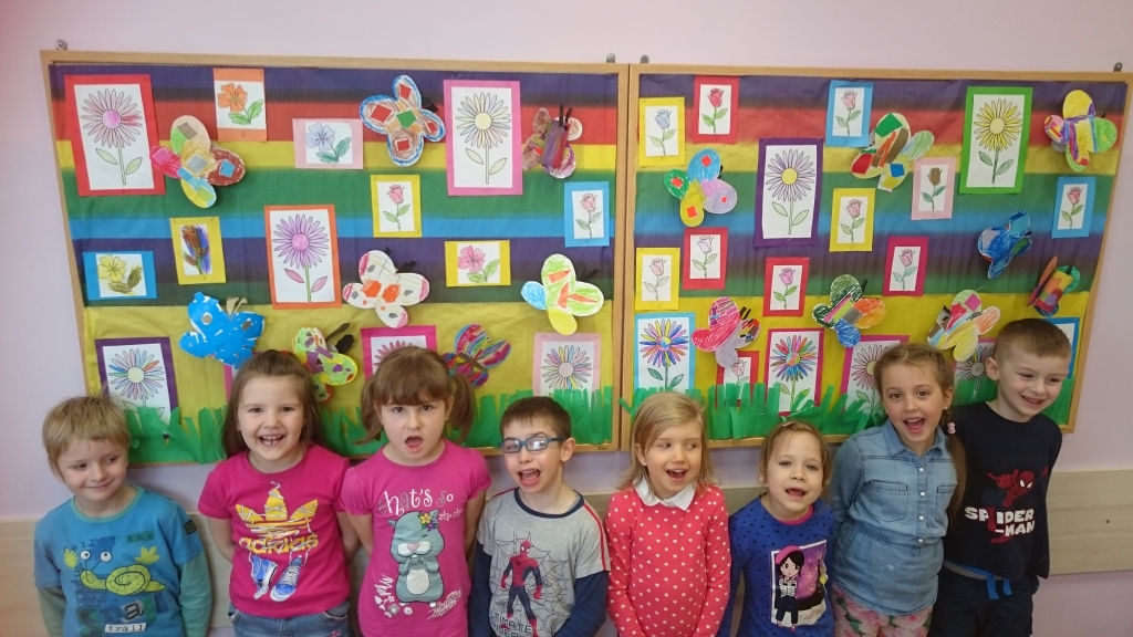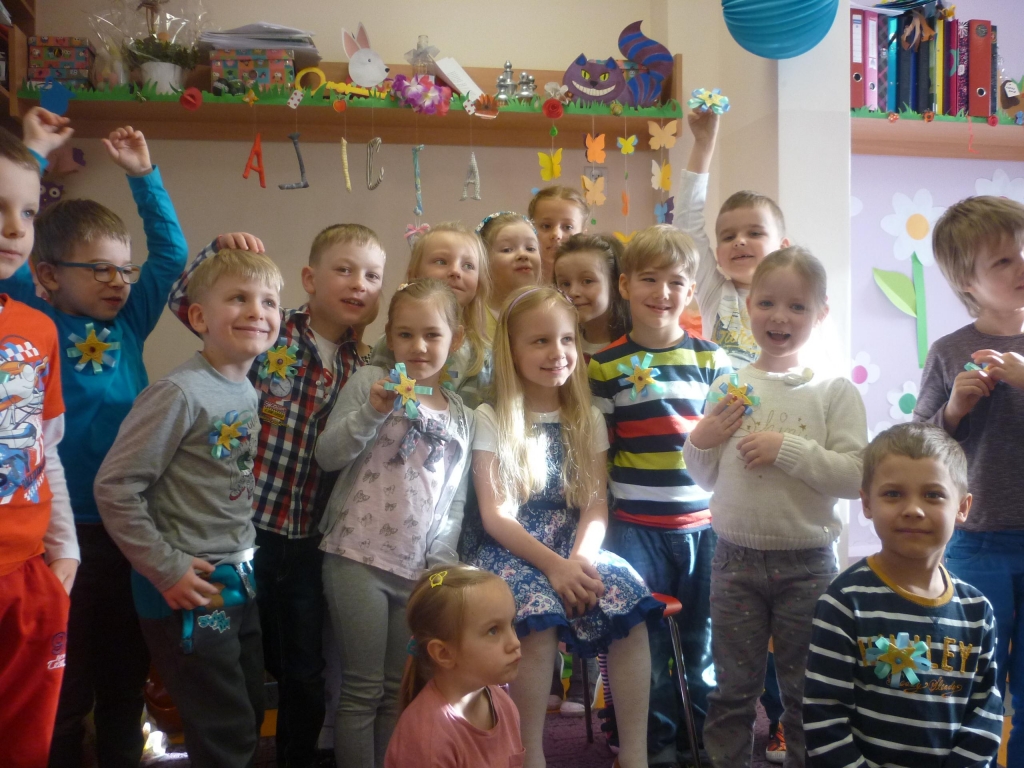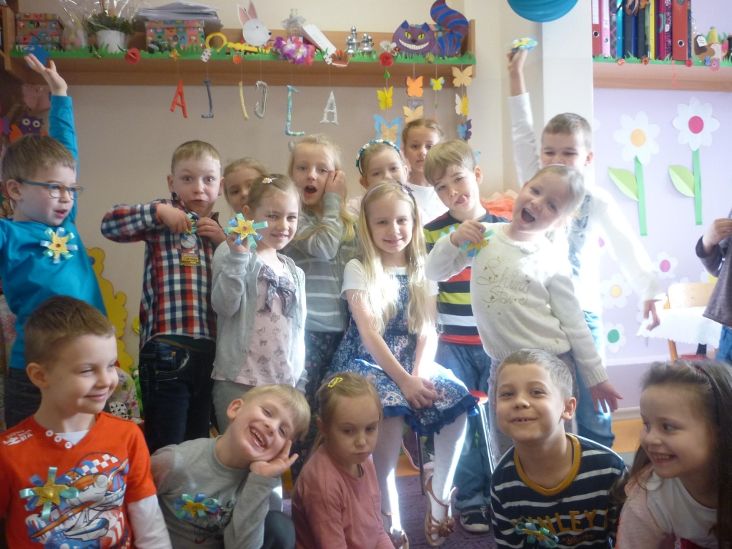 Kiedy tylko stopniały śniegi, gdy coraz częściej słońce pojawiało się na niebie a ptaki zwiastowały nadejście wiosny… sala grupy 0a zamieniła się w Krainę Czarów. W naszej sali pojawiło się mnóstwo kolorowych kwiatów, pięknych motyli czy papierowych budzików. Zjawiły się też różne przedmioty, które przynieśliśmy z domu, jak stare skrzynki i klucze, kwiaty z różnych tkanin, piękne materiałowe napisy, ogromne zwierciadło i urocze buteleczki z etykietką: Wypij mnie!”. Nie zabrakło również postaci białego królika, Kota Dziwaka oraz Alicji zerkającej na nasza salę zza okna. Inspiracją, bowiem były przygody „Alicji w Krainie Czarów” Lewis Carroll – angielskiej książki, spisanej w roku 1864.