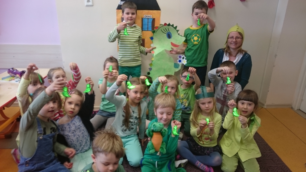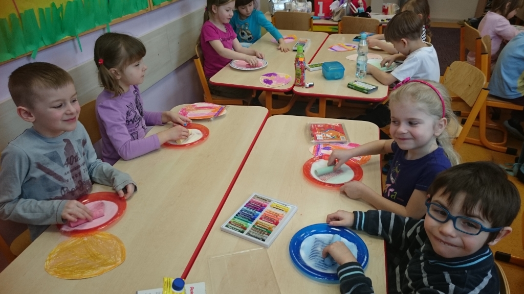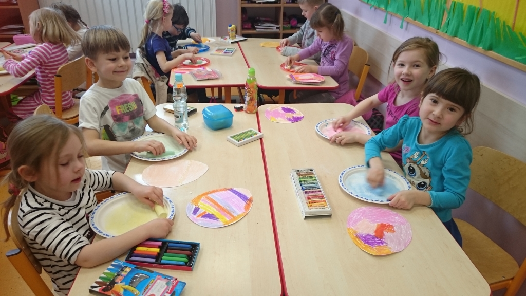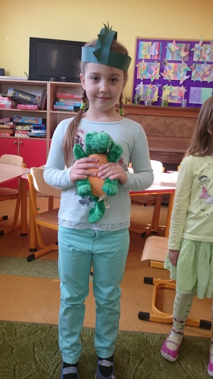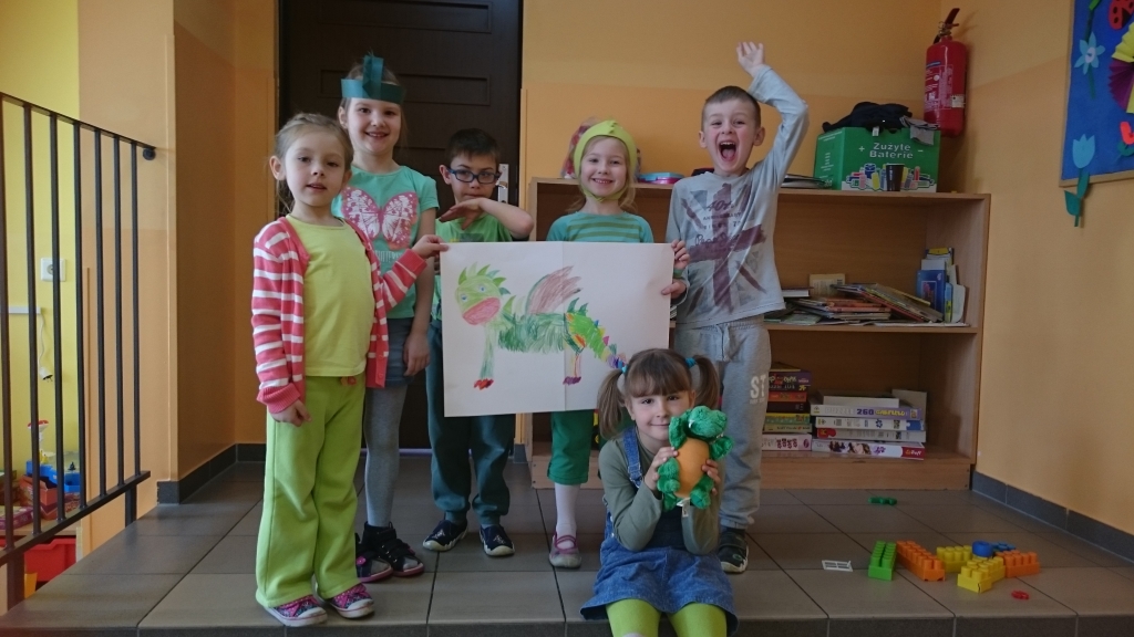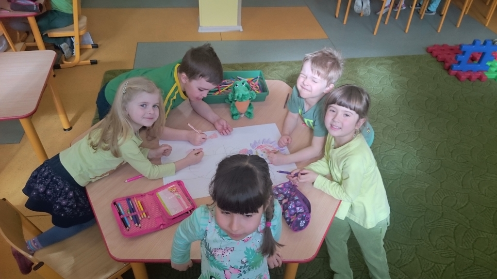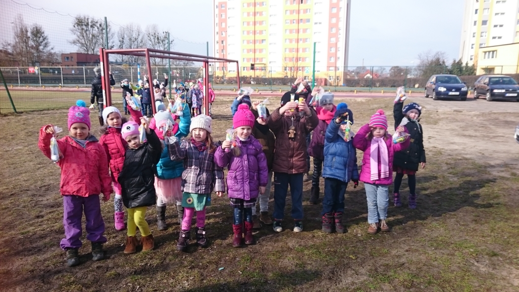Dzieci z naszego oddziału przedszkolnego 20 marca 2015r. przywitały Panią Wiosnę. Tego dnia wszystkie przedszkolaki założyły ubrania w jej ulubionym kolorze zielonym. Pamiętaliśmy także o zrobieniu wiosennych ozdób na okna, aby jak najwięcej wiosennego nastroju zagościło w naszych salach. Następnie rozpoczęliśmy wielkie powitanie. Na początku przypomnieliśmy sobie o najważniejszych oznakach zwiastujących przyjście Wiosny. Opowiedzieliśmy sobie o powracających ptakach a nawet rozwiązywaliśmy łamigłówki matematyczne. Na końcu wyszliśmy na szkolne boisko, żeby wziąć udział w Przedszkolnej Olimpiadzie Sportowej. Tam biegaliśmy, skakaliśmy i nawet rzucaliśmy piłkami do celu. Po wielu ruchowych konkurencjach udało nam się zdobyć Puchary Pani Wiosny.