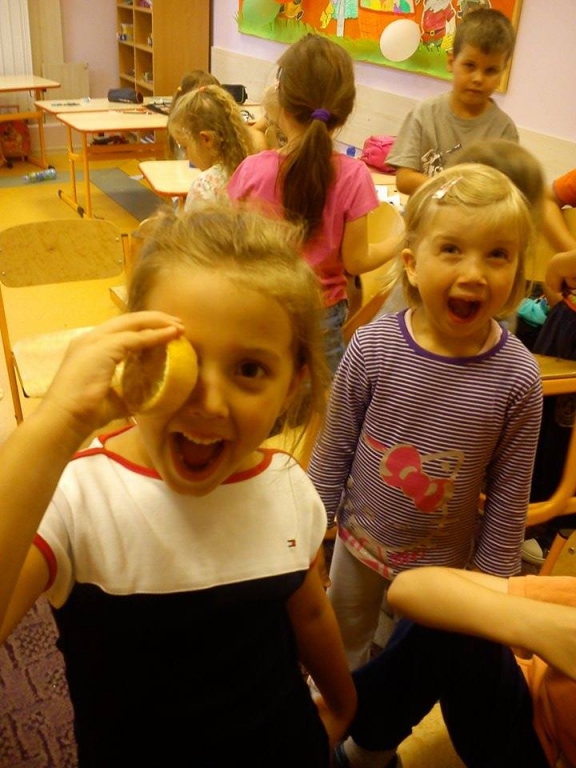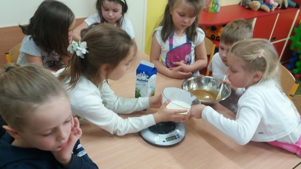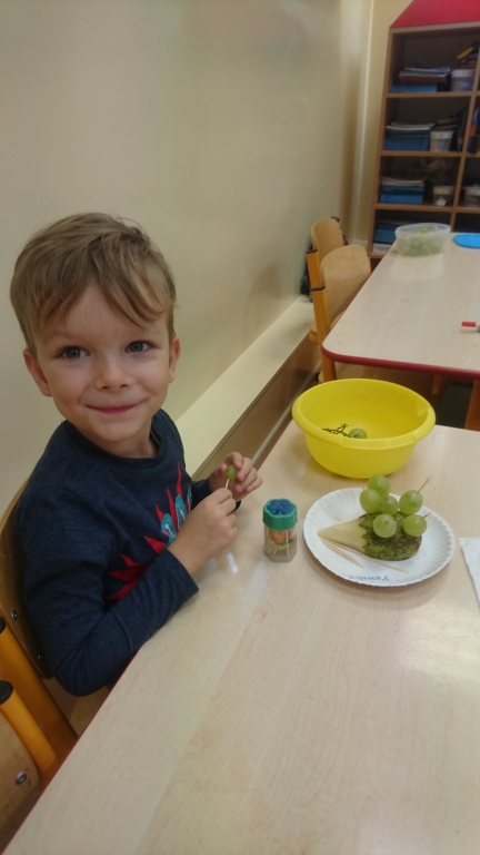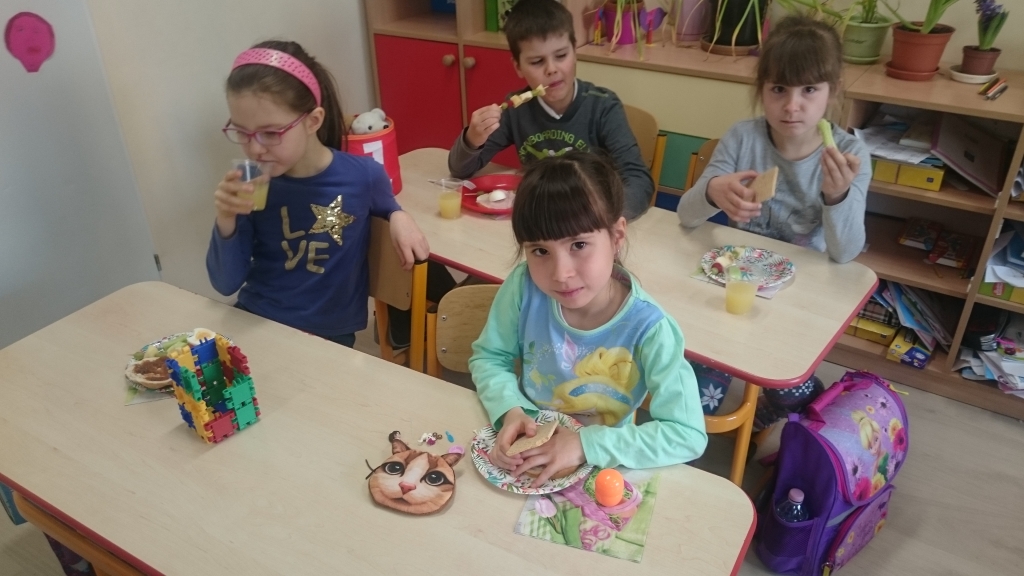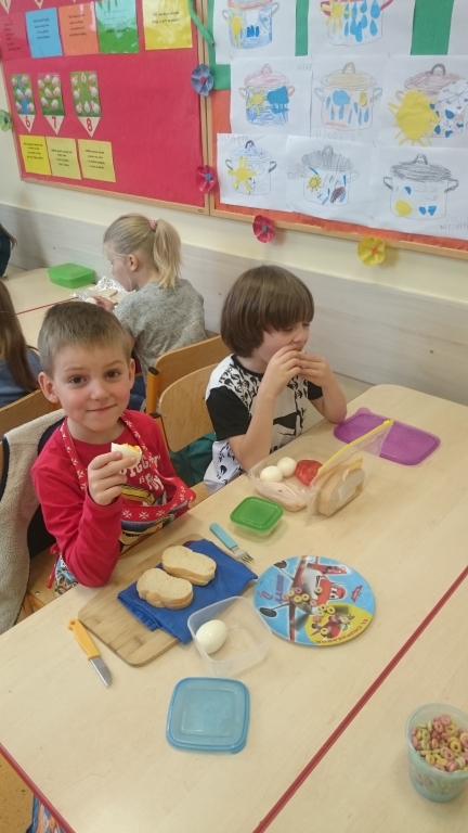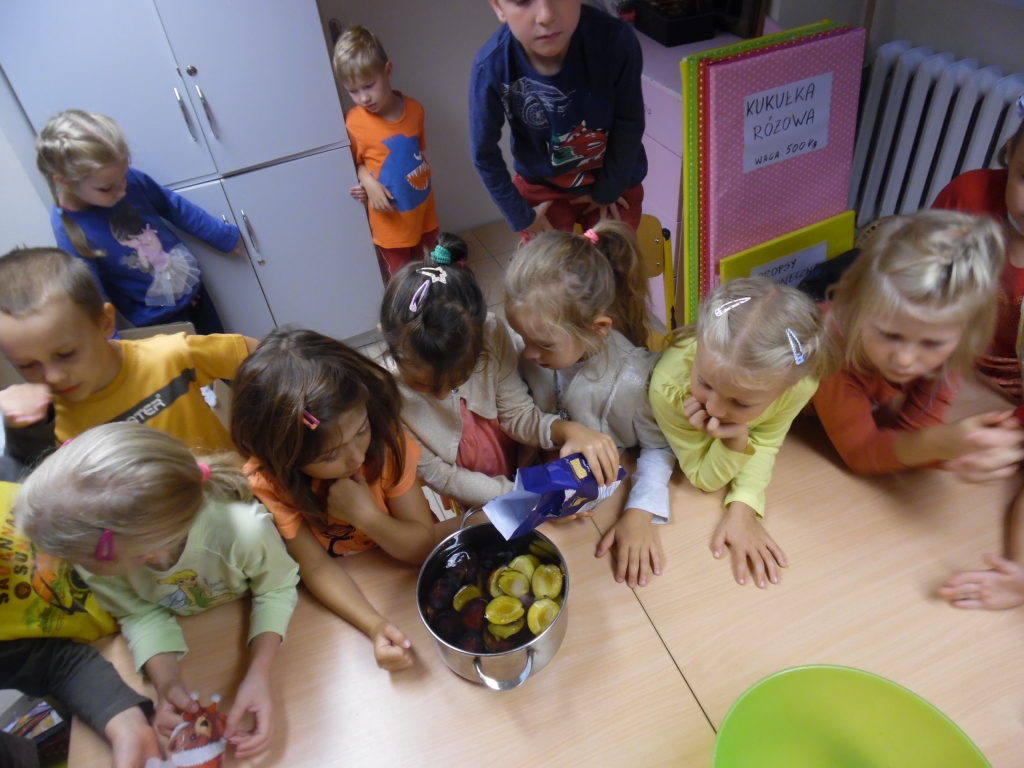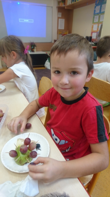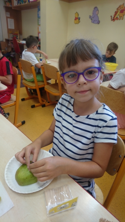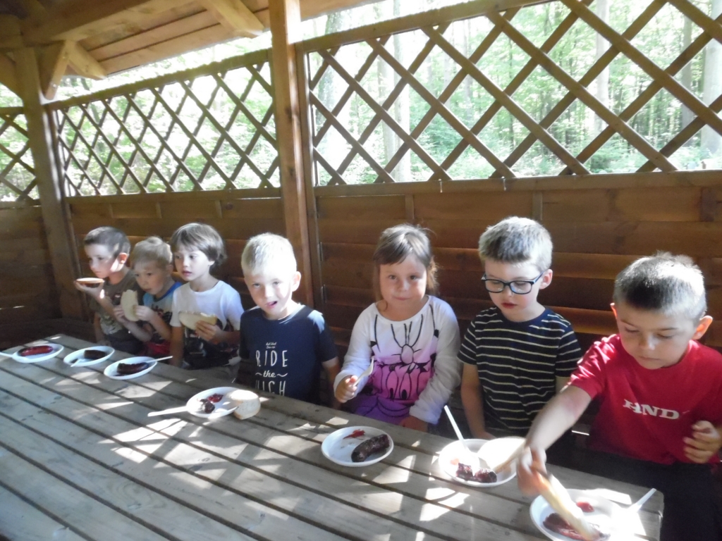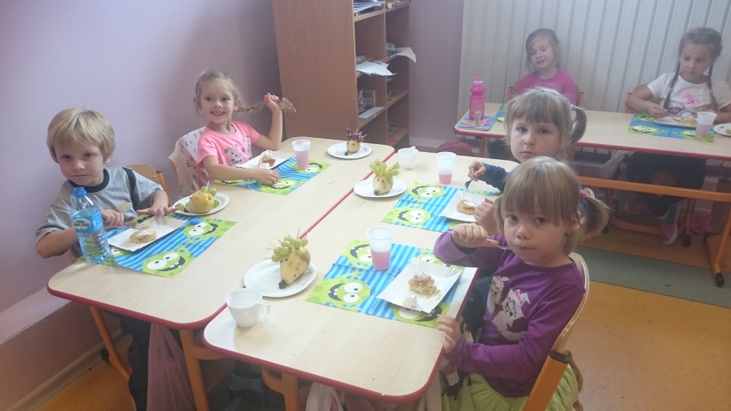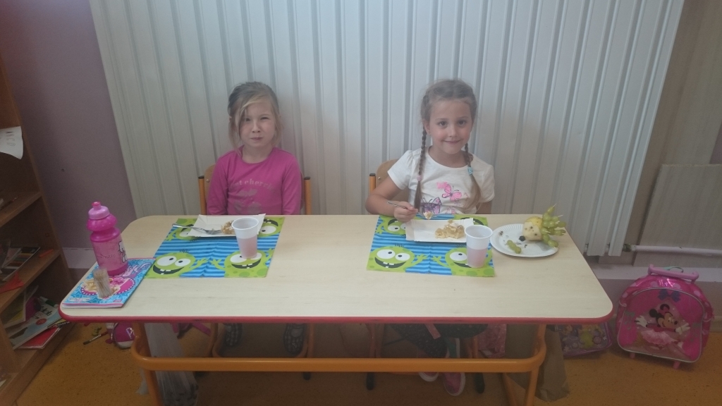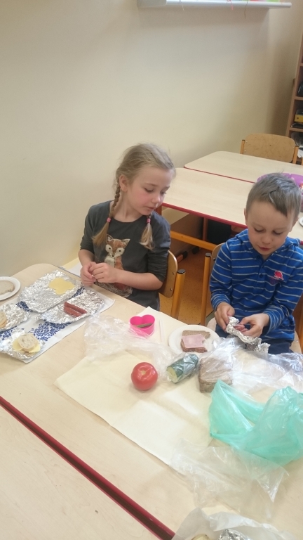 Kiedy mieliśmy już potrzebne owoce, samodzielnie kroiliśmy i przyrządziliśmy sałatkę owocową przestrzegając zasad bezpieczeństwa przy posługiwaniu się nożem. Aby zapobiec chaosowi w trakcie przygotowań zostaliśmy podzieleni na trzy grupy. Przyrządzanie sałatek dało nam wiele satysfakcji jednocześnie uświadamiając jak ważną rolę odgrywają witaminy w właściwym funkcjonowaniu organizmu. Efektem końcowym wspólnej pracy było próbowanie i smakowanie własnych wyrobów.