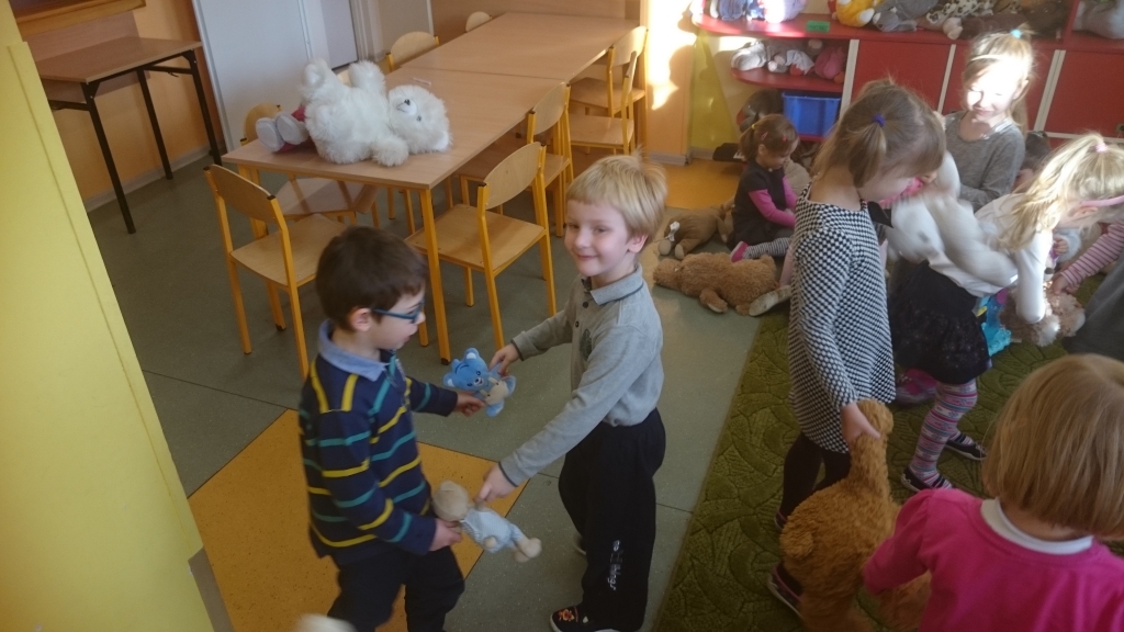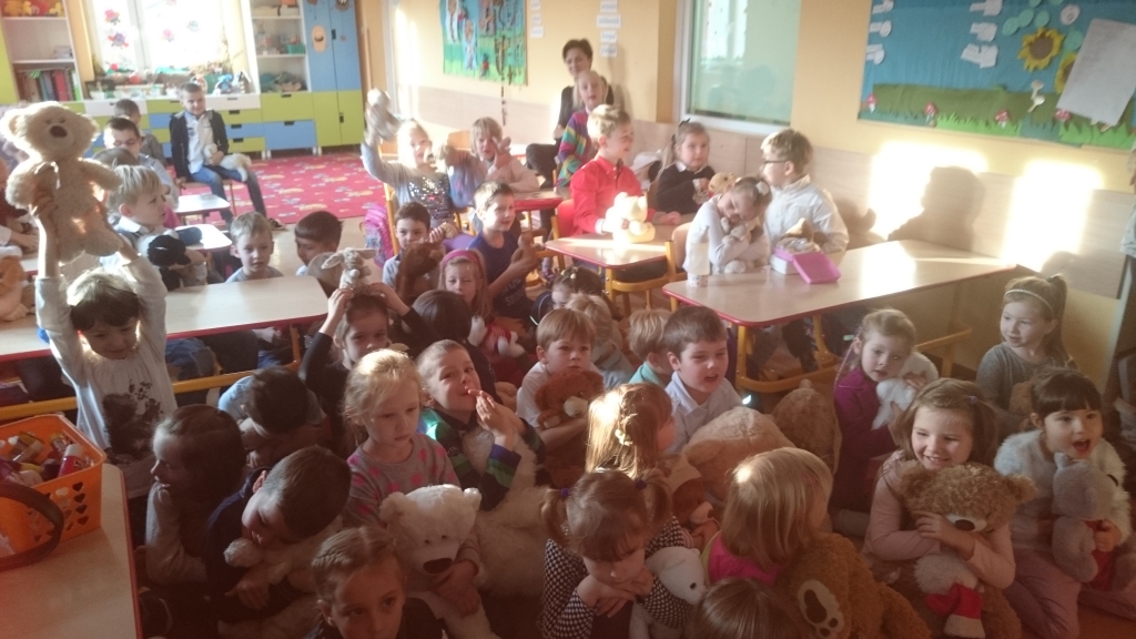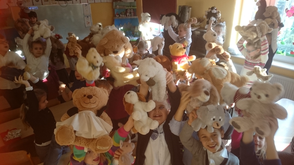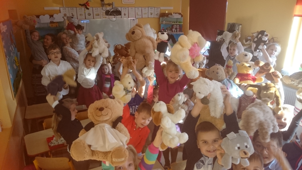 Duże, małe, kolorowe, puchate i mięciutkie. Pluszowe misie oraz inne przytulaki opanowały nasz oddział przedszkolny. Przybyły ze swoimi małymi właścicielami do dzieci w odziale przedszkolnym, żeby bawić się, świętować i uczyć.