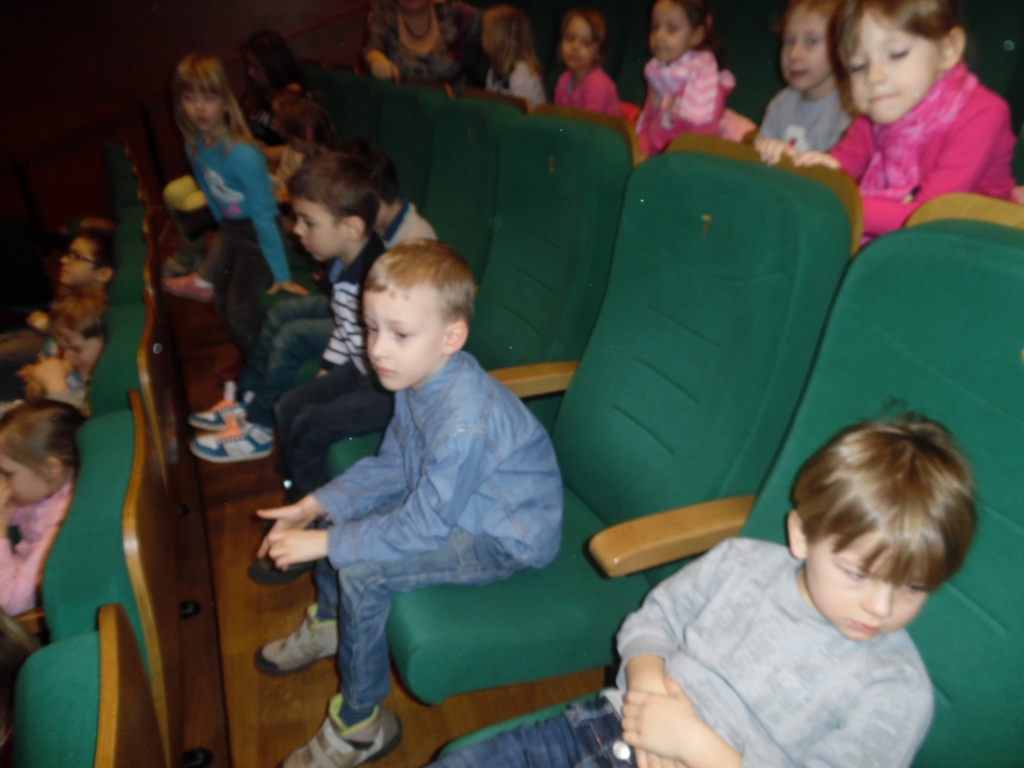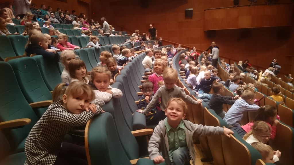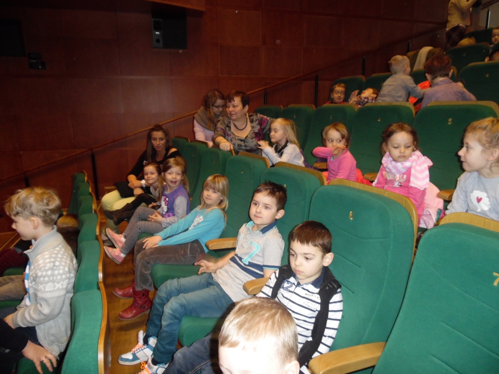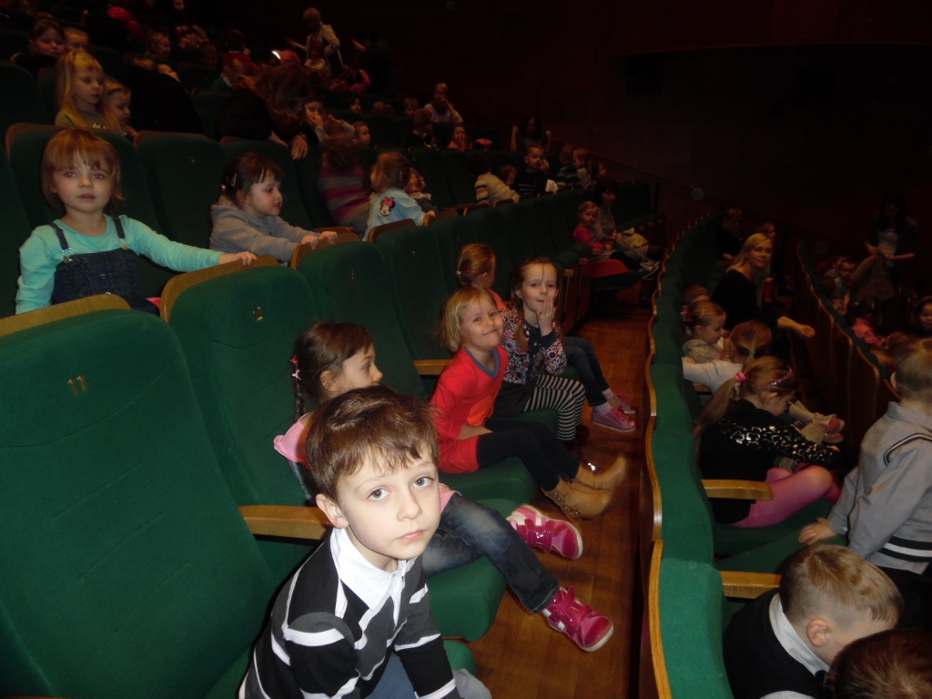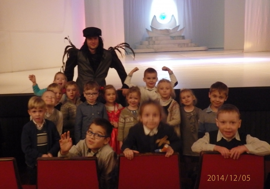 W grudniu zarówno dzieci z grupy A jak i z grupy B pojechały do Teatru Miejskiego w Gdyni na spektakl pt. ”Królowa Śniegu”. Historia Kay’a i Gerdy była bardzo wzruszająca, ale też przypomniała nam o tym jak ważna jest walka dobra ze złem. Piękna Królowa Śniegu obsypywała nas srebrnymi gwiazdkami, dotykaliśmy piór Pana i Pani Kruk, a Renifer przechodził blisko naszych miejsc. Po spektaklu dzieci z grupy A nieoczekiwanie spotkały aktora Szymona Sędrowskiego, który wcielił się w rolę kruka.
