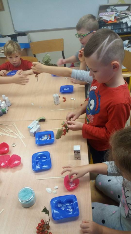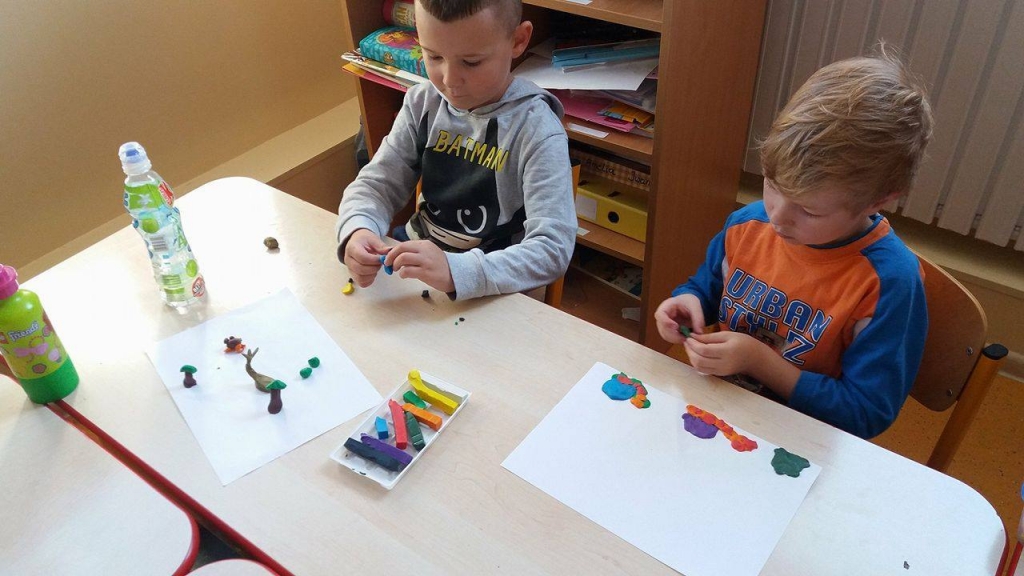 Nasi zerówkowicze wyczarowali z plasteliny jesienne ślimaki, jeże i wszystko to, co tylko kojarzy się z jesienią. W przyjemny sposób ćwiczyliśmy motorykę ręki