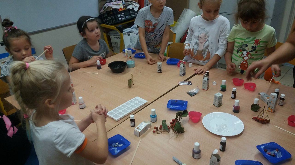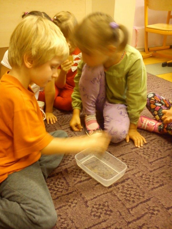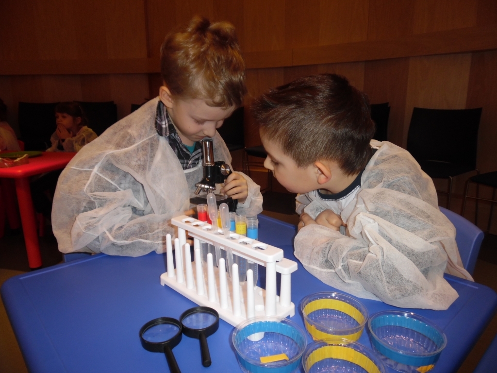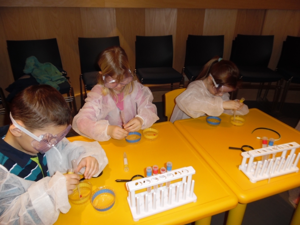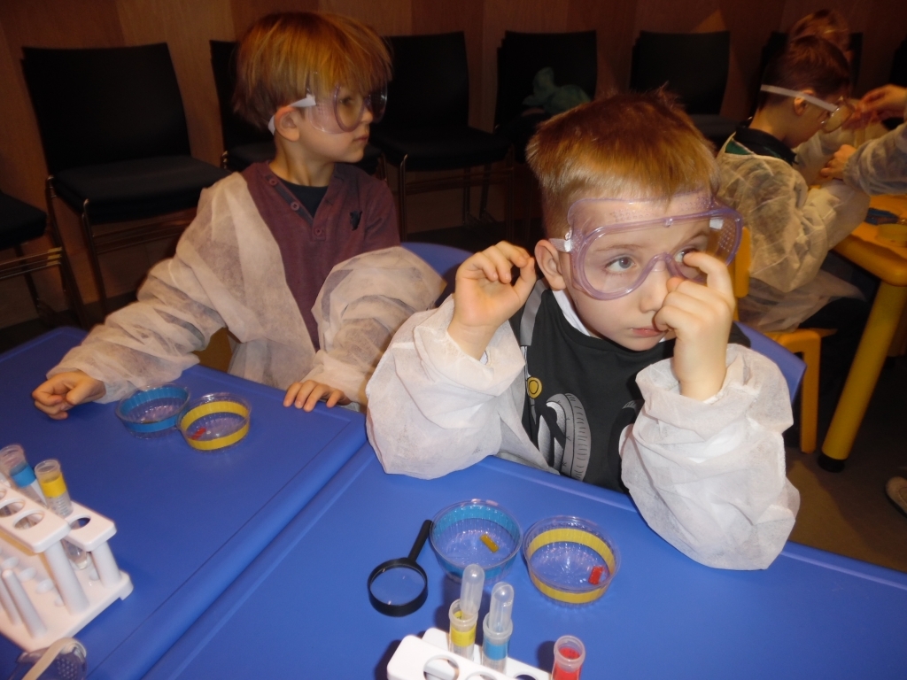 Dzieci uczestniczyły również w zajęciach pt. „Nie bój się robaczku”, podczas których dowiedziały się jak przebiega badanie naukowe oraz spróbowały przy pomocy laboratoryjnych narzędzi przeprowadzić własne badania.