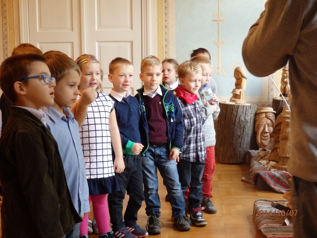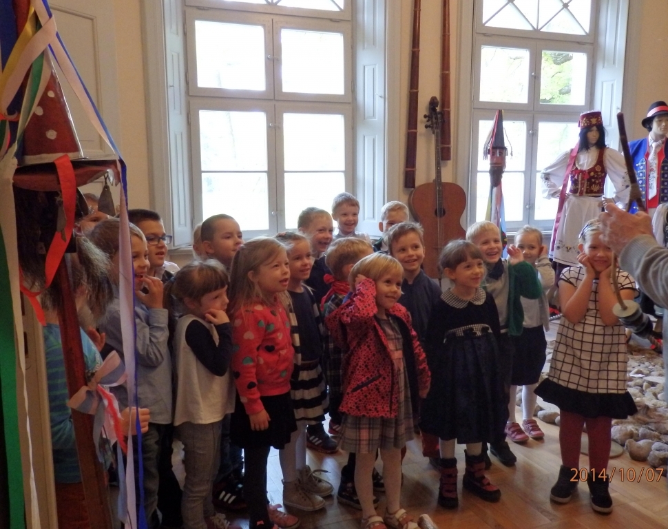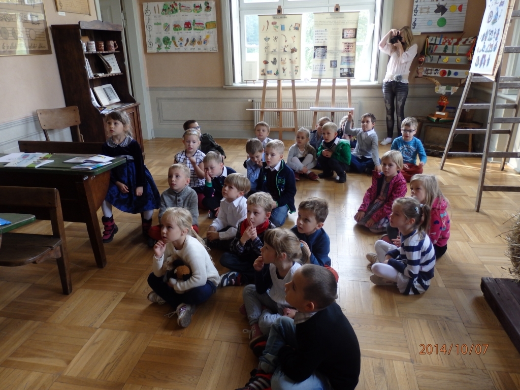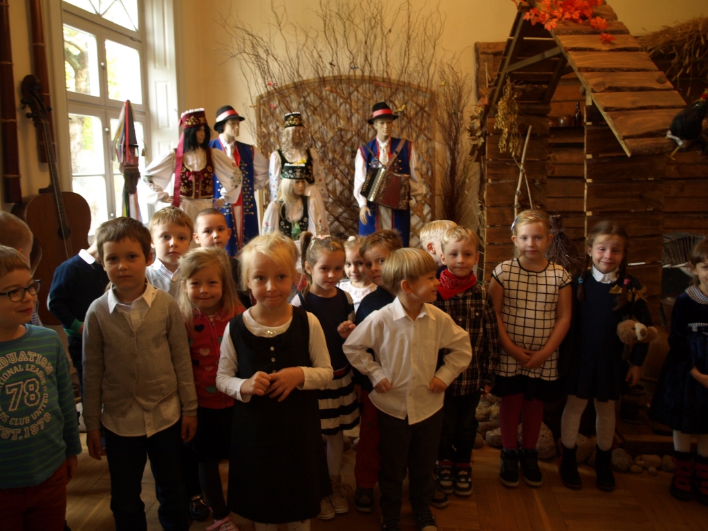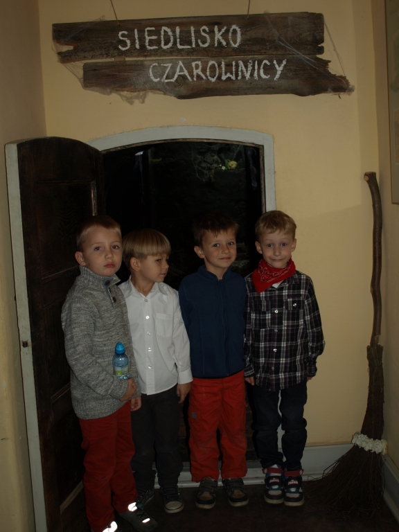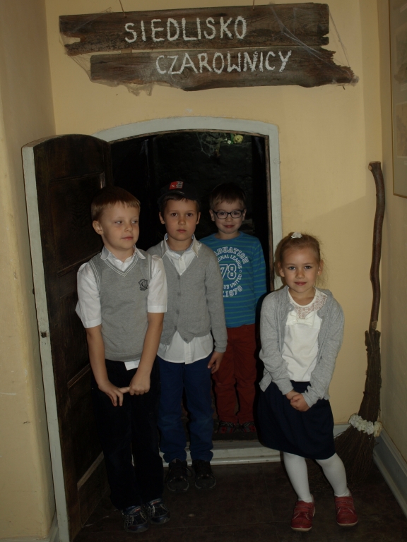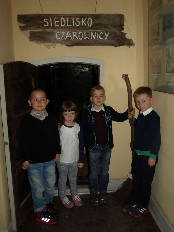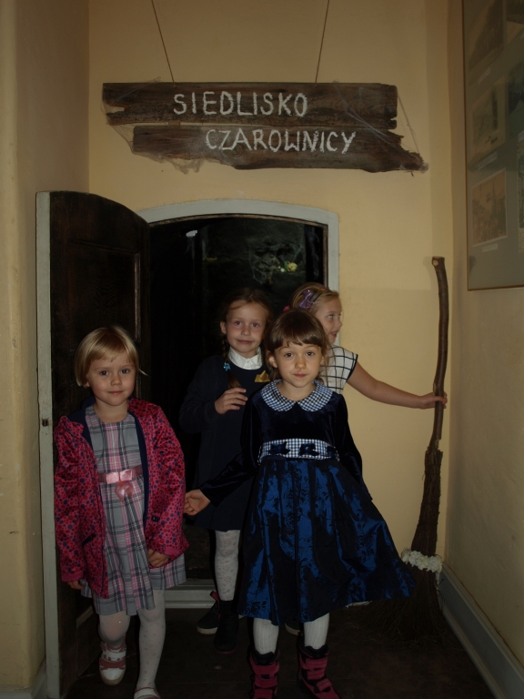 Pewnego październikowego poranka dzieci z grupy A i B wybrały się na spacer do Muzeum Piśmiennictwa i Muzyki Kaszubsko-Pomorskiej w Wejherowie. Miały okazje dowiedzieć się więcej o historii pałacu, poznaliśmy kaszubski alfabet i nauczć się kilku zwrotów w języku kaszubskim. Okazało się, że muzeum kryje w sobie wiele ciekawych komnat. Uczniowie zwiedzili salę z kaszubskimi instrumentami i naczyniami. Przyglądali się licznym eksponatom, takimi jak książki, fotografie, widokówki i stare maszyny pisarskie. Odwiedzili dawną salę lekcyjną a nawet upiorną komnatę czarownicy.