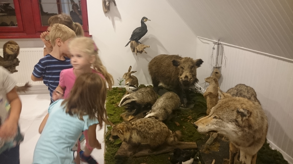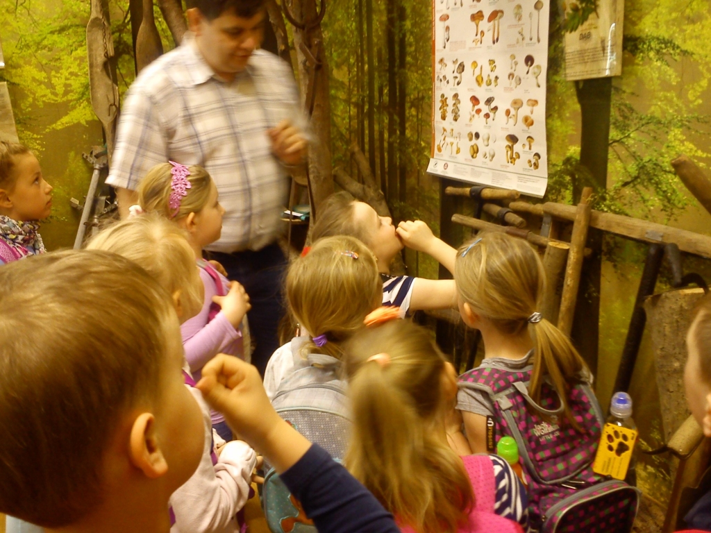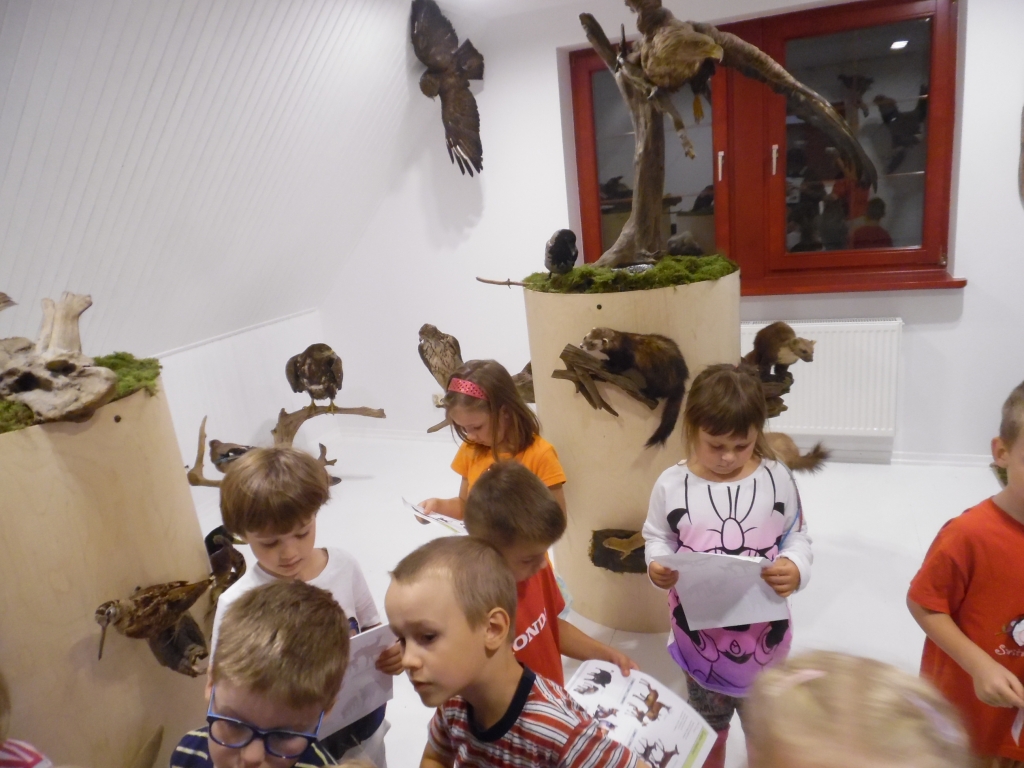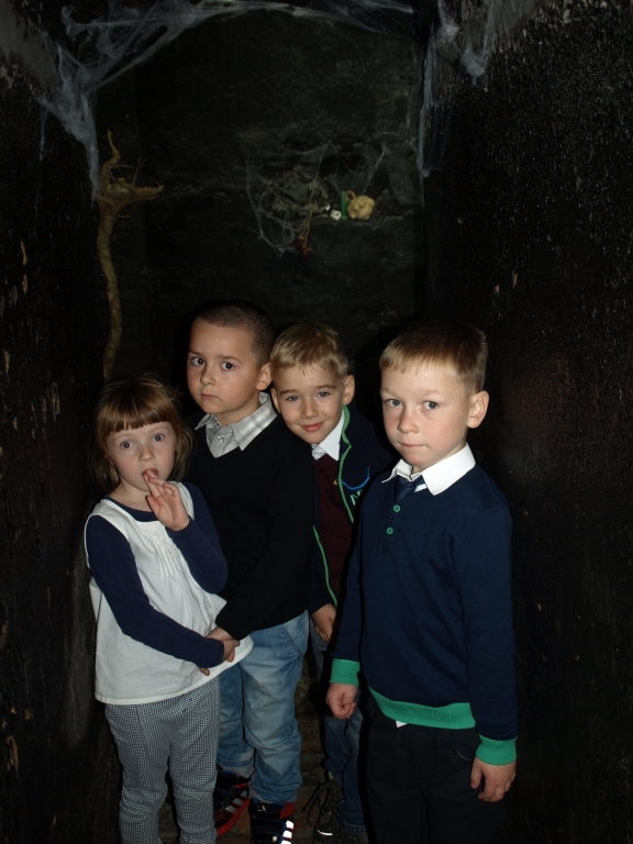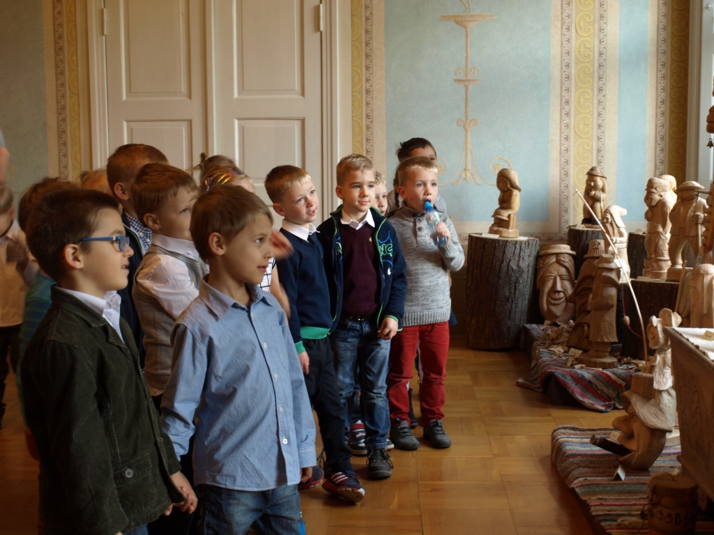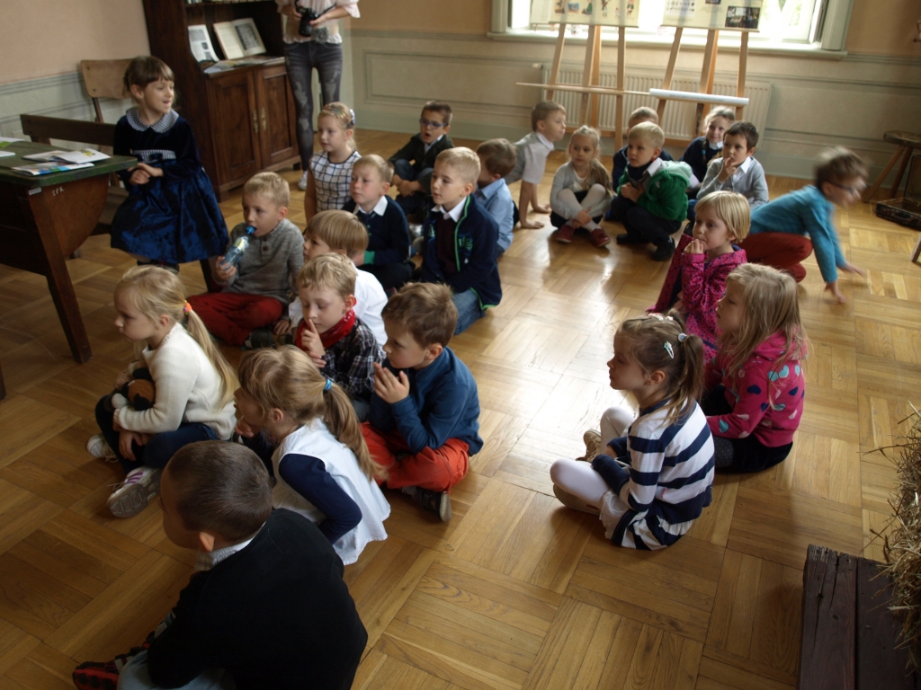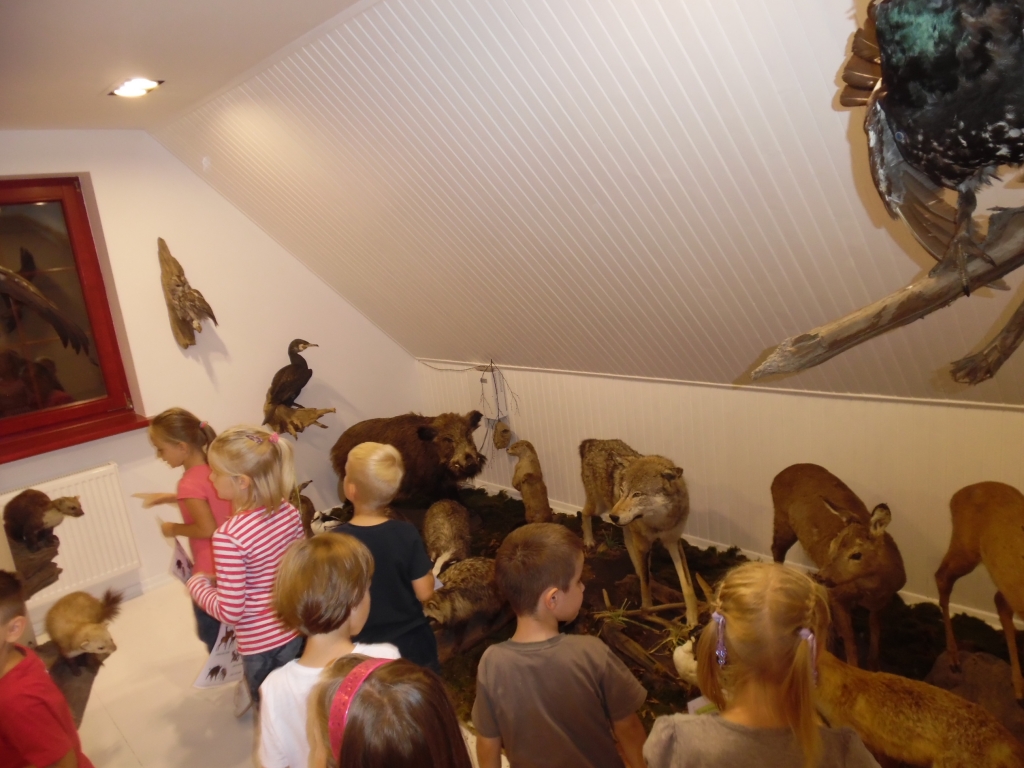 Pewnego październikowego poranka dzieci z grupy A i B wybrały się na spacer do Muzeum Piśmiennictwa i Muzyki Kaszubsko-Pomorskiej w Wejherowie. Miały okazje dowiedzieć się więcej o historii pałacu, poznaliśmy kaszubski alfabet i nauczć się kilku zwrotów w języku kaszubskim. Okazało się, że muzeum kryje w sobie wiele ciekawych komnat. Uczniowie zwiedzili salę z kaszubskimi instrumentami i naczyniami. Przyglądali się licznym eksponatom, takimi jak książki, fotografie, widokówki i stare maszyny pisarskie. Odwiedzili dawną salę lekcyjną a nawet upiorną komnatę czarownicy.