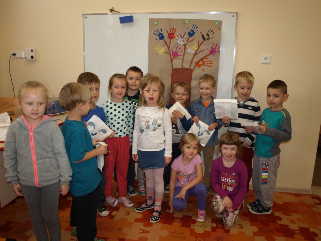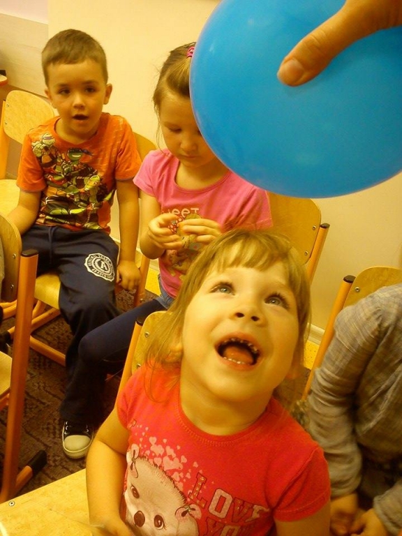 Spotkanie rozpoczęło się od prezentacji multimedialnej pt: „Chcę, aby moje dziecko mówiło poprawnie”, podczas której rodzice dowiedzieli się, jak przebiega rozwój mowy dziecka od pierwszych miesięcy do ukończenia 7 roku życia, jak należy prawidłowo oddychać oraz jak wspomagać rozwój mowy dziecka. Dużo radości zarówno dzieciom jak i rodzicom sprawiło „kołysanie misia”, dmuchanie na kolorowe piórka, wyścigi statków, a także przenoszenie za pomocą słomki kropek na biedronki, karmienie chrupiącymi kuleczkami, jedzenie paluszków bez pomocy rąk czy zlizywanie czekolady. Były też zabawy w „minki” oraz zabawy słuchowe.