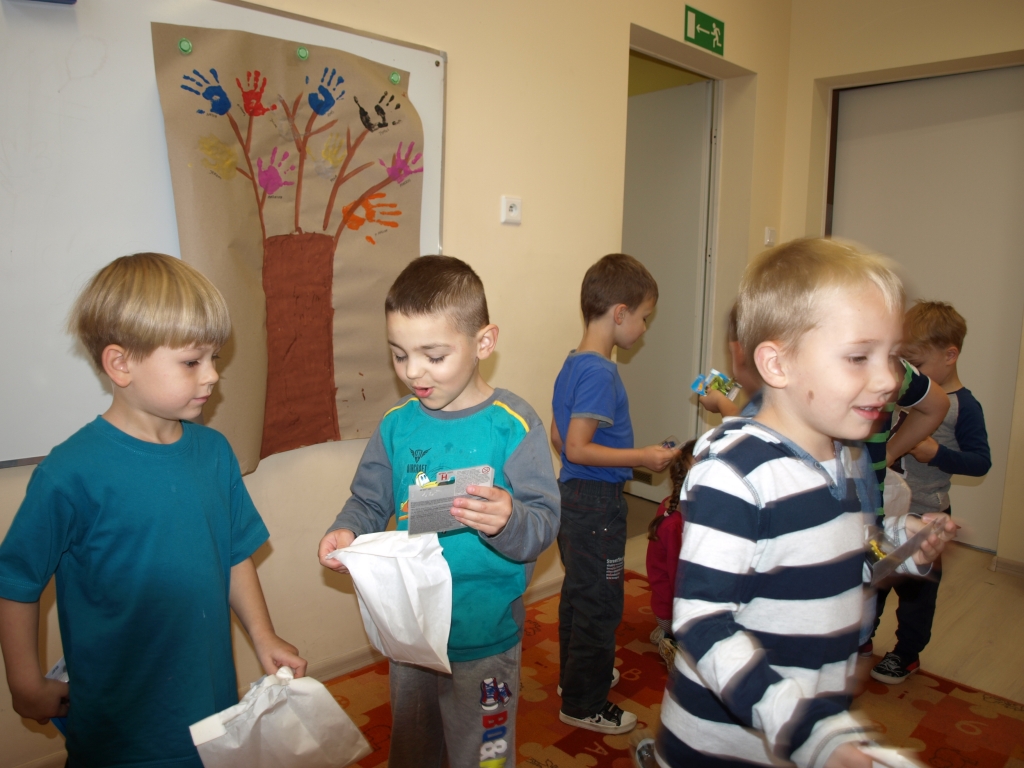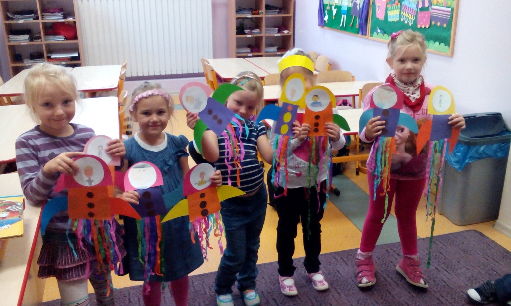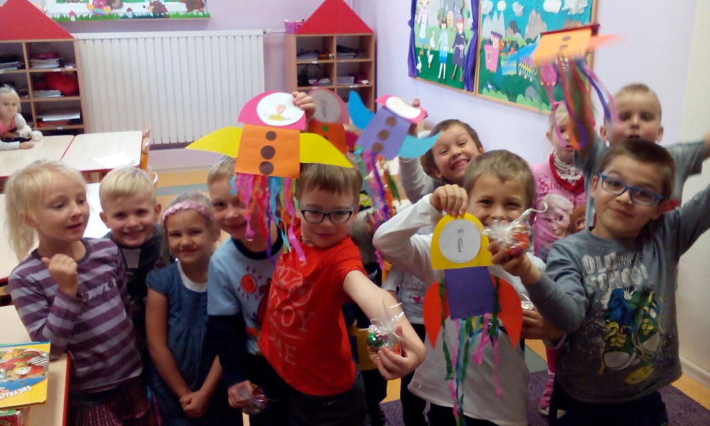 We wrześniu dziewczynki z grupy A przygotowały dla chłopców papierowe rakiety. Wykonały je z kolorowego papieru i krepy. W każdej rakiecie pojawił się również autoportret chłopaka. Statki kosmiczne szybko okazały się wspaniałym upominkiem… zwłaszcza do zabawy.
