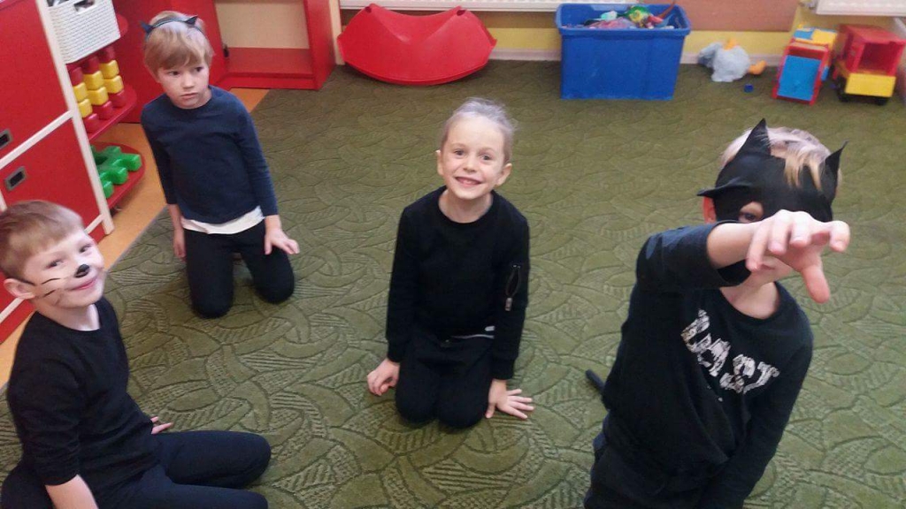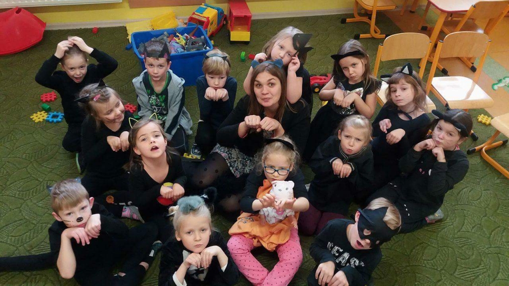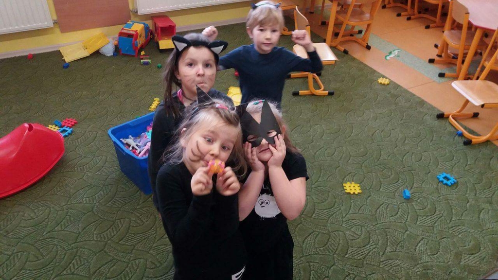 Tak Zerówkowicze świętowali dzień szczęśliwego czarnego kota :))) Stworzyliśmy również  swoje własne, bajkowe koty, kształtując przy tym motorykę ręki  🙂