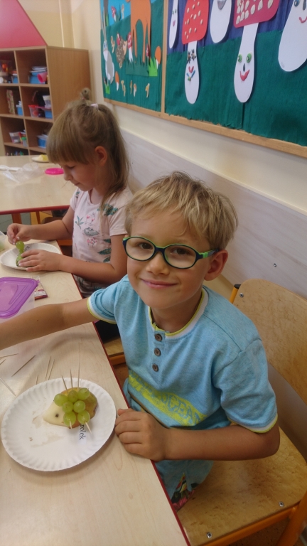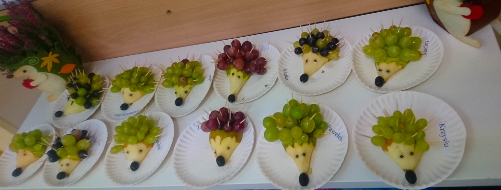 21 września 2018 r. w naszym przedszkolu obchodziliśmy Dzień Jeża. Od samego rana graliśmy w wiele przyrodniczych gier i rozwiązywaliśmy zagadki. Oglądaliśmy film przyrodniczy o życiu tego niezwykłego zwierzęcia i usłyszeliśmy wiele ciekawostek. Pod koniec zajęć tworzyliśmy przepiękne i smakowite owocowe jeże.