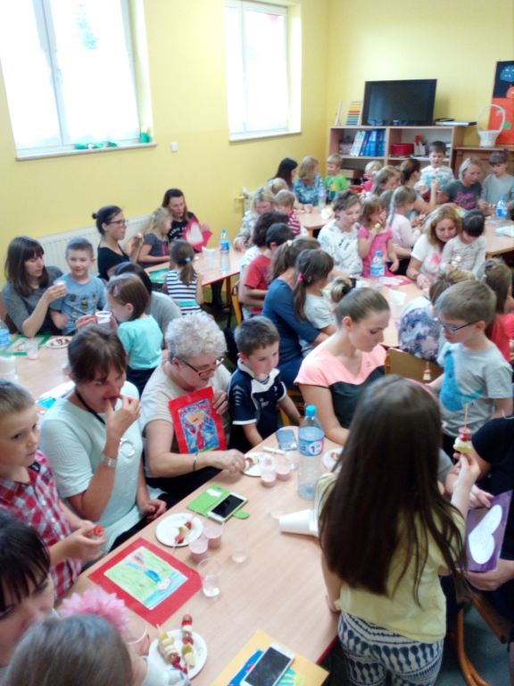 Wszyscy kochamy nasze mamy i wiemy jak wiele dla nas robią, dlatego postanowiliśmy umilić im ten szczególny dzień, jakim jest Dzień Matki, jeden z najpiękniejszych dni w roku. Poprosiliśmy, aby wszystkie mamy przyszły ubrane na sporotow. Nie ukrywamy, że widzieliśmy w oczach niektórych przerażenie co to będzie się działo:) Na początku wszystkie Panie zostały zaproszone na salę gimnastyczną, gdzie pod okiem instruktorki Moniki Rudnik przygotowały układ taneczny. W tym czasie dzieci zrobiły owocowe szaszłyki i koktajl owocowy. Gdy mamy były już gotowe zaprezentowały swoim dzieciom to, czego się nuczyły. Jak miło było popatrzeć na radosne twarze Pań i ich dzieci. Następnie  była przygotowana krótka prelekcja na temat makijażu, którą przeprowadziła pani Alicja Skwarło. Na koniec dzieci zaśpiewały piosenkę i każde powiedziało za co dziękuje  swojej mamie. To było bardzo miłe popoludnie.