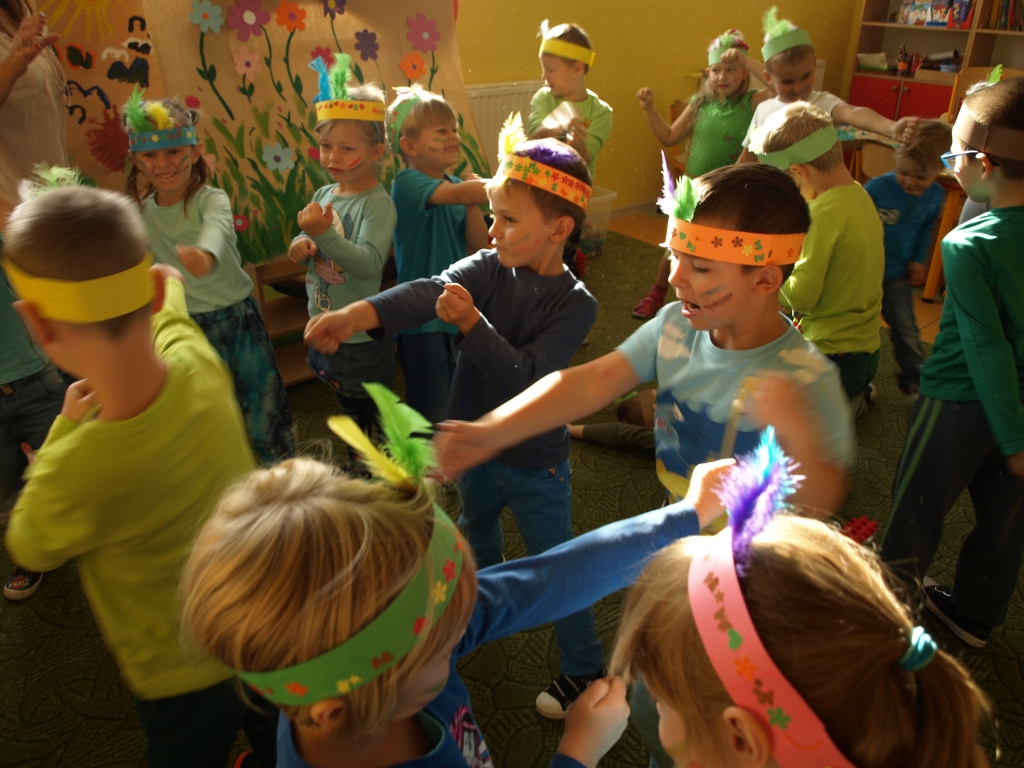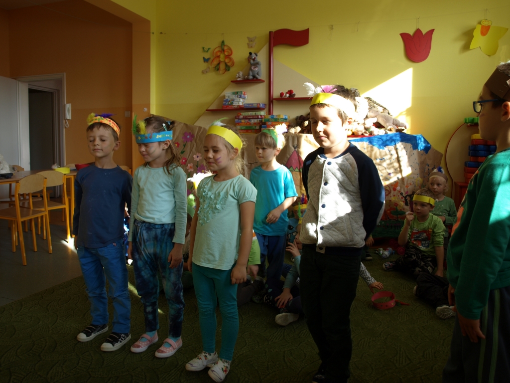 W dniu 29 września obchodziliśmy w naszych oddziałach przedszkolnych Ogólnopolski Dzień Przedszkolaka. Tego dnia urządziliśmy Dzień Indiański. Już od rana trwały gorące przygotowania. Dzieci poznały życie i kulturę Indian. Mieszkały w tipi, strzelały z łuku i procy, ujeżdżały konia. Końcowym punktem programu było otrzymanie indiańskiego imienia oraz pamiątek. Było dużo radości i wspaniałej zabawy.