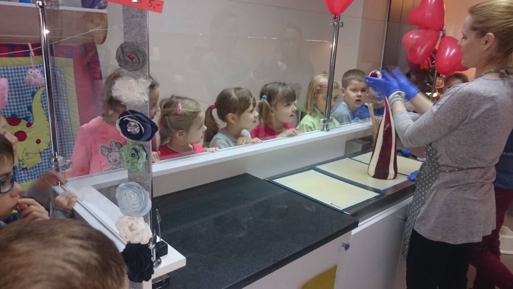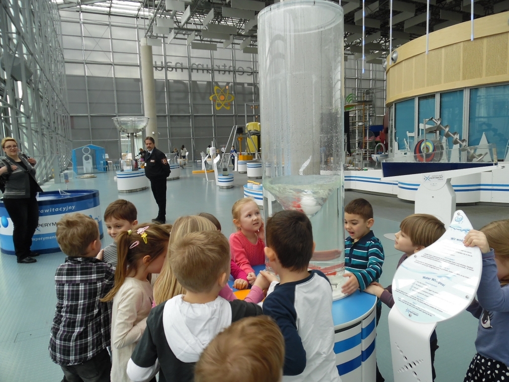 Szóstego marca dzieci z oddziału przedszkolnego 0A i 0B  wybrały się na wycieczkę do Centrum Nauki „Eksperyment” w Pomorskim Parku Naukowo-Technologicznym w Gdyni. Na miejscu czekała na nas cała masa zabawy. „Eksperyment” kusi tak wieloma atrakcjami, że trudno było się zdecydować od czego zacząć. W „Hydroświecie” dzieci miały możliwość zdobycia wiedzy hydrologicznej. Na wystawie, wcielając się w rolę inżynierów, konstruując i wprawiając w ruch skomplikowane mechanizmy, poznały działanie śluzy, tamy, śruby Archimedesa, a nawet miały szansę stworzyć dwumetrowy wir wodny. W części zwanej „Akcja: człowiek” dzieci dowiedziały się jak zbudowane jest ludzkie ciało, jak działają zmysły, mogły także przeprowadzić wirtualną operację. Galeria „Drzewo Życia” przybliżyła dzieciom świat przyrody. Mogły na własnej skórze doświadczyć trzęsienia ziemi, a także sprawdzić jak widzą zwierzęta. Interaktywne stanowiska pozwoliły dzieciom przyswoić naturę dźwięku, czy istotę elektryczności i magnetyzmu.
