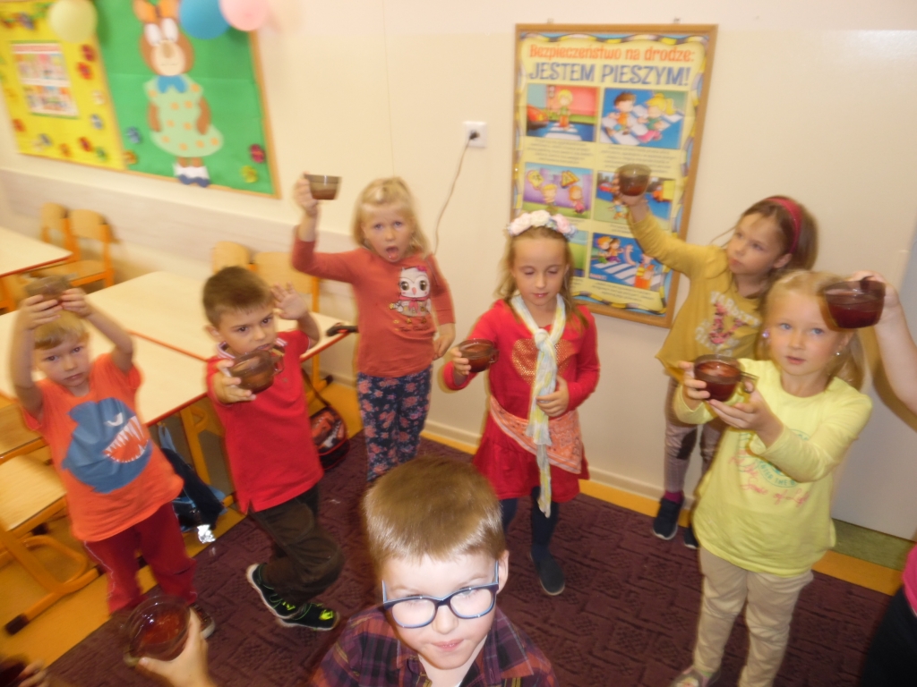 „Żyj nam babciu i dziadku póki komar i mucha morza nie wypiją, a ty mucho i komarze pij nam wodę powoli niech nam babcia i dziadek nażyją się dowoli”- tymi życzeniami przywitaliśmy nasze ukochane babcie i dziadków, kiedy przybyli do naszego przedszkola. Ten dzień, choć zimowy, był pełen uśmiechów, wzruszeń i radości. Przygotowaliśmy dla dziadków wiele niespodzianek. Recytowaliśmy wiersze i śpiewaliśmy piosenki. Przebraliśmy się w piękne stroje i z przejęciem odtwarzaliśmy nasze role w przestawieniu. Na koniec wręczyliśmy naszym gościom własnoręcznie wykonane upominki – kolorowe kwiatki ze zdjęciami. Po występie wszyscy zostaliśmy zaproszeni na przygotowany przez mamy słodki poczęstunek.