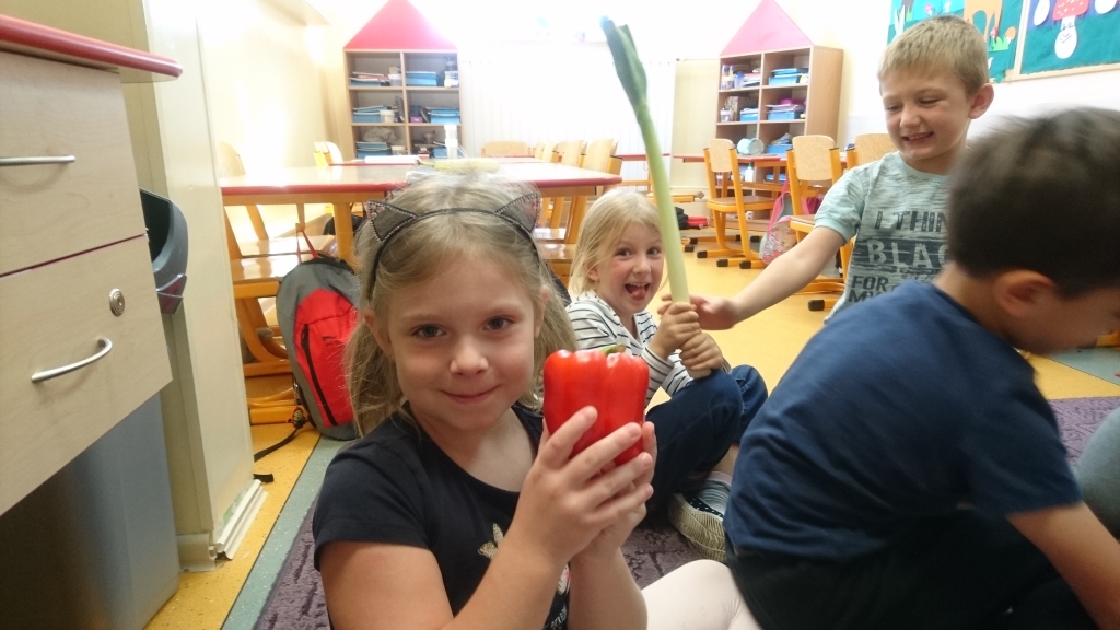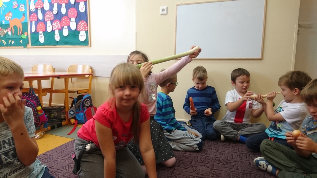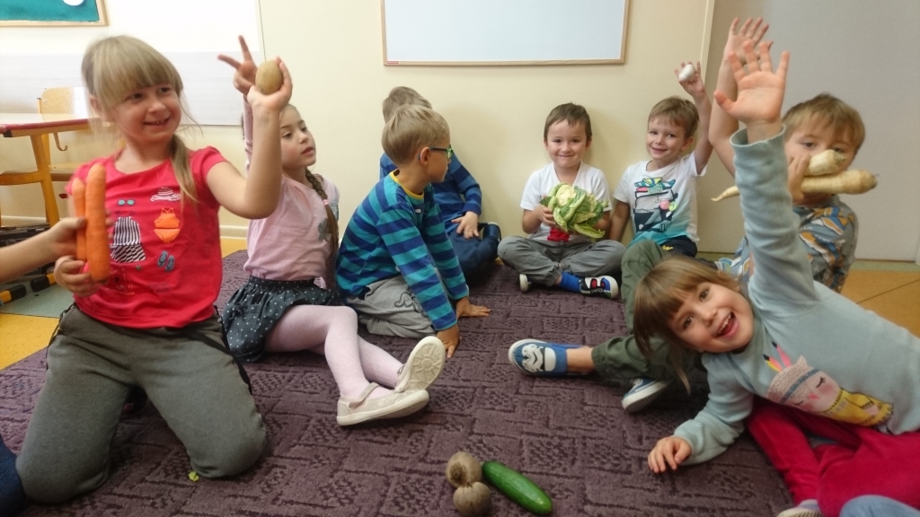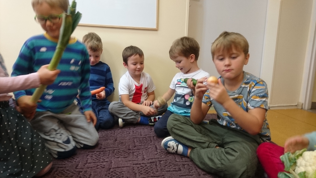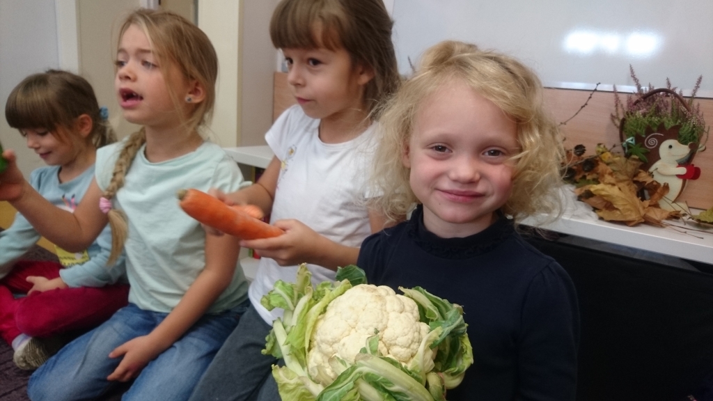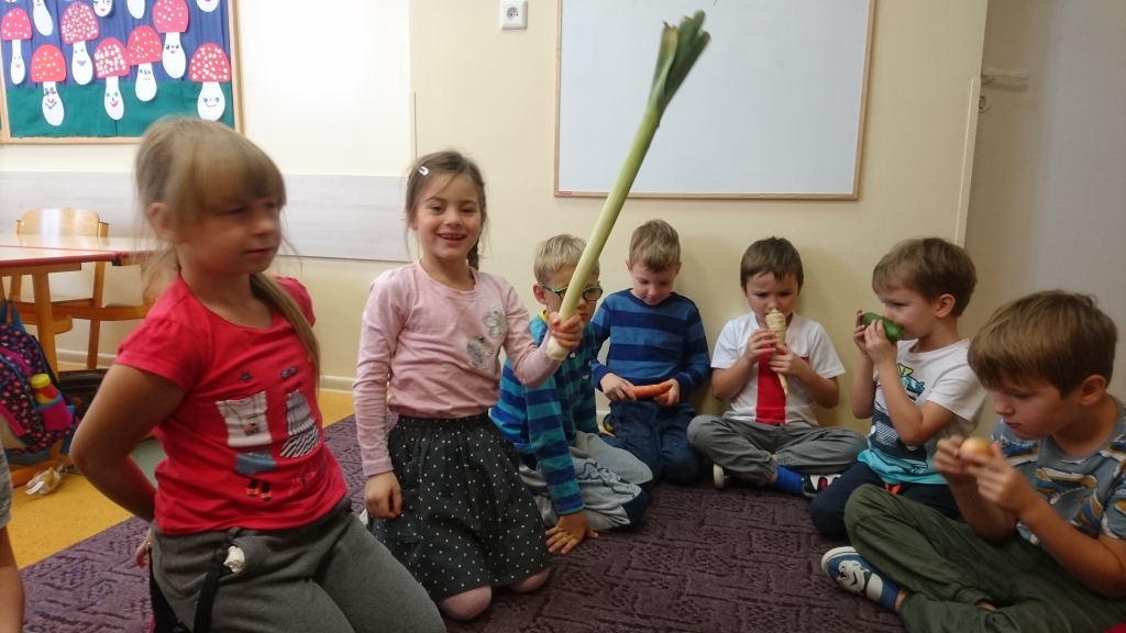 Na naszych zajęciach pojawił się kosz z warzywami. Z zaciekawieniem poznawaliśmy, oglądaliśmy i dotykaliśmy rożne warzywa. Przy okazji mogliśmy dowiedzieć się wielu jarzynowych ciekawostek.
