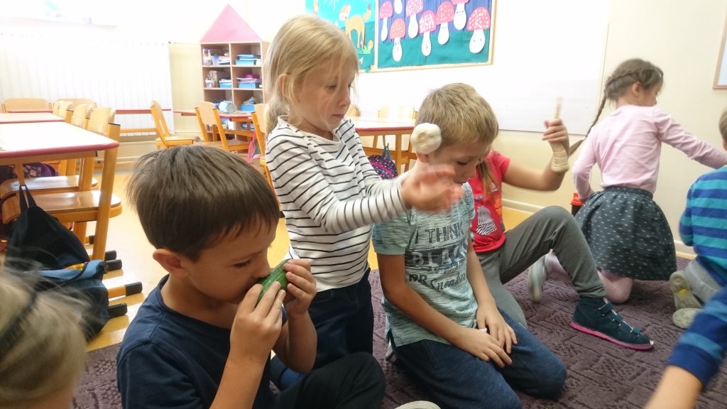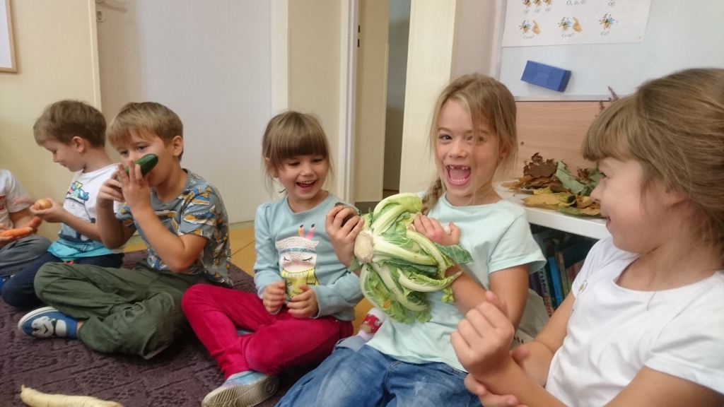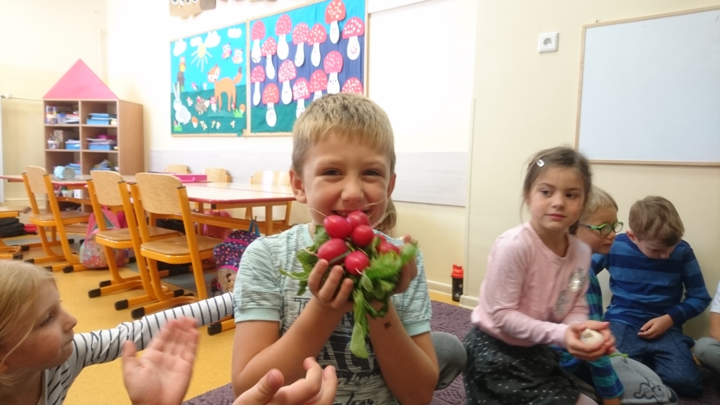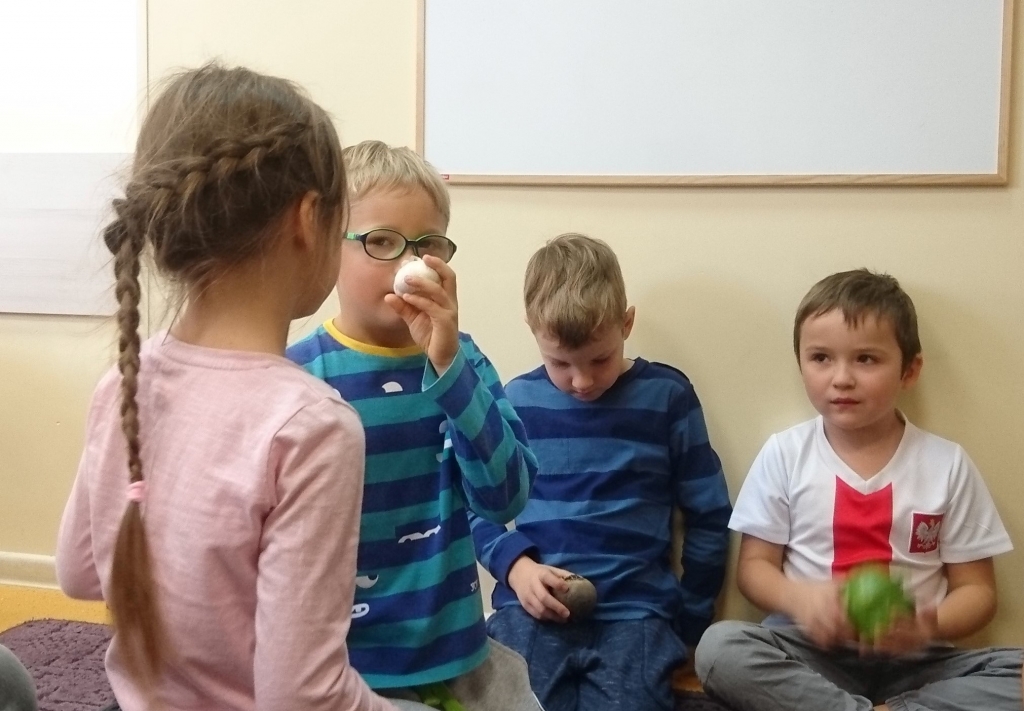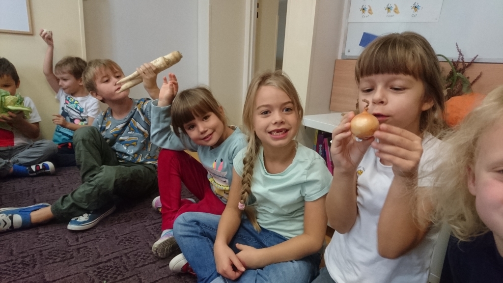 Na naszych zajęciach pojawił się kosz z warzywami. Z zaciekawieniem poznawaliśmy, oglądaliśmy i dotykaliśmy rożne warzywa. Przy okazji mogliśmy dowiedzieć się wielu jarzynowych ciekawostek.