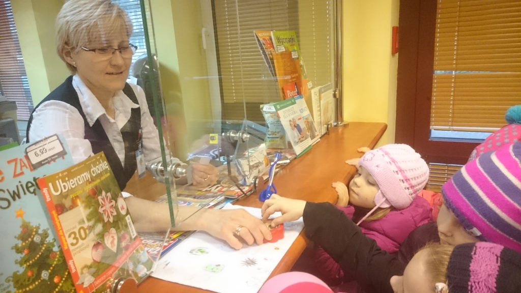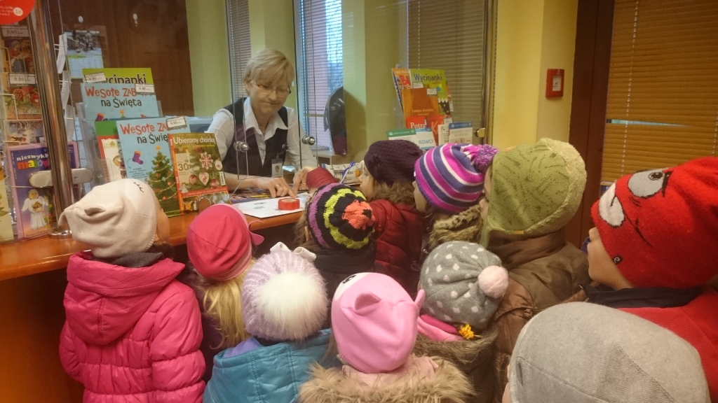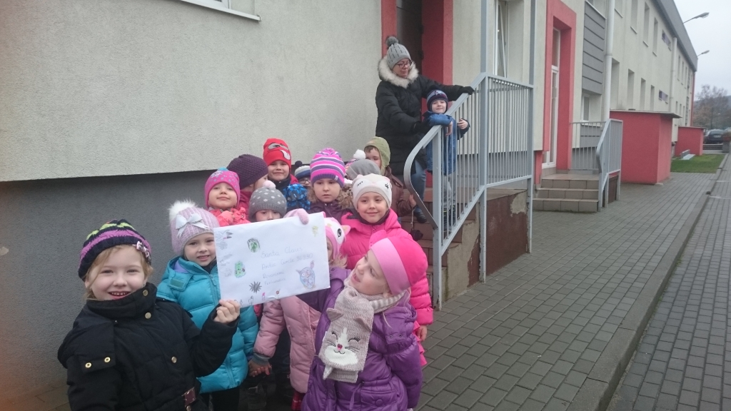 We wtorek, 12 grudnia, dzieci  z oddziału  przedszkolnego wybrały  się  na pobliską pocztę w celu wysłania listu do Gwiazdora.