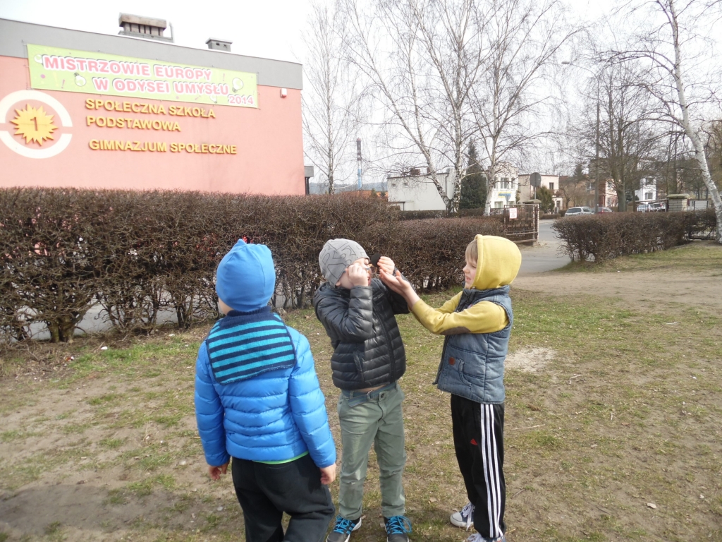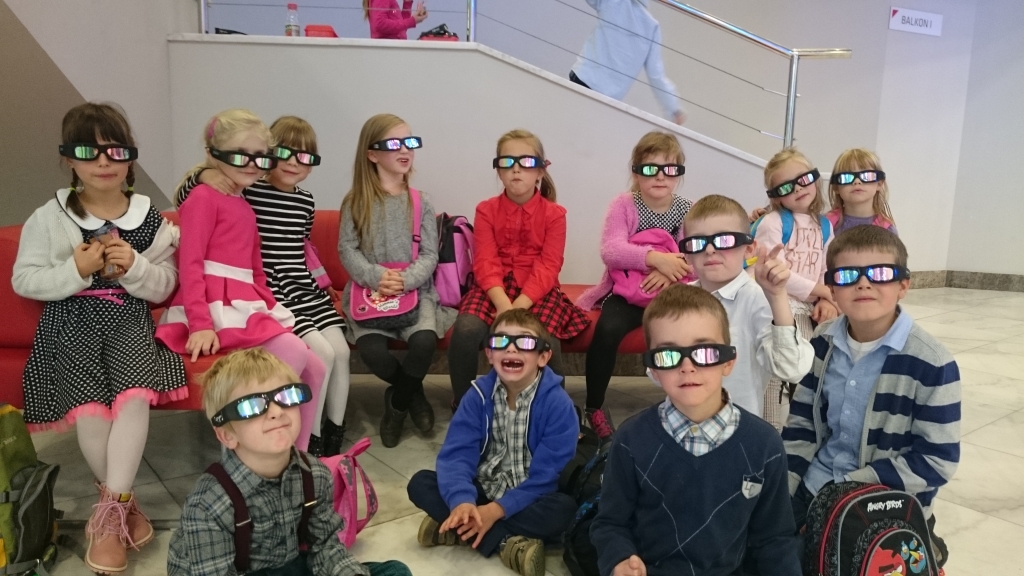 W dniu 20 marca 2015 dzieci z grupy 0A i 0B miały możliwość na żywo uczestniczyć w obserwacji  bardzo rzadko występującego zjawiska astronomicznego. Zaćmienie słońca, którego byliśmy świadkami wywołało duże zainteresowanie dzieci. Do obserwacji nie potrzebowaliśmy teleskopu ani żadnego profesjonalnego sprzętu, bo zjawisko było widoczne gołym okiem. Dzieci bardzo dobrze wiedziały, że nie wolno jednak patrzeć na Słońce bez ochrony. Dlatego też założyliśmy okulary słoneczne, mieliśmy przydymione szkiełko i płyty CD.