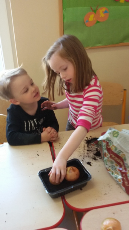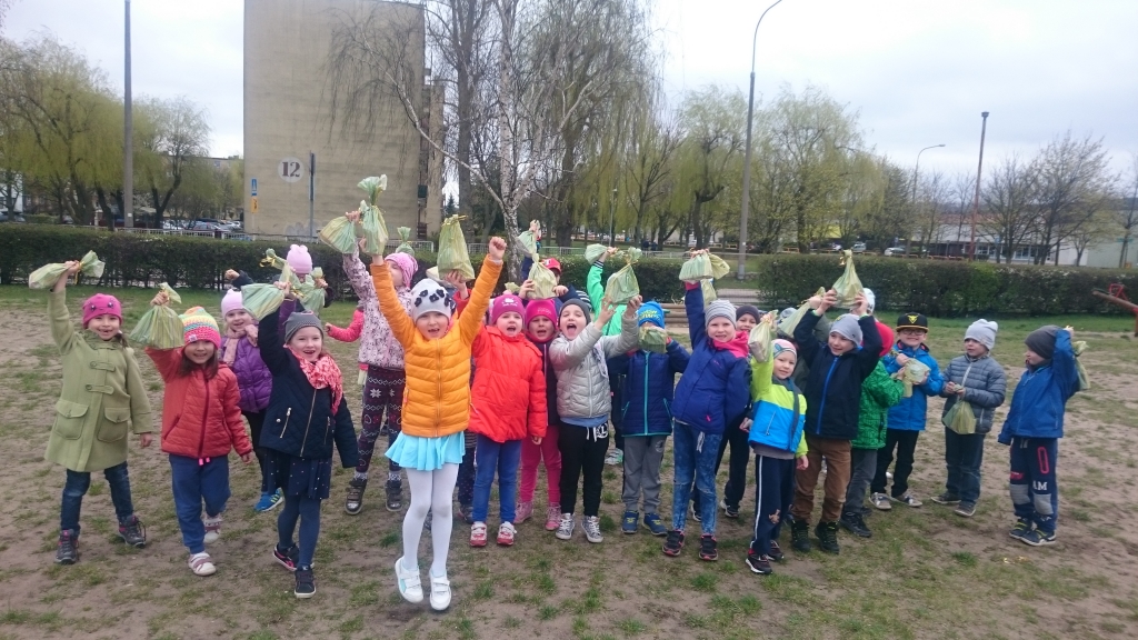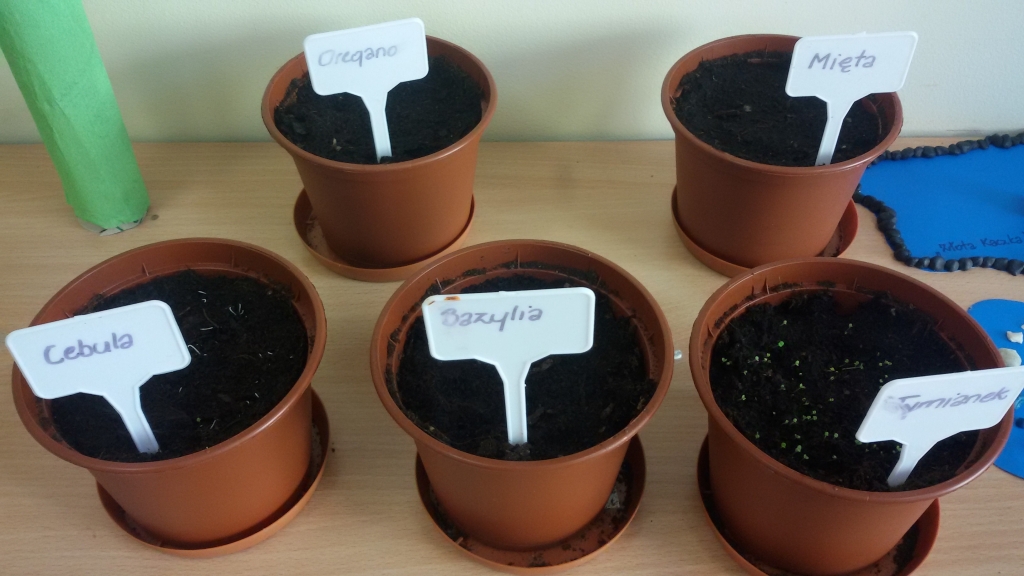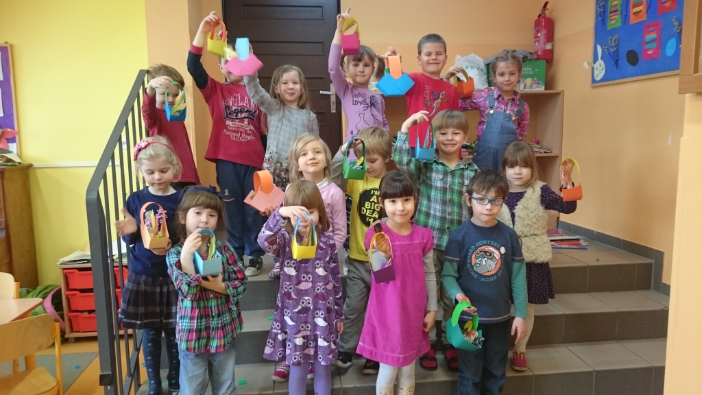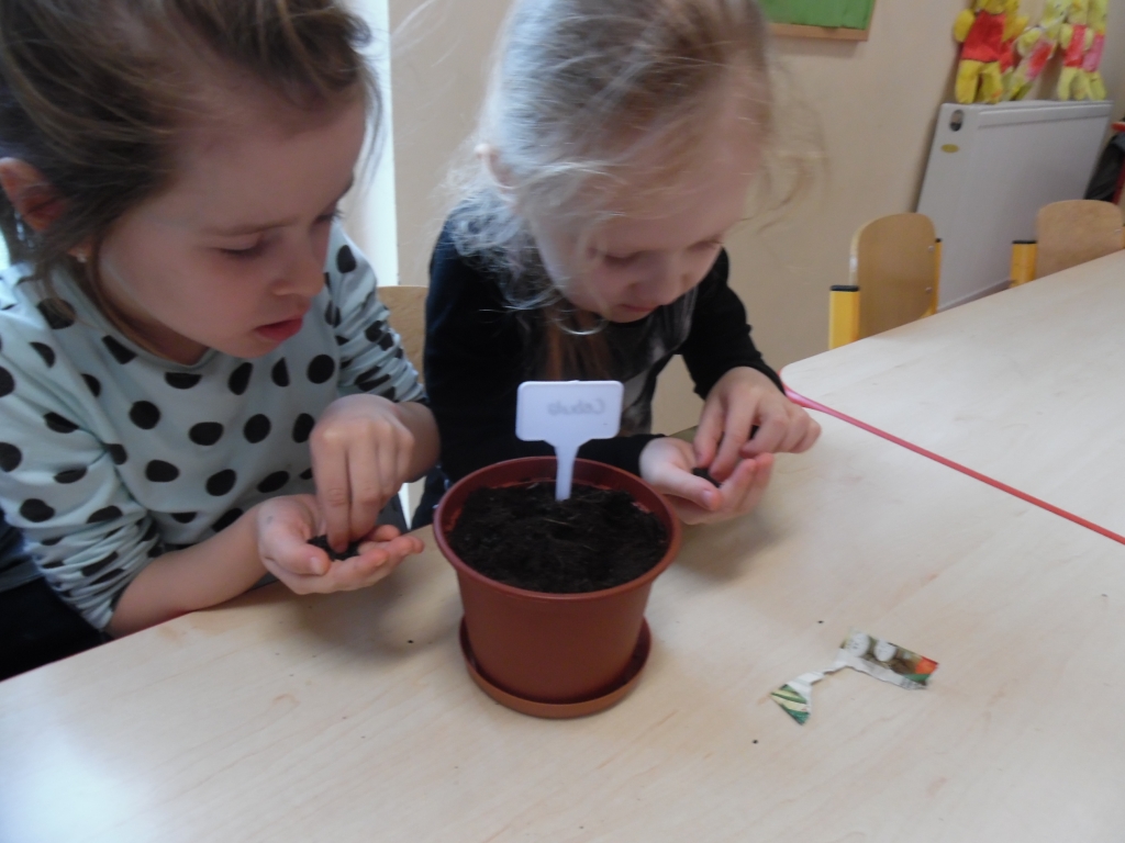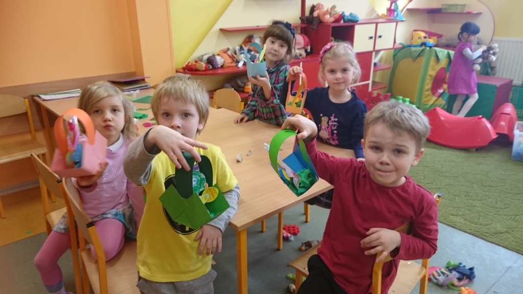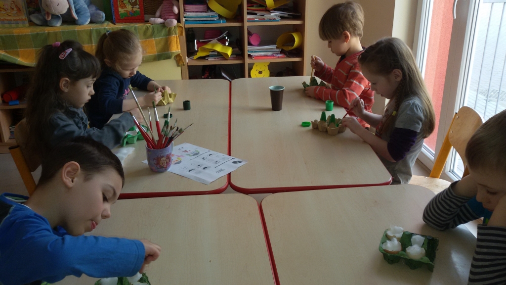 Aby w sali grupy 0B zrobiło się wiosennie, zielono i świątecznie, dzieci zasiały rzeżuchę we wcześniej przygotowanych przez siebie kolorowych wytłoczkach po jajkach. Pamiętały o dolewaniu wody, codziennie jej doglądały. Dumnie pokazywały paluszkiem i wołały „To moje, to moje!”  Przed Świętami Wielkanocnymi dzieci zabrały swoje „stroiki”, aby w domowym ciepełku rzeżucha mogła pięknie wzrastać.