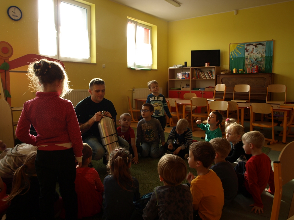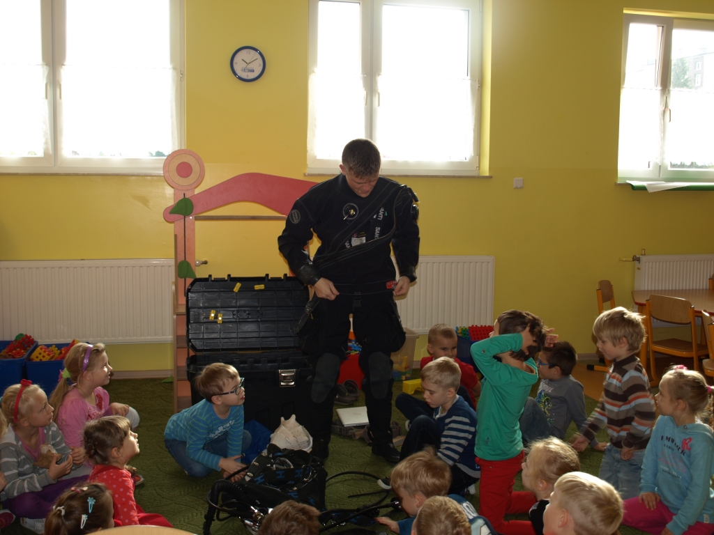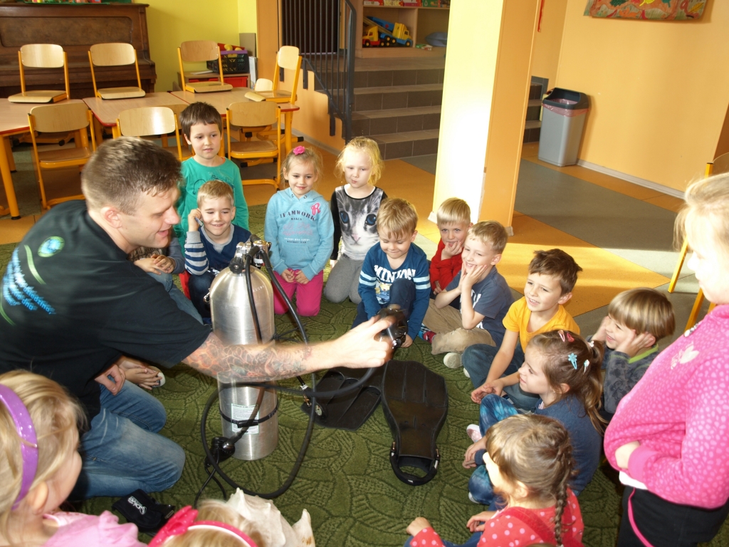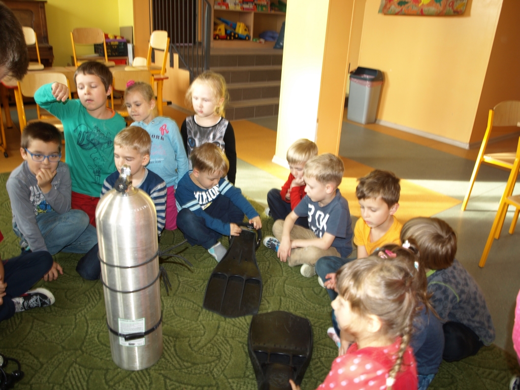 13 listopada nasz oddział przedszkolny odwiedził pan Tomasz – Tata Madzi, który opowiedział dzieciom o swojej pasji, czyli nurkowaniu. Pan Tomasz przekazał przedszkolakom dużo ciekawych historii dotyczących wypraw nurkowych oraz zademonstrował prawdziwy strój nurka. Dzieci mogły zobaczyć także film przedstawiający podwodny świat podczas jednej z wypraw nurkowych. Mnóstwo wrażeń i pozytywnych emocji dostarczyło przedszkolakom to spotkanie.
