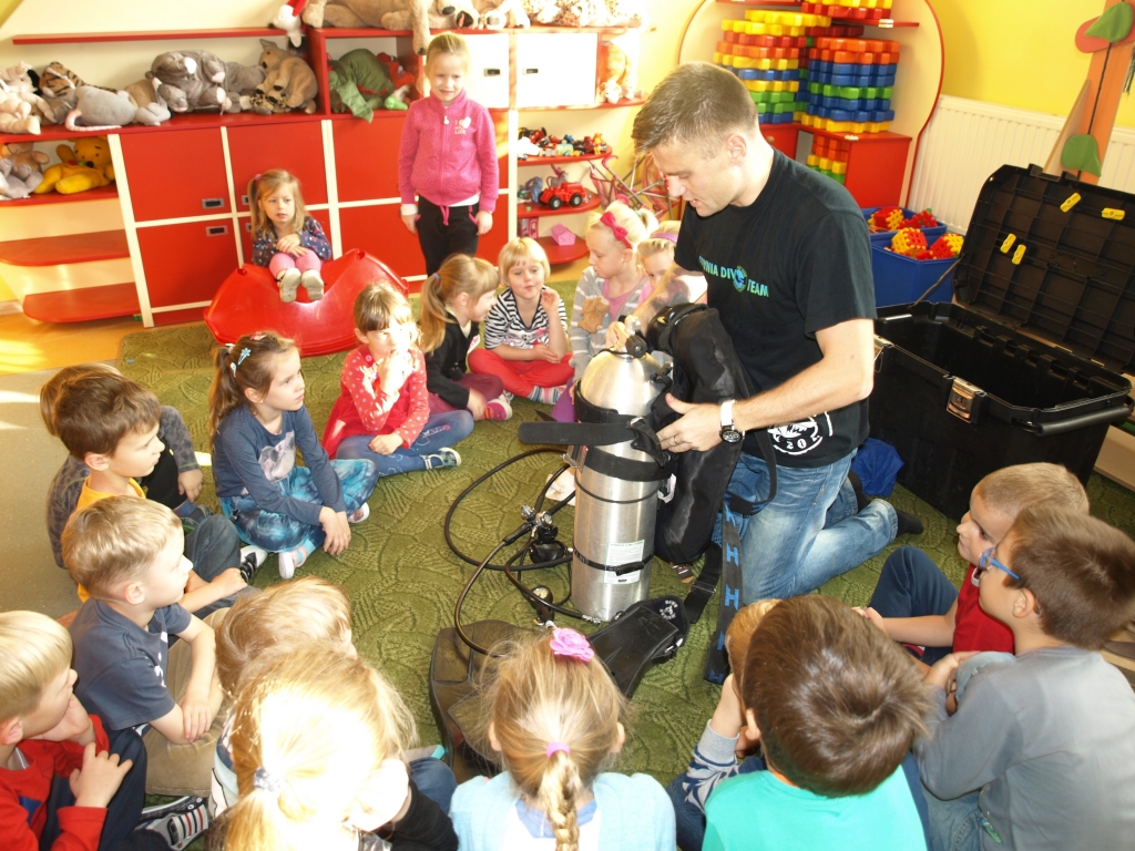 Serdecznie dziękujemy Panu Tomaszowi za przekazanie tak ciekawych opowieści o podwodnym, ciekawym świecie.  Mamy nadzieję, że w przyszłości niejeden przedszkolak spróbuje nurkować i pokocha przebywanie pod wodą tak jak nasz gość.