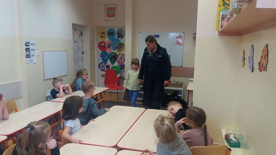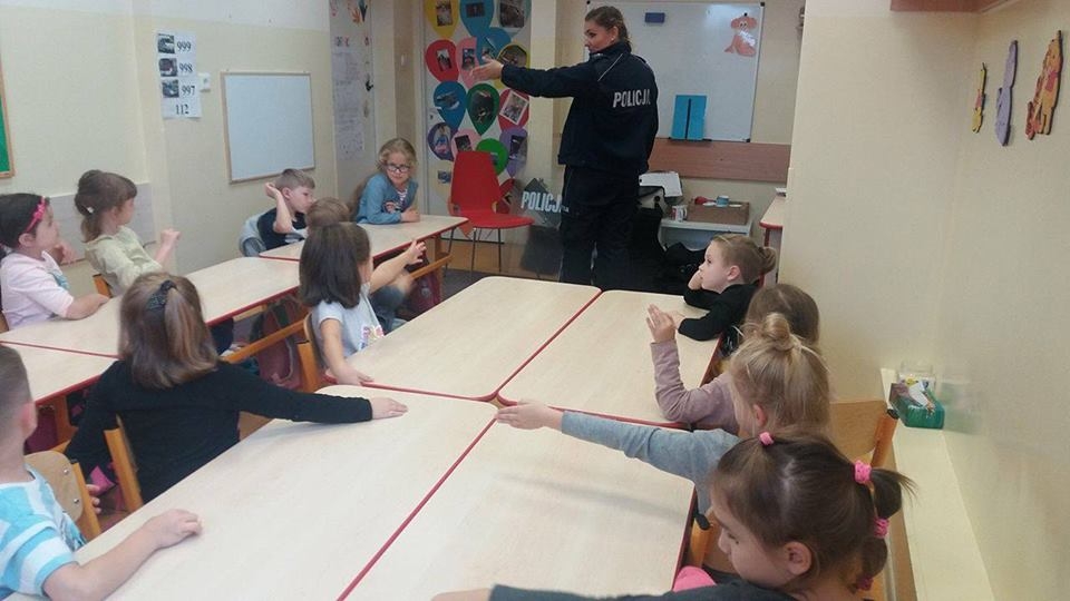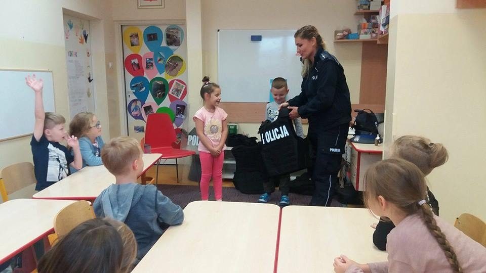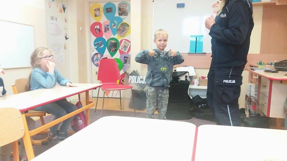 W piątek (22.09.2017) dzieci z oddziału przedszkolnego odwiedziła Pani policjantka, która mówiła m.in. o bezpieczeństwie na drodze oraz zapoznała nas ze swoją pracą 🙂
