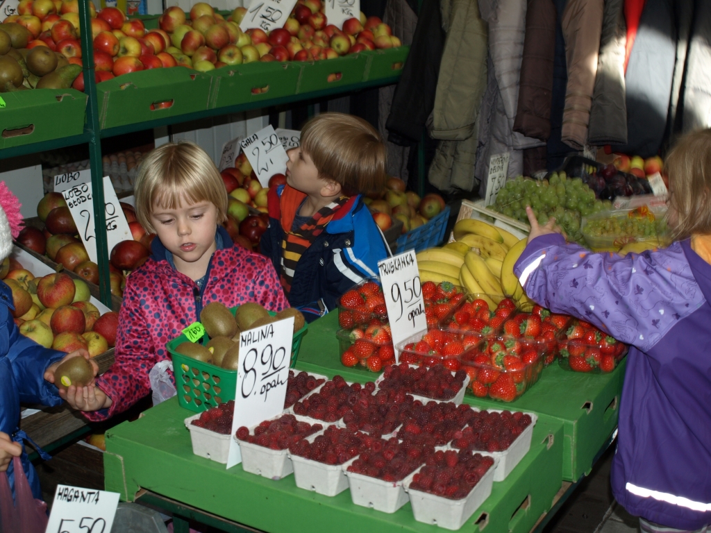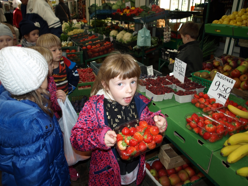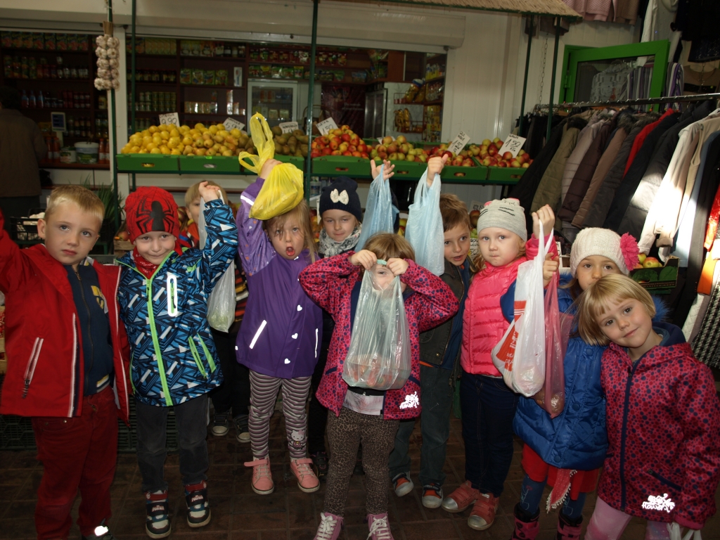 Jesień to najlepszy czas na przygotowanie zdrowej owocowej sałatki. Grupa 0B wybrała się na stragan, aby kupić potrzebne produkty. Wcześniej wraz z Panią przygotowaliśmy listę zakupów, torebki oraz pieniążki. Każda miał swój wkład w robienie zakupów.