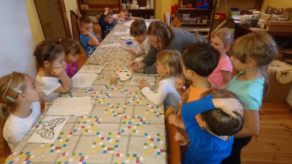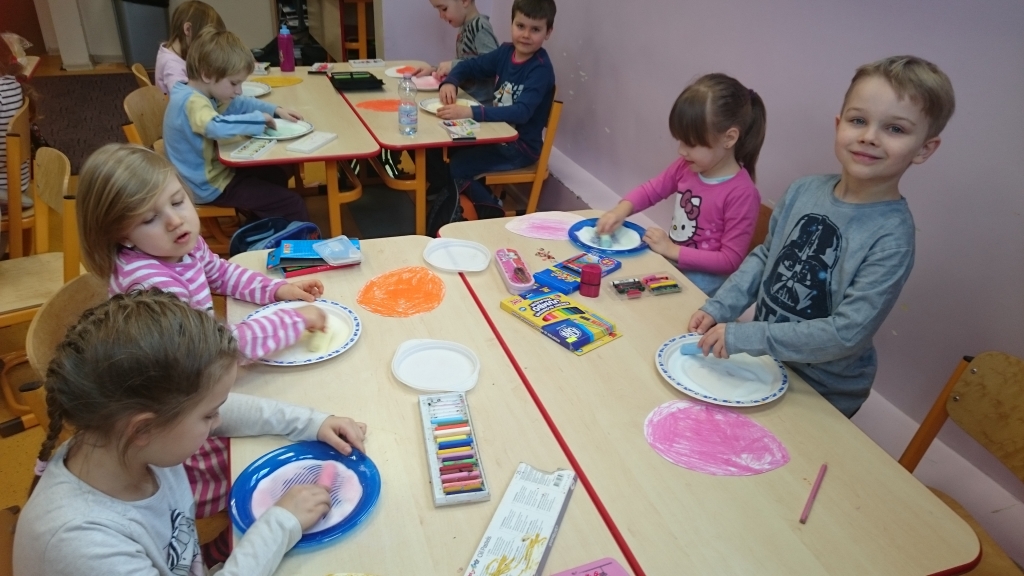 W październiku wybraliśmy się na wyjątkowe warsztaty malowania na szkle. Wszystkie przedszkolaki z ogromnym zapałem przystąpiły do pracy. Uważnie słuchały panią prowadzącą i starannie wykonywały swoje obrazy. Malowanie po szklanej powierzchni nie należało do najłatwiejszych, jednak nasze dzieci poradziły sobie znakomicie. Powstałe tego dnia wspaniałe prace, które po wyschnięciu dzieci zabrały do domów.