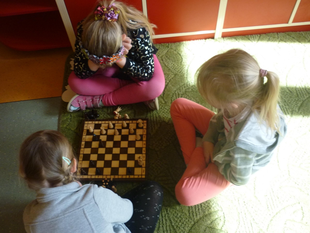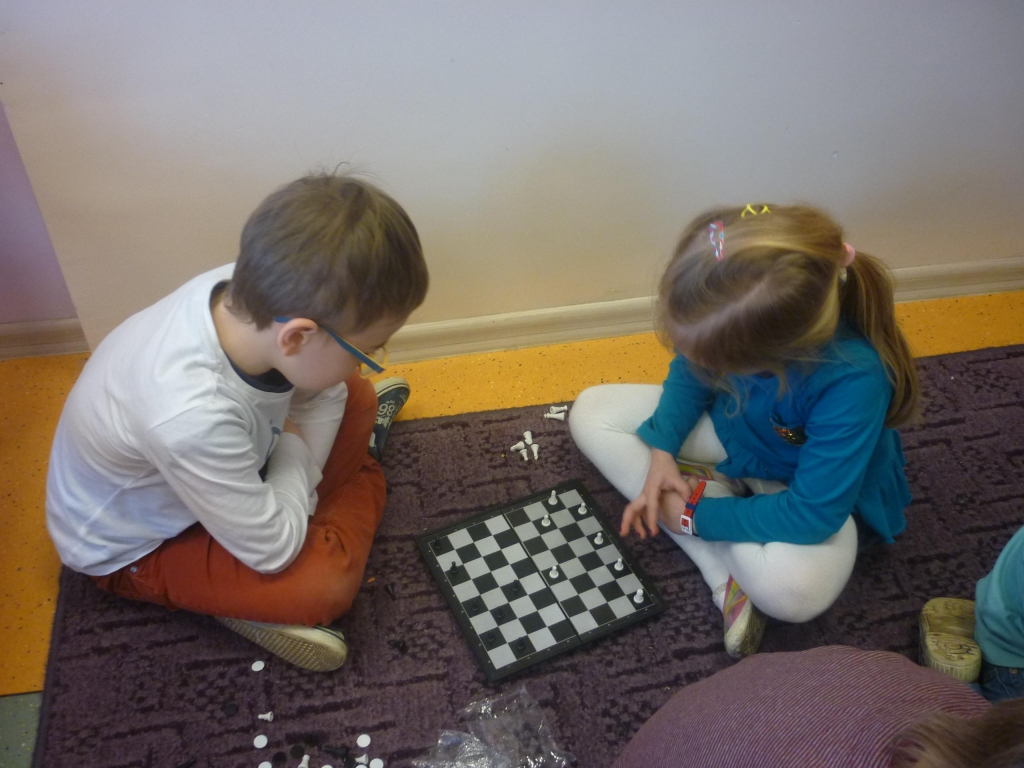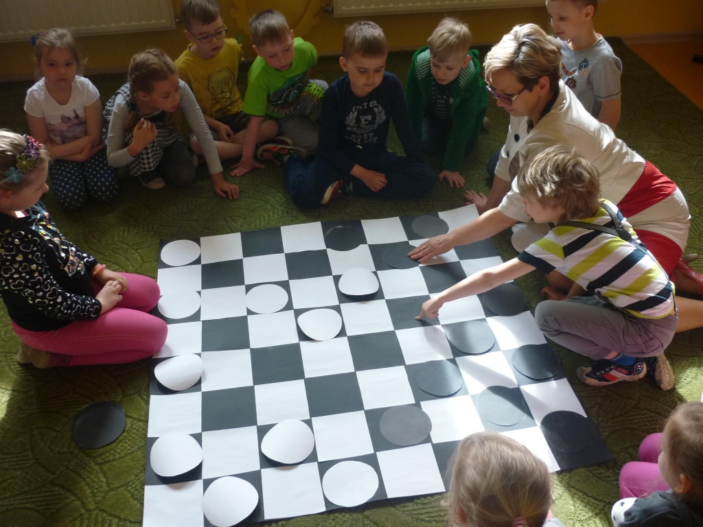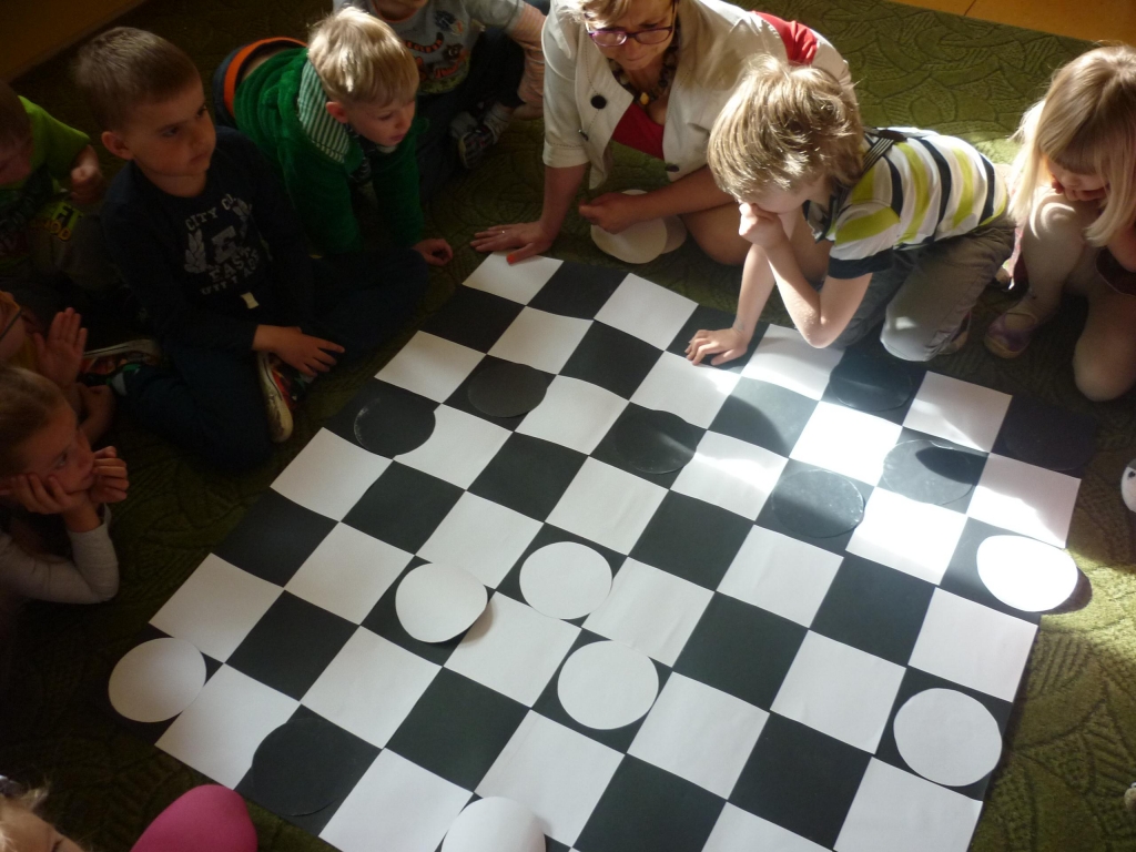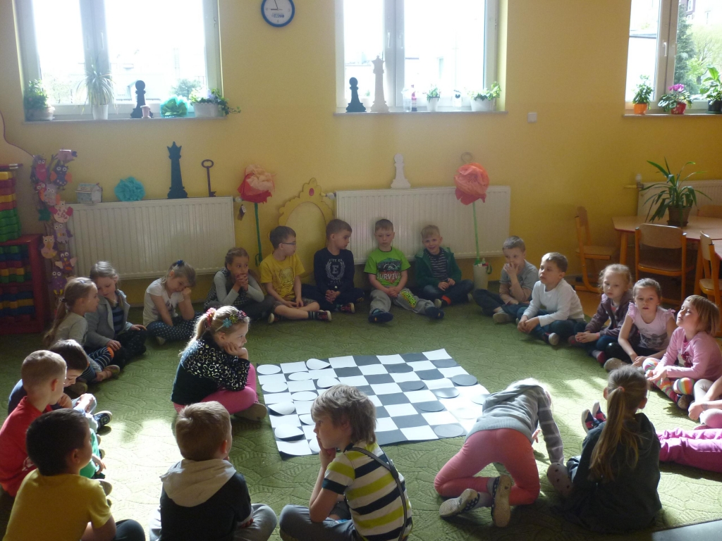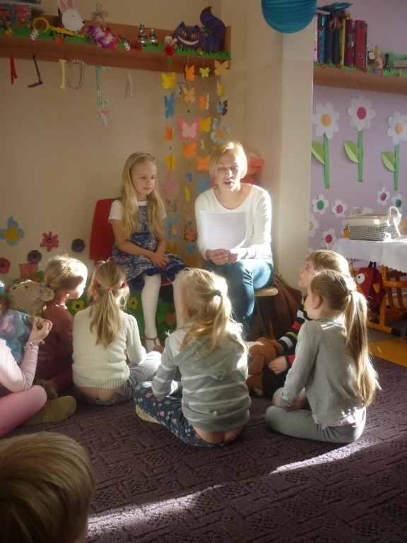 Przez cały miesiąc nasza salę odwiedzali różni goście – nauczyciele i rodzice, którzy czytali fragmenty powieści i odkrywali przed nami tą tajemniczą krainę. My słuchaliśmy opowiadania z wielkim zaciekawieniem, chociaż książka nie należała do najłatwiejszych. Dzięki niej dowiedzieliśmy się więcej na temat brytyjskiej kultury i zwyczajów także nauczyliśmy się nowych słów, zarówno w języku polskim jak i angielskim. Przy tym mogliśmy cały czas rozwijać naszą wyobraźnię. Każdego dnia byliśmy zaskakiwani nowym gościem. Nie mogliśmy powstrzymać radości, kiedy to do naszego przedszkola przychodził nasz rodzic i czytał jeden z fragmentów książki. Po każdym fragmencie tworzyliśmy piękne prace plastyczne, nawiązujące do tematyki książki. Nawet graliśmy w karty i….. urządziliśmy turniej warcabowy, dzięki któremu nauczyliśmy się zasad i taktyki, wykorzystywanej w tej wiekowej grze planszowej. Dla niektórych z nas było to pierwsze zetkniecie z taka grą. Niespodziewanie na koniec naszej czytelniczej akcji odwiedziła nas ….sama Alicja, która przyniosła specjalne odznaki zrobione na szydełku i wiele pysznych słodkości.