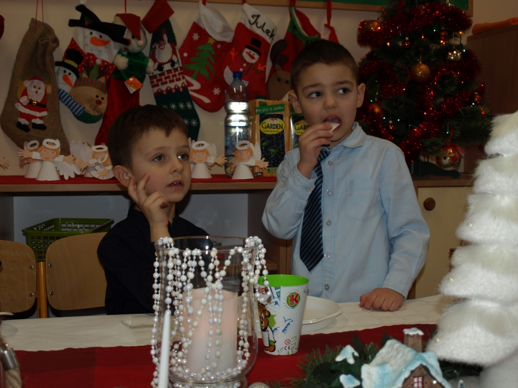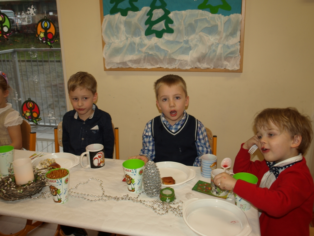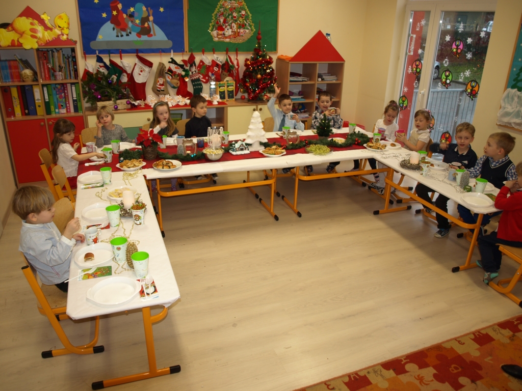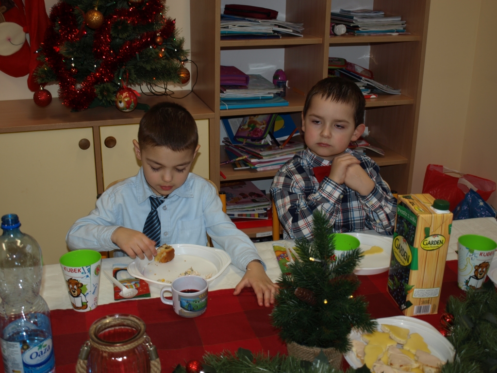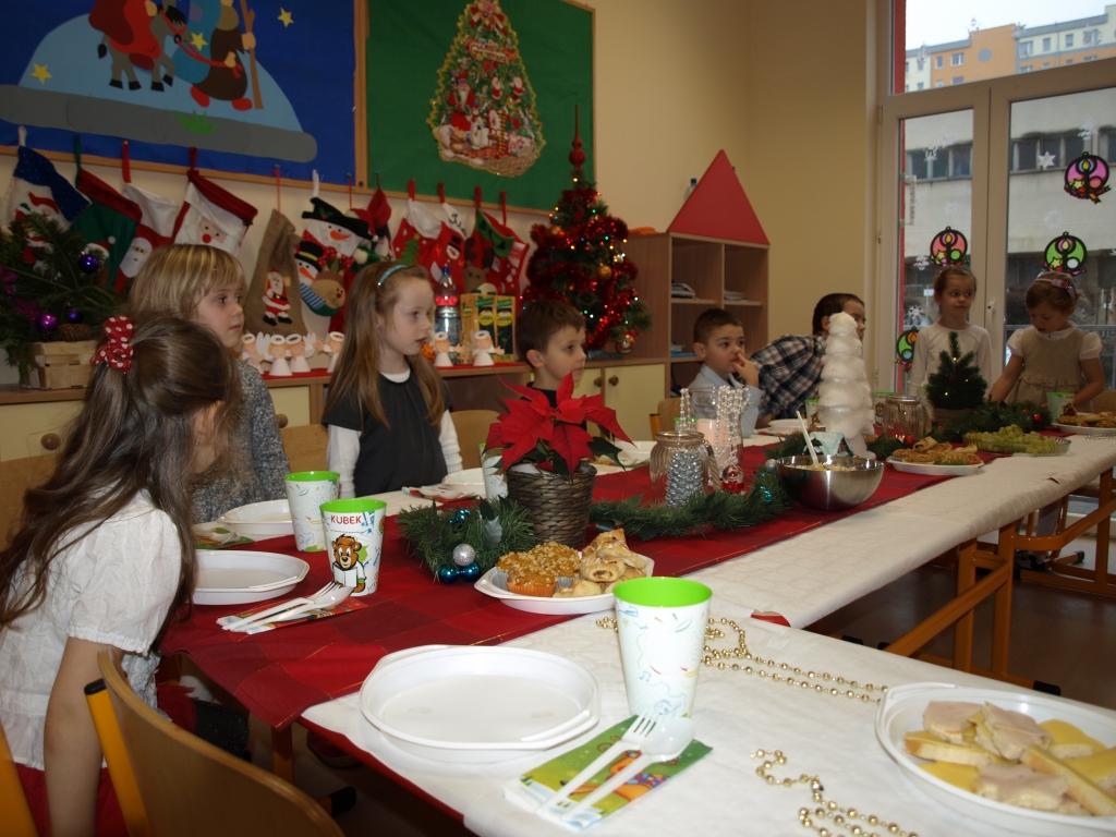 Dnia 19 grudnia 2014 roku odbyło się Uroczyste Spotkanie Wigilijne. Przy blasku świec i światełek usiedliśmy przy stole i wspólnie zaśpiewaliśmy znane wszystkim kolędy i piosenki o tematyce świątecznej po których odbył się poczęstunek przygotowany przez rodziców.